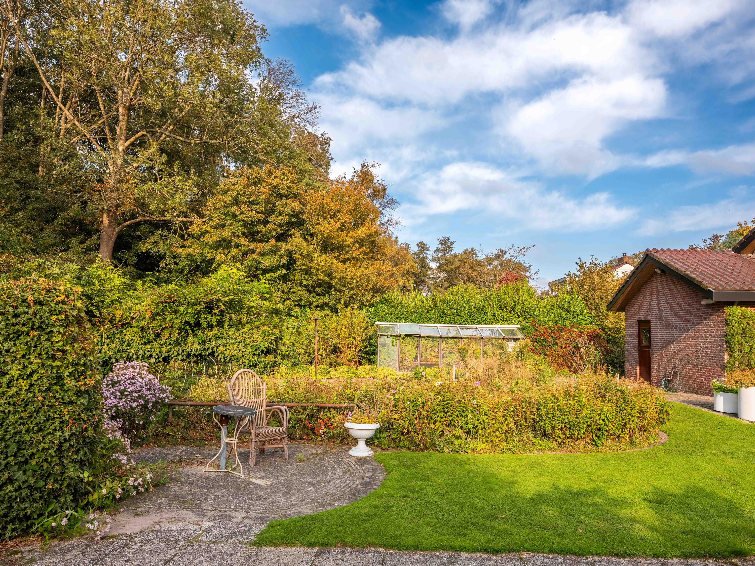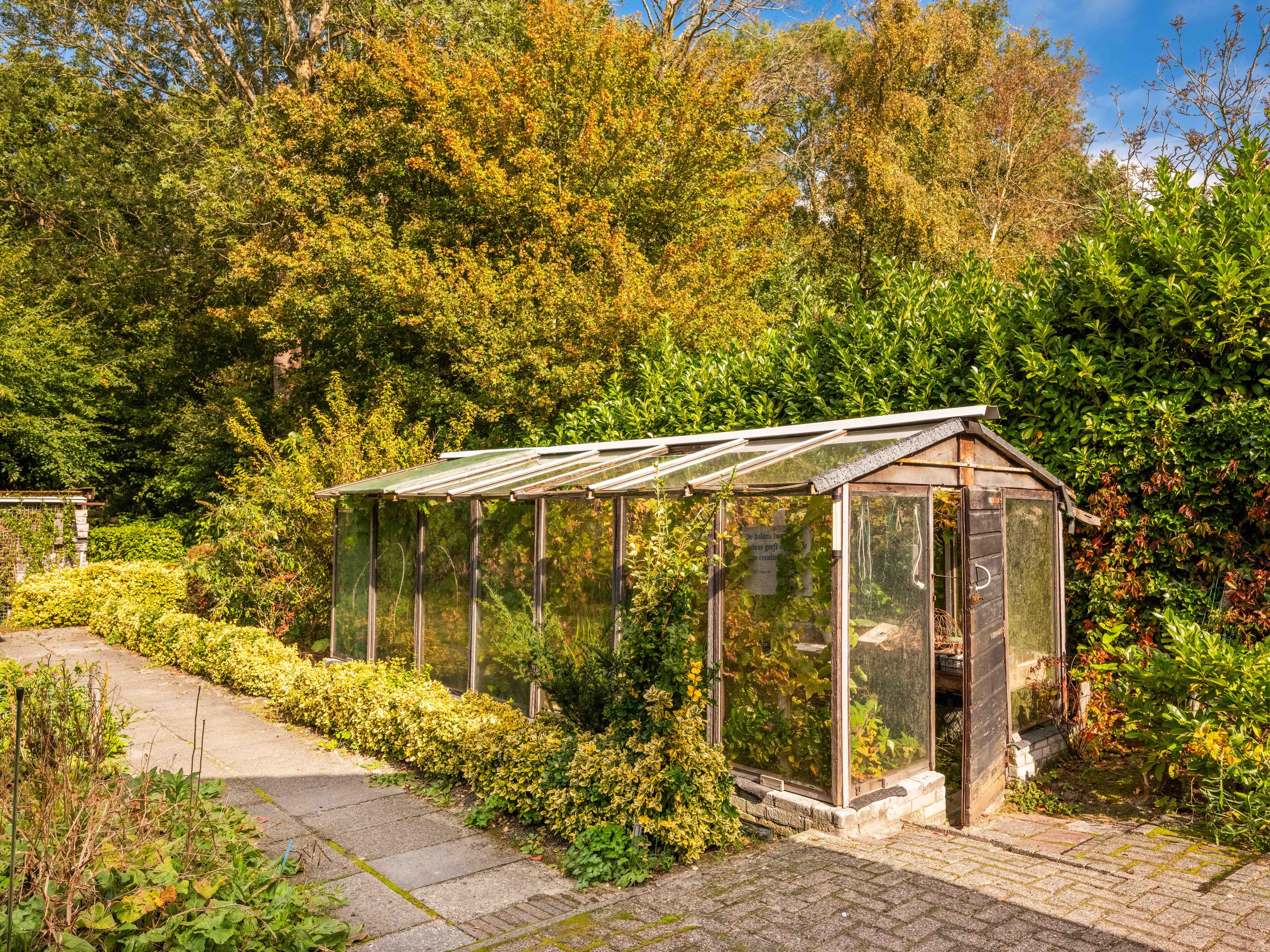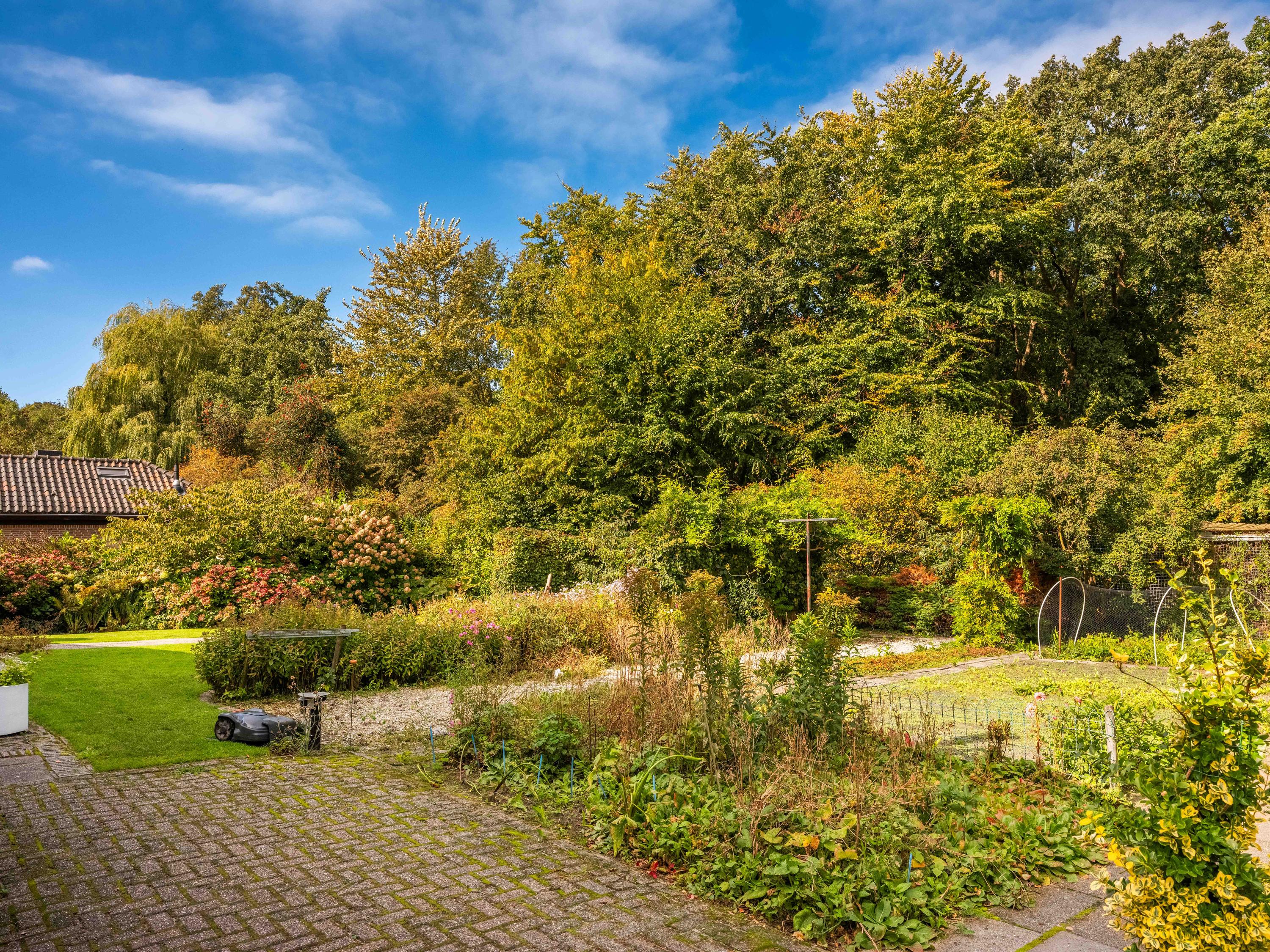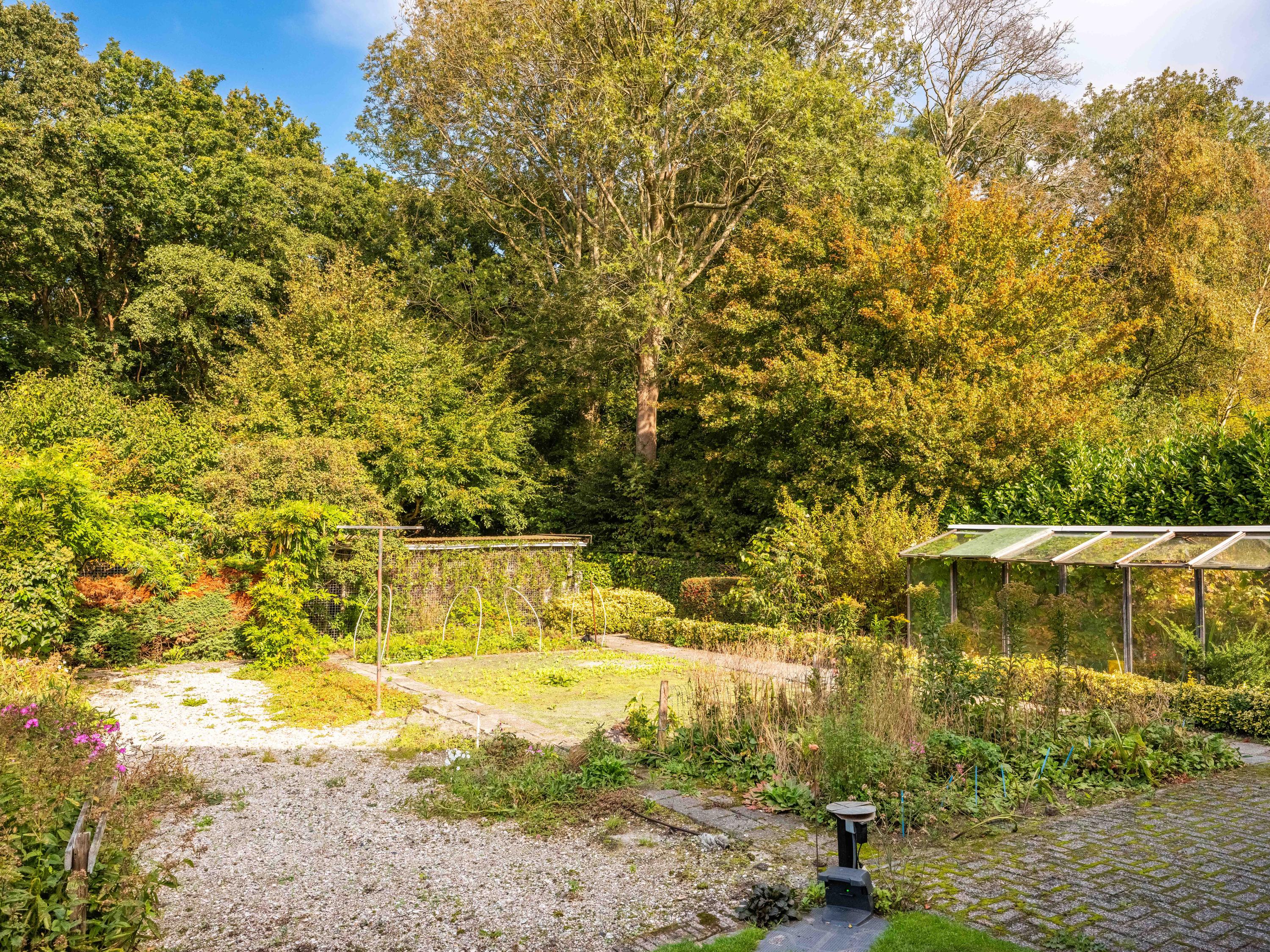 We noemen graag ook wat extra's. De grote aangebouwde garage is binnendoor bereikbaar en biedt ruim plaats aan fietsen, auto of andere zaken. De auto's kunnen ook eenvoudig op eigen terrein geparkeerd worden, ruimte genoeg. De tuin heeft diverse terrassen, en biedt volop zon en privacy. Daar is 43 jaar aan gewerkt om er een kleurrijk geheel van te maken. En er staat een kas bij! De tuin rondom biedt volop zon en privacy. Ten aanzien van duurzaamheid kunnen we meedelen dat er al sprake is van 8 zonnepanelen, muurisolatie en grotendeels dubbel glas (energielabel C). De aanwezige wijnkelder is ook nog een charmant extraatje.