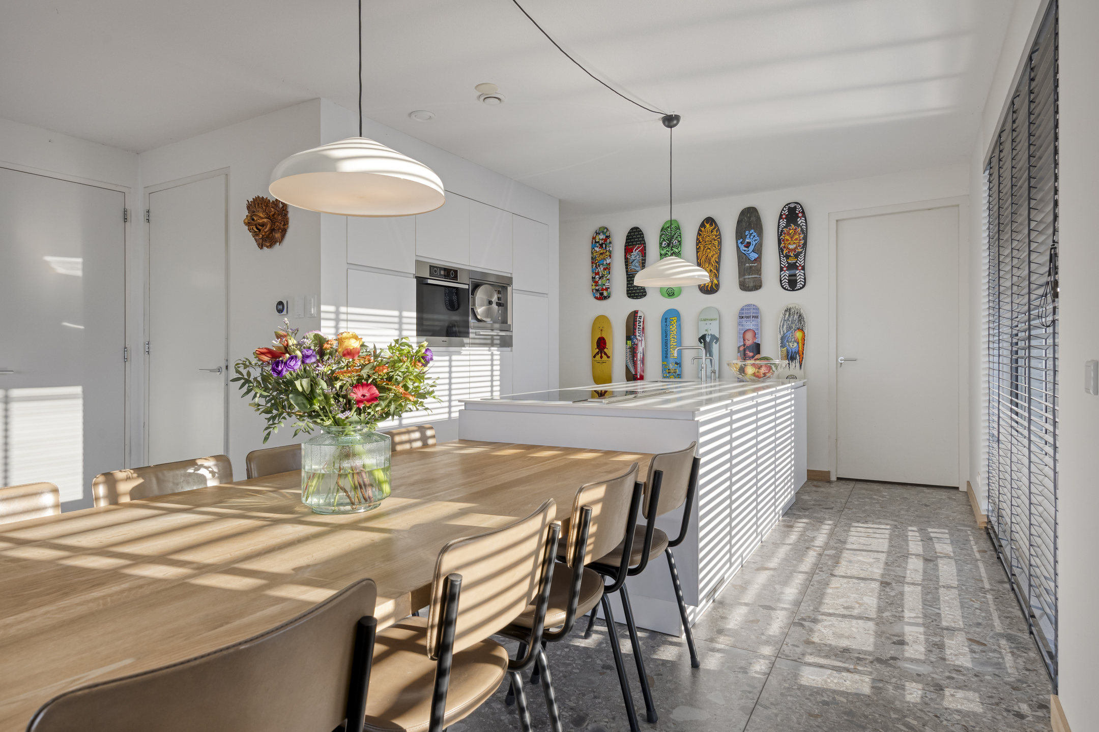 De open woonkamer met keuken vormt het kloppende hart van de woning, een uitnodigende plek om te koken, tafelen en samenzijn met familie en vrienden. De keuken is ruim en goed uitgerust, perfect voor de kookliefhebber.