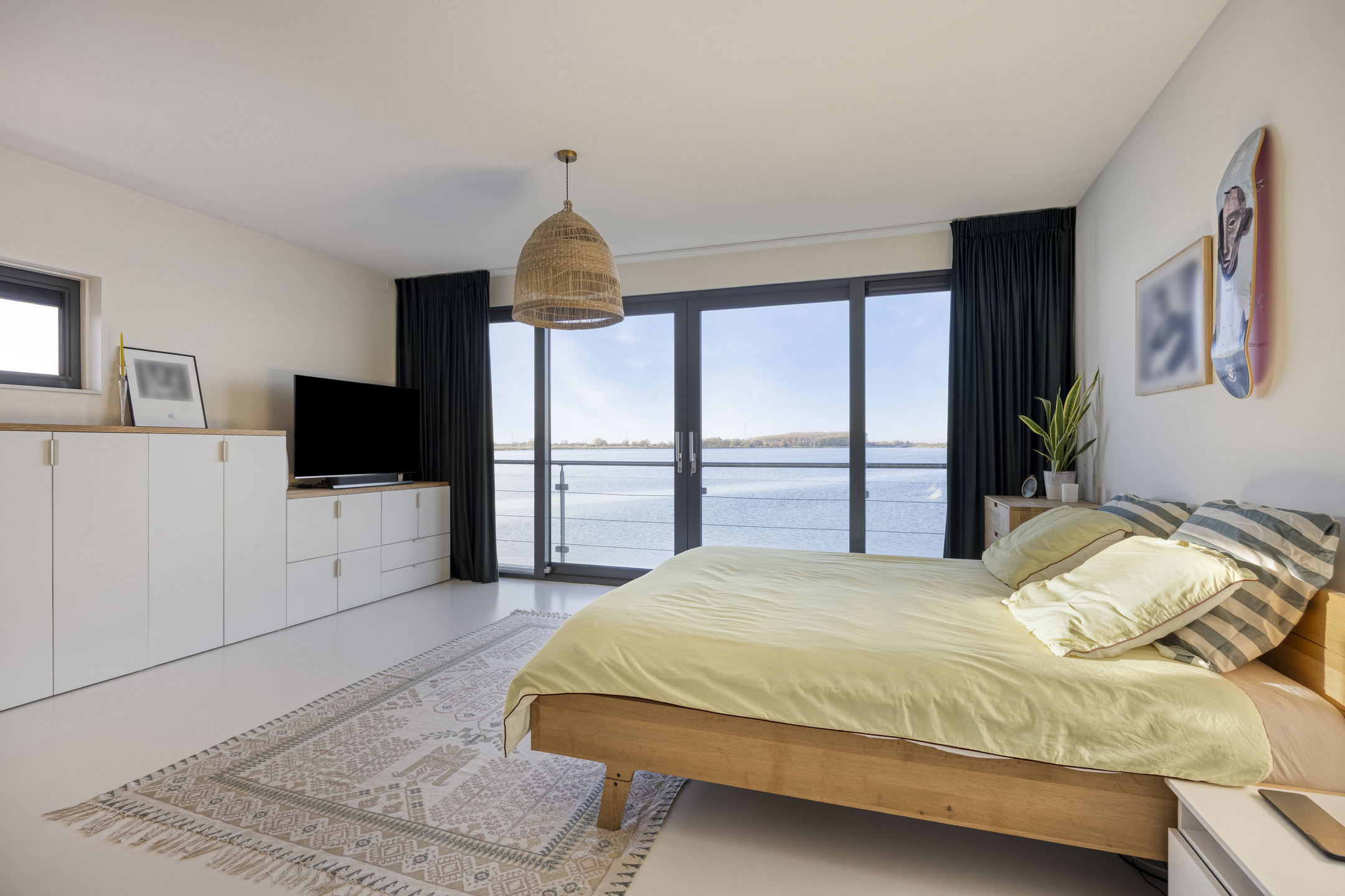 Na binnenkomst in de ruime entree loopt u door naar de woonkamer, waar direct duidelijk wordt wat deze woning zo bijzonder maakt: het weidse uitzicht over het waterlandschap. De grote raampartijen rondom zorgen ervoor dat u overal in huis geniet van het licht en het panorama van het meer, of u nu in de woonkamer, keuken of slaapkamer bent.