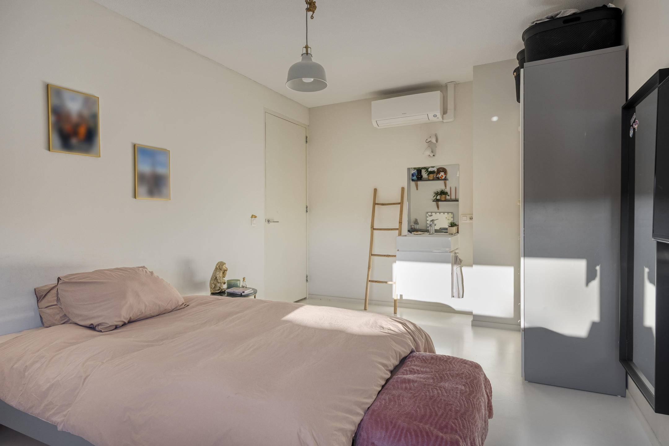 slaapkamer links midden voor (ca. 12 m²) met airco-installatie (2025) en wastafel, wandafwerking stucwerk, gietvloer, plafond afgewerkt met stucwerk;