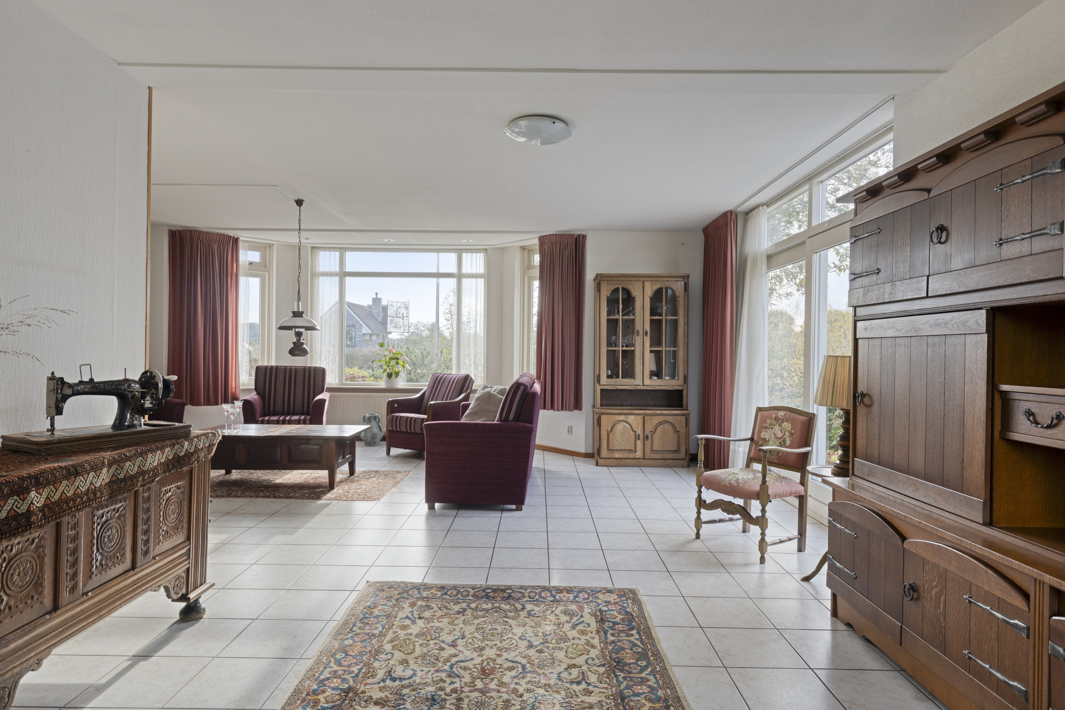 De royale woonkamer aan de voorzijde is heerlijk licht dankzij de grote raampartijen en is voorzien van een plavuizen vloer met vloerverwarming. Via de schuifpui loop je zo de tuin in. De eetkamer sluit aan op de keuken, die is uitgevoerd in L-opstelling en voorzien van diverse inbouwapparatuur zoals een vaatwasser, koel-vriescombinatie, keramische kookplaat, afzuigkap en spoelbak met mengkraan.