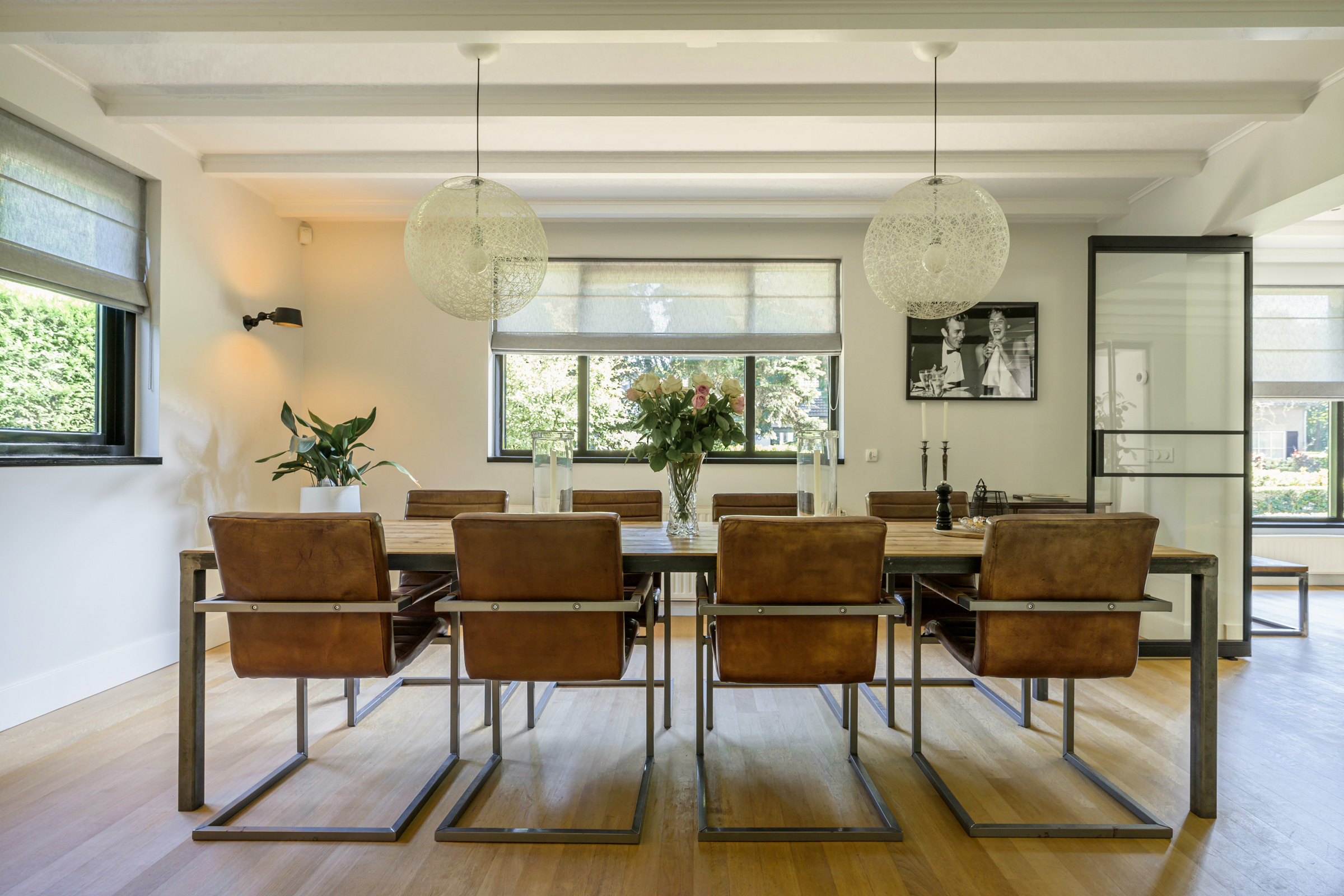 Vanuit de zitkamer heeft u via glazen deuren eveneens toegang tot de eetkamer. Vanuit de eetkamer heeft u toegang tot de keuken.