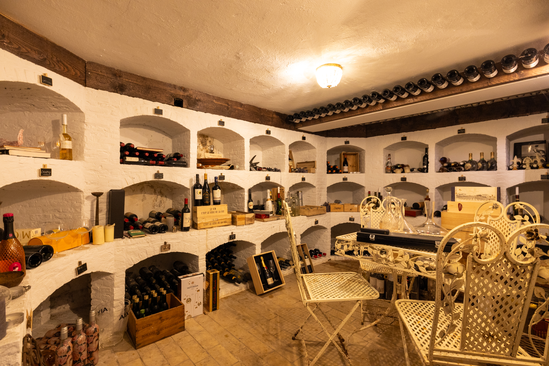Kelder op stahoogte met voorraadruimte voor levensmiddelen en en mooie wijnkamer met veel ruimte voor wijnopslag. Een ruimte om de liefde voor wijn te vieren.