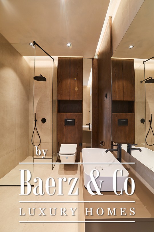 Het gebouw telt tien verdiepingen en beschikt over panoramische uitzichten op bergen en zee, evenals zorgvuldig geselecteerde voorzieningen zoals een wellness-spa, zwembad, fitnessruimte en 24/7 conciërgeservice. Voor bewoners zijn er twee liften en een autolift, wat op elk moment comfort en discretie waarborgt. De aanwezigheid van een kinderspeelplaats, sportfaciliteiten en huisdier-voorzieningen zorgt stilletjes voor een compleet dagelijks leven. Het appartement wordt volledig gemeubileerd opgeleverd, met uitzondering van de eettafel en televisie, en straalt kwaliteit in afwerking en materiaalkeuze uit.