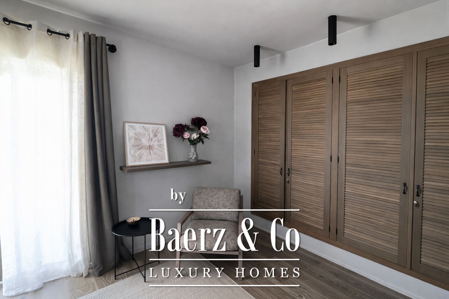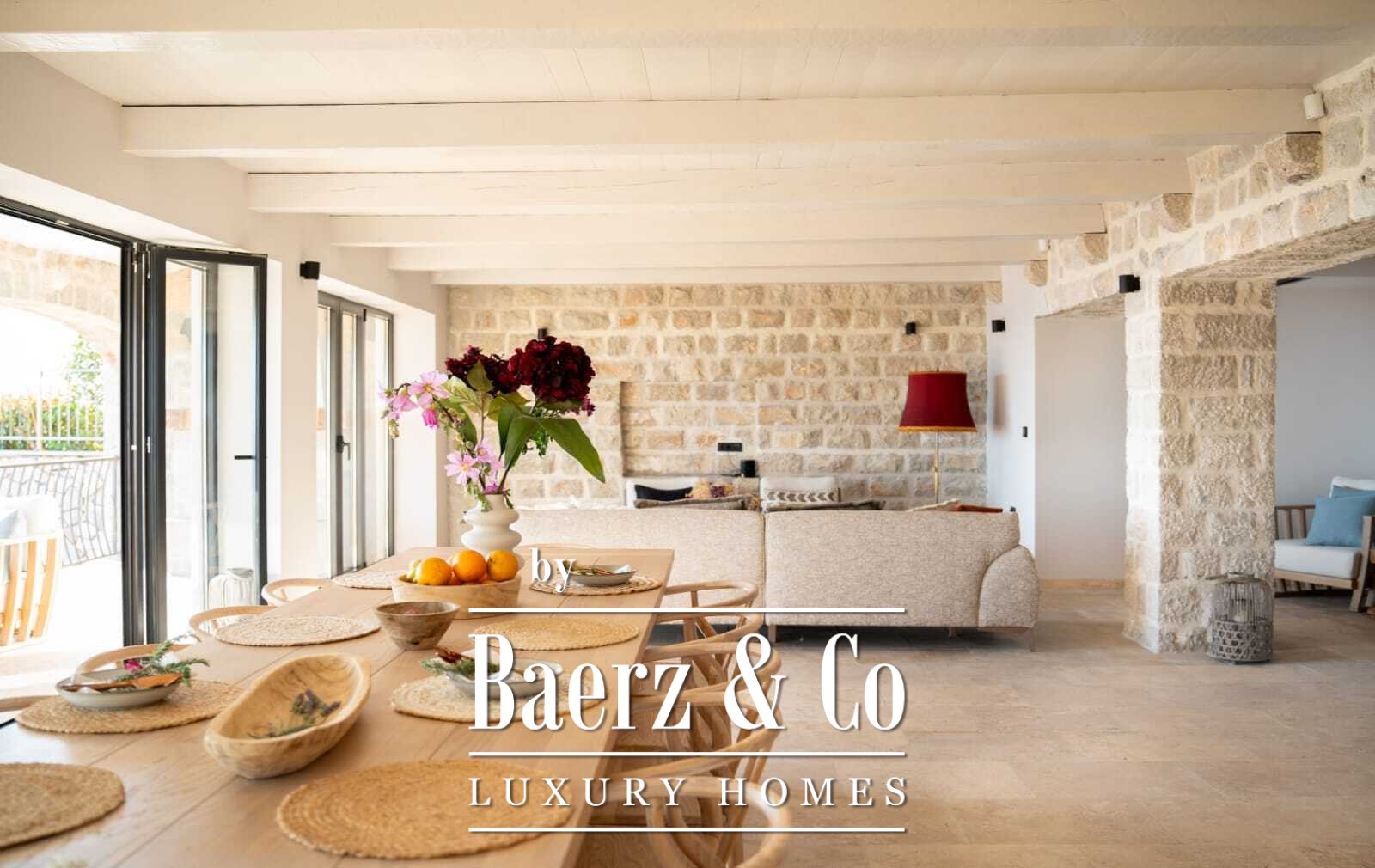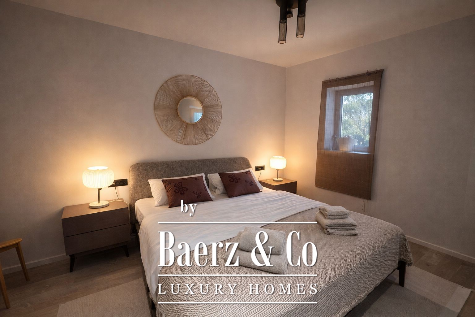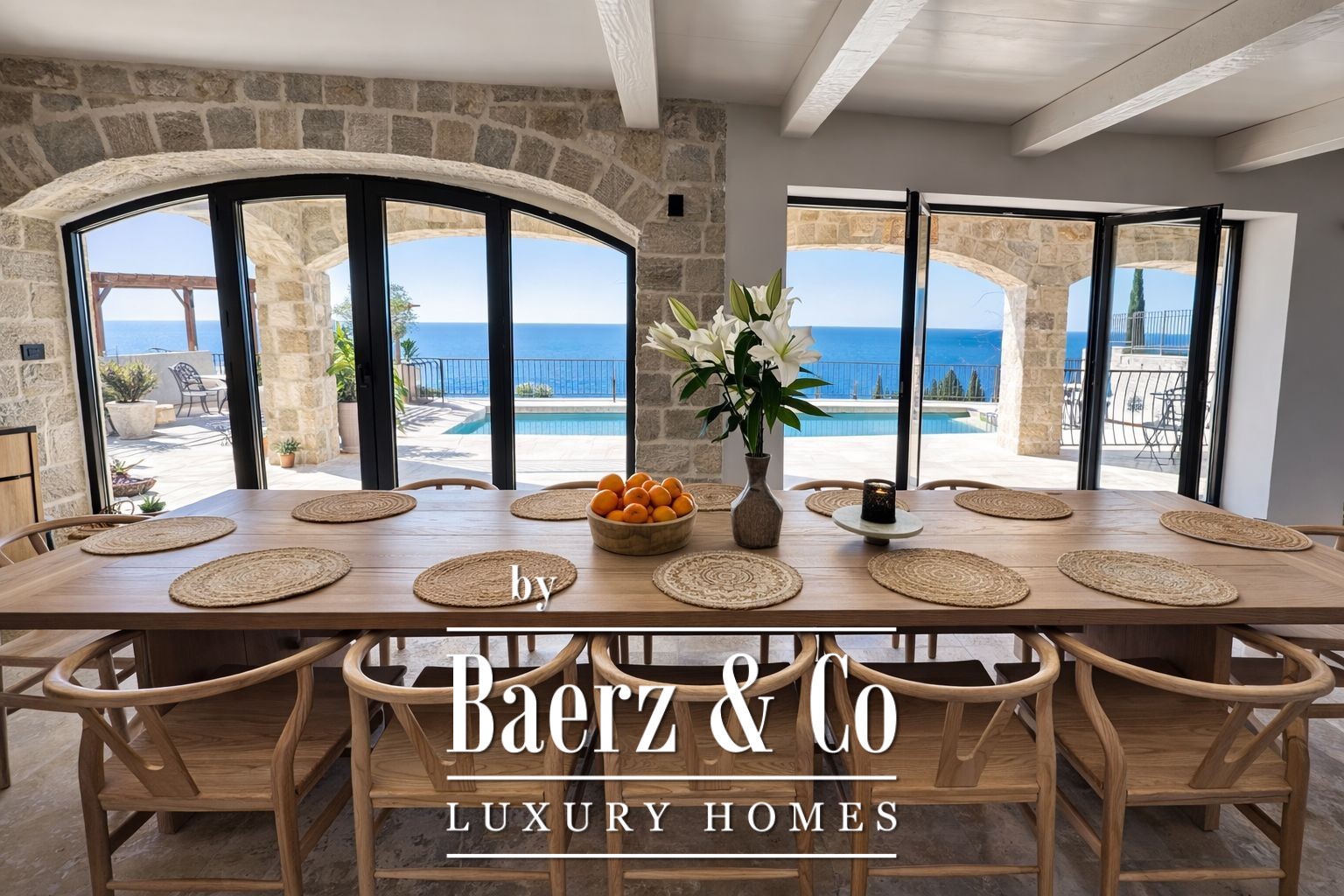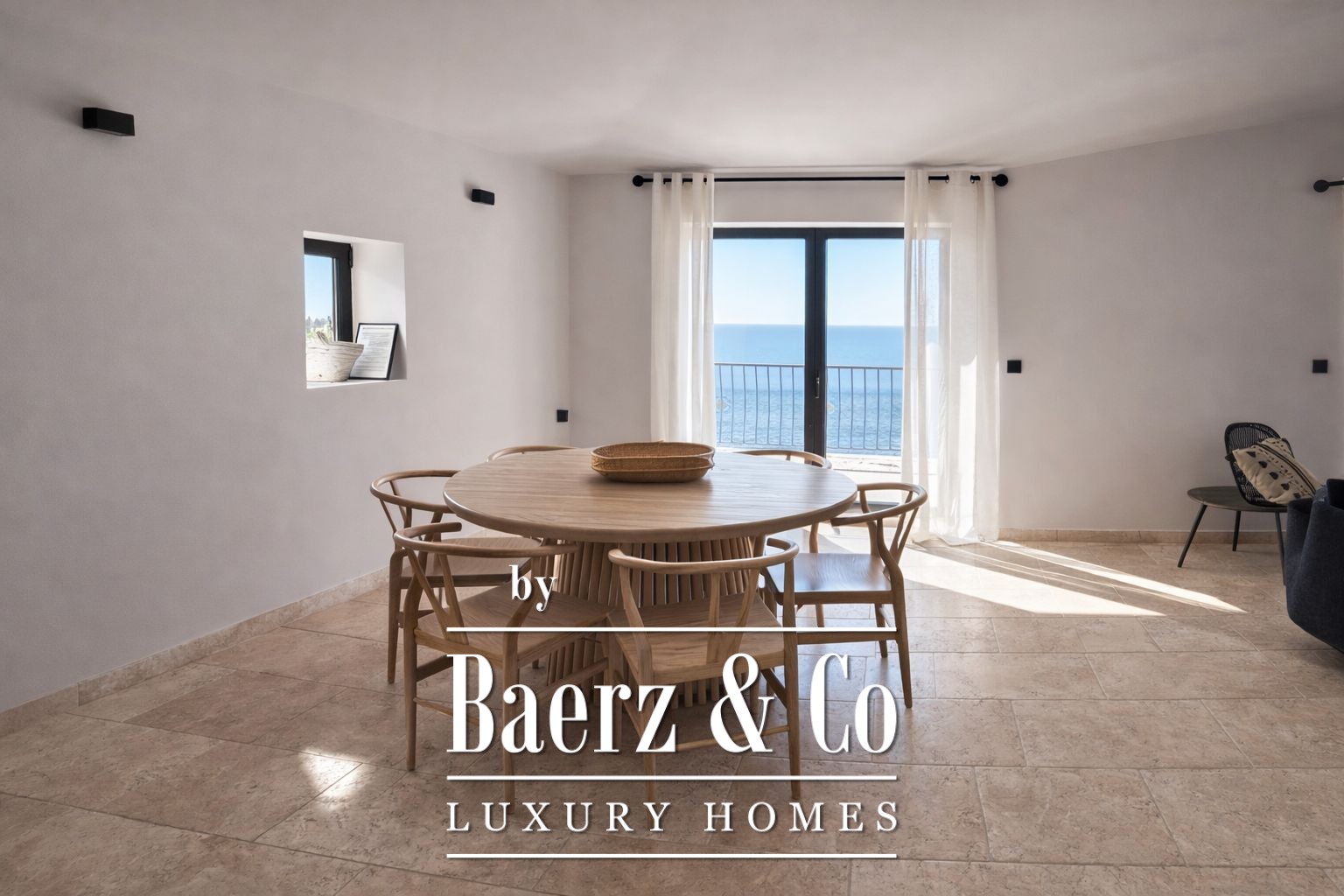Verspreid over drie niveaus komen comfort, functionaliteit en licht samen. Op de begane grond verbindt een open keuken en leefruimte zich direct met het royale zwembad van 12 x 4 m en het terras. De eerste verdieping beschikt over drie slaapkamers, elk met een eigen badkamer en panoramisch zeezicht, terwijl de bovenste verdieping een extra leefruimte, twee extra slaapkamers, twee badkamers en een groot terras met weids uitzicht op zee en bergen omvat.
