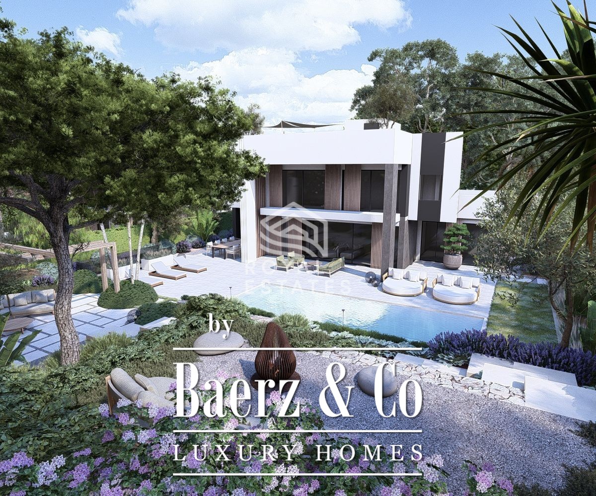 Villa te koop in Cala Martina combineert architectonische allure met ingetogen comfort op een steenworp afstand van de Spaanse kust. Deze nieuwgebouwde villa biedt vrij uitzicht op zee en een moeiteloze overgang tussen binnen- en buitenruimtes, met 289 m² woonoppervlak op een perceel van 960 m². Verspreid over twee verdiepingen zorgen vijf slaapkamers en zes badkamers voor privacy en hedendaags comfort; de open hoofdverdieping verbindt woonruimte, eetgedeelte en een Poggenpohl-keuken uitgerust met Miele-apparatuur.