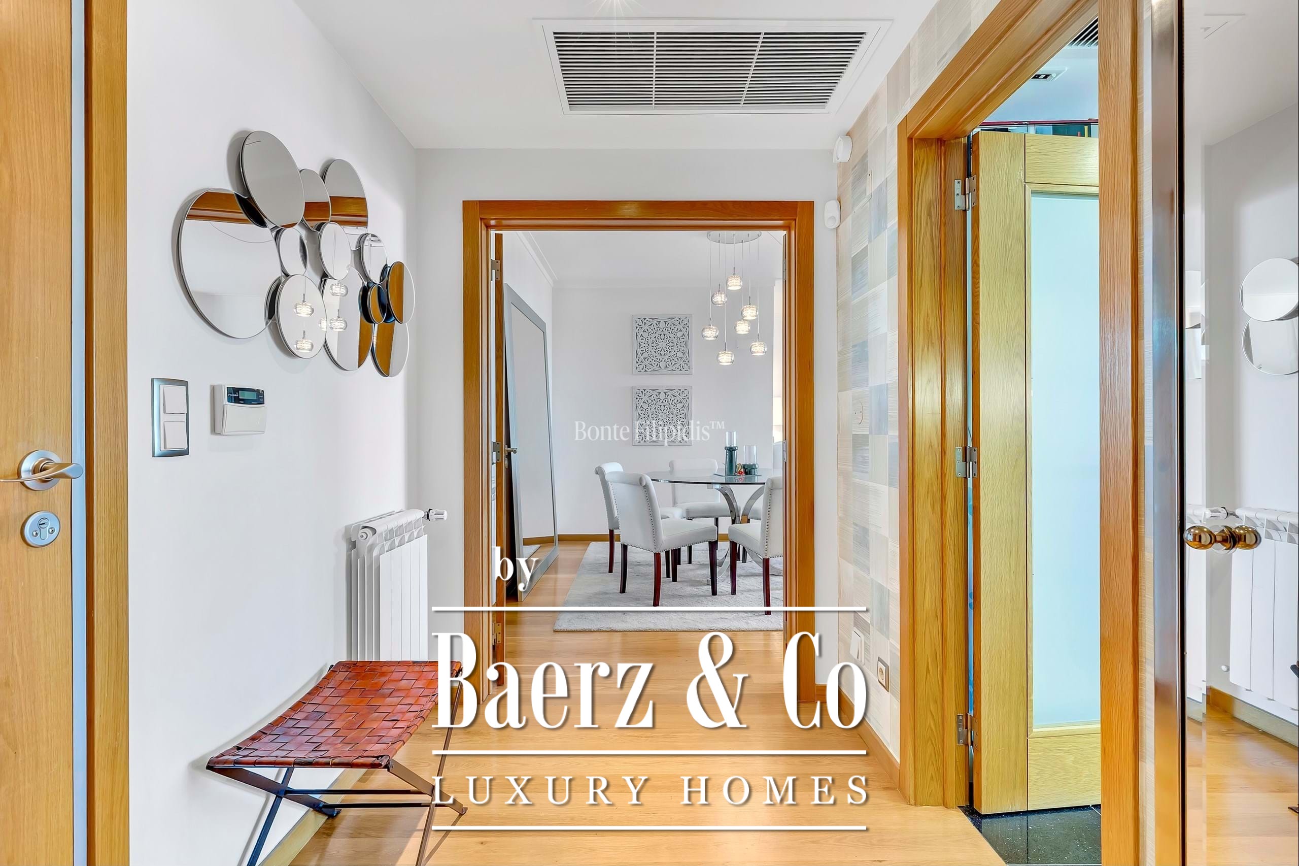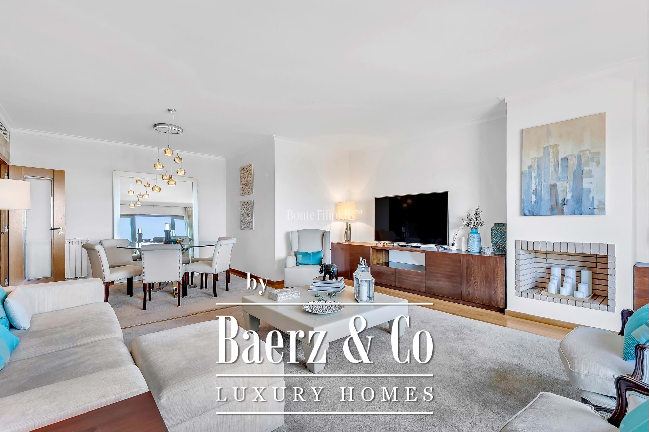 Appartement Cascais e Estoril bevindt zich op een rustige locatie binnen een afgesloten privécomplex, met vrij uitzicht op de oceaan en conciërgeservice in een van de meest gewilde kustgebieden van Portugal. Dit appartement, met twee slaapkamers en twee badkamers, beschikt over een privatief bruto-oppervlak van 113,50 m² en heeft een indeling die privacy en openheid harmonieus combineert, waardoor de zee in elk vertrek wordt betrokken. De woonkamer is gescheiden in een zit- en eetgedeelte, voorzien van een haard en geïntegreerde wijnopslag, terwijl de keuken—uitgerust met Miele-apparatuur, gas- en elektrische kookplaten—subtiel doorloopt naar een wasruimte.