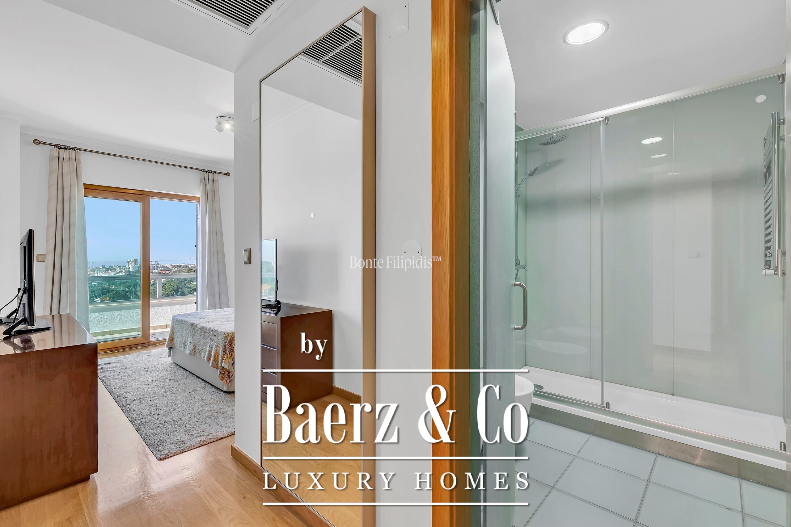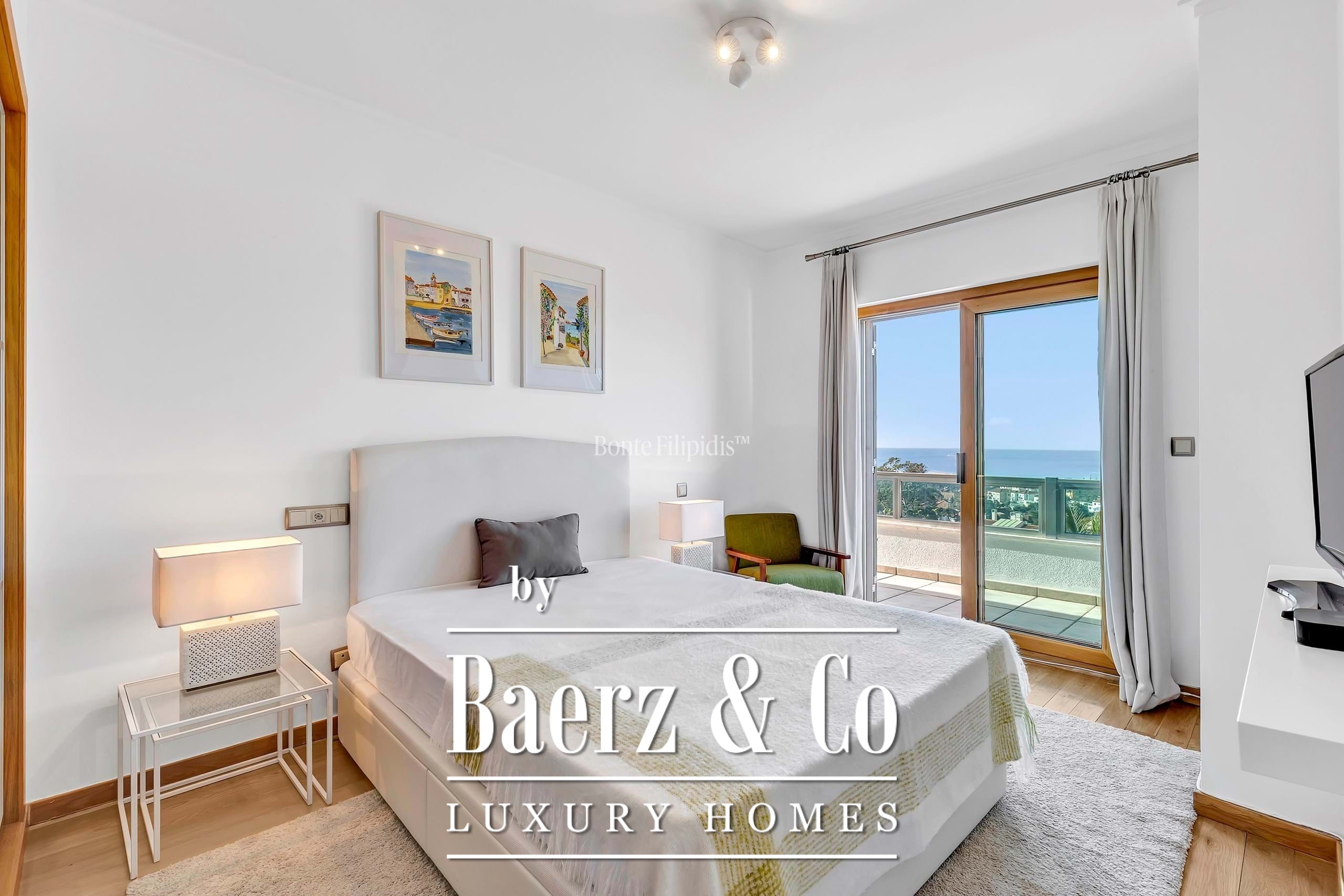 Een terras van 24,18 m² loopt over de volledige voorgevel en is bereikbaar vanuit alle hoofdvertrekken, waarmee het gevoel van binnen- en buitenleven en het onbelemmerde uitzicht op de Atlantische Oceaan wordt versterkt. De hoofdsuite en de tweede slaapkamer bieden een gevoel van afzondering, aangevuld met badkamers voorzien van verwarmde handdoekrekken.