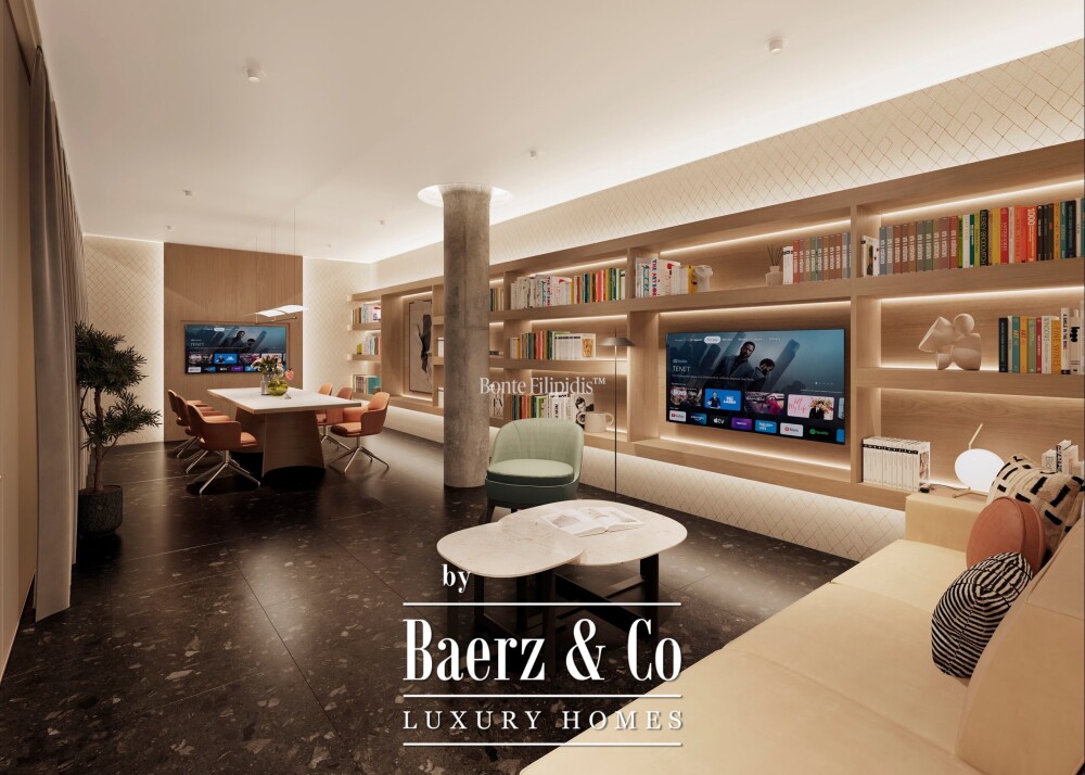 De indeling scheidt sociale van privéruimtes; de royale woon- en eetkamer zijn rijk aan daglicht en lopen direct uit op het terras. De volledig uitgeruste keuken is voorzien van geïntegreerde apparatuur, marmeren werkbladen en maatwerk kasten, wat functionaliteit en ingetogen elegantie garandeert. Twee slaapkamers met eigen badkamer zijn zodanig gepositioneerd dat ze optimale privacy bieden. Daarnaast is er een gastentoilet, eveneens afgewerkt met marmer en moderne details.