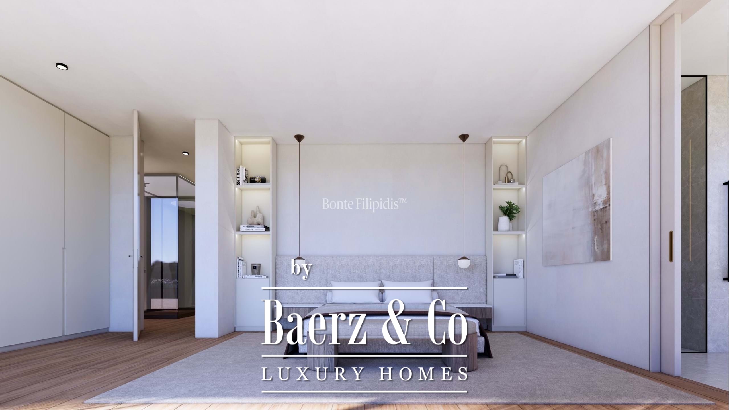 Op de bovenetage beschikken de vier suites elk over een terras of balkon, terwijl de mastersuite een inloopkast, royale badkamer en eigen terras met rustgevend uitzicht op het zwembad en de tuin biedt. Op het souterrain bevinden zich nog een suite, een bioscoopkamer, fitnessruimte, sauna, wasruimte en garage.