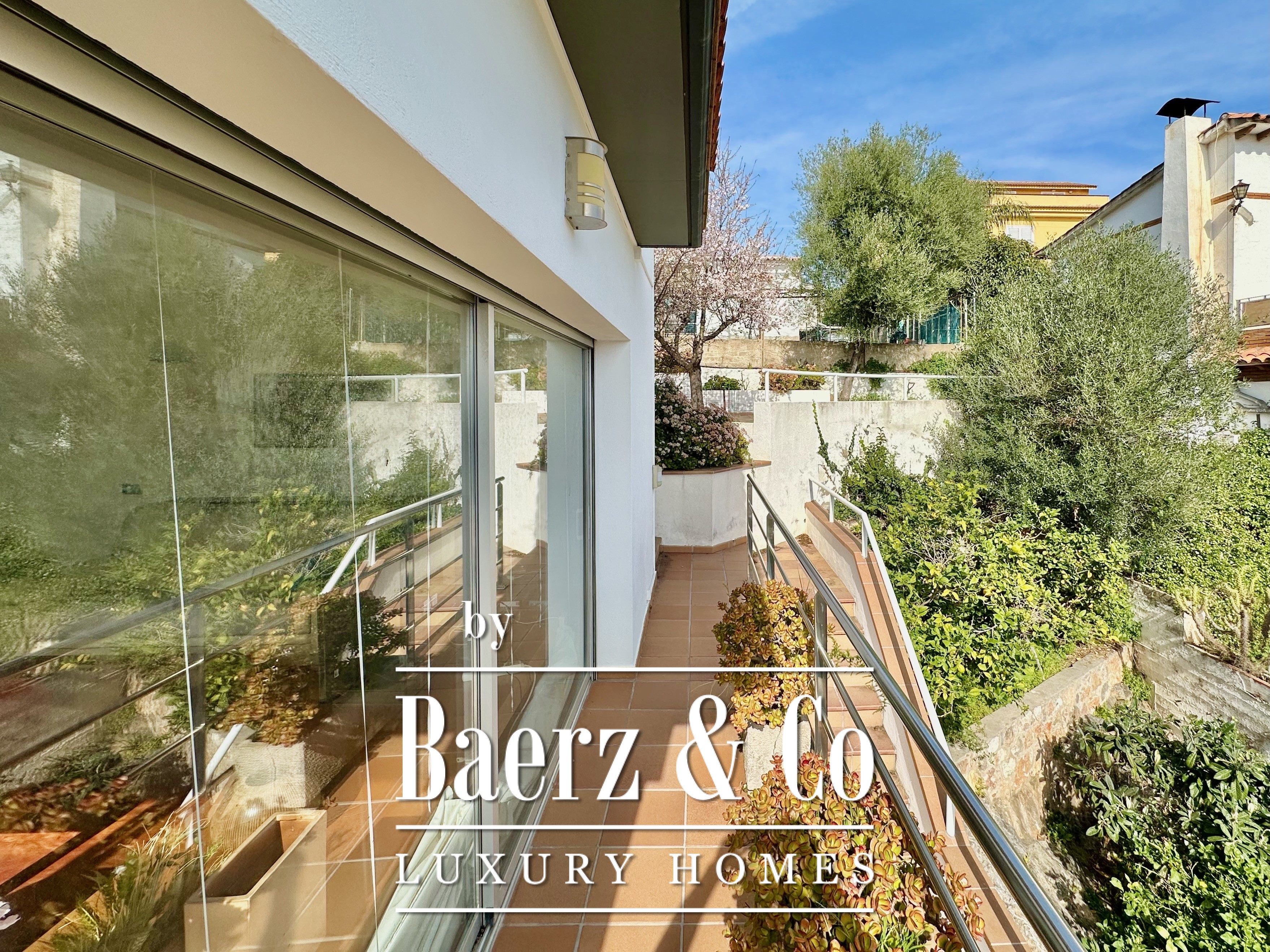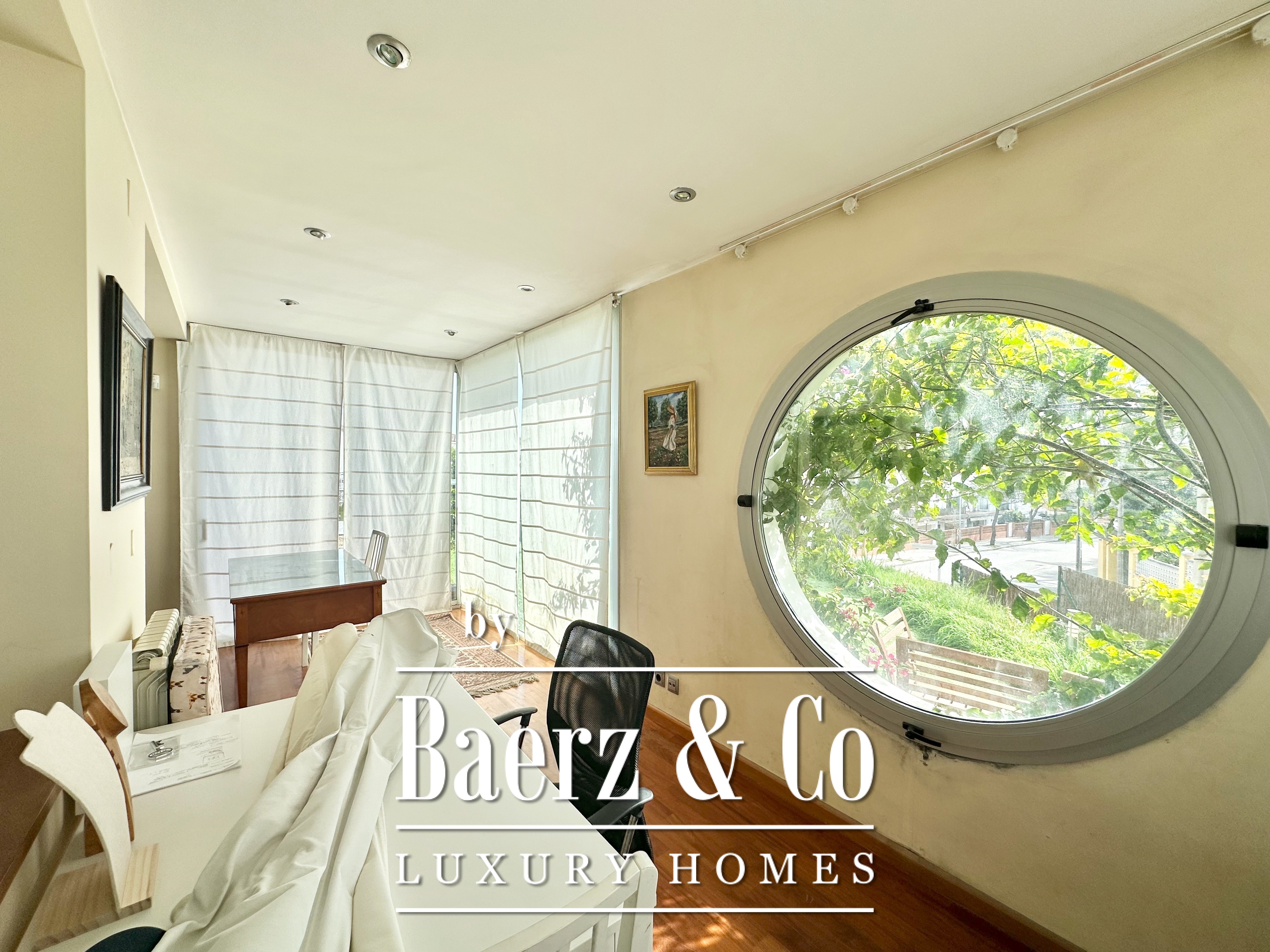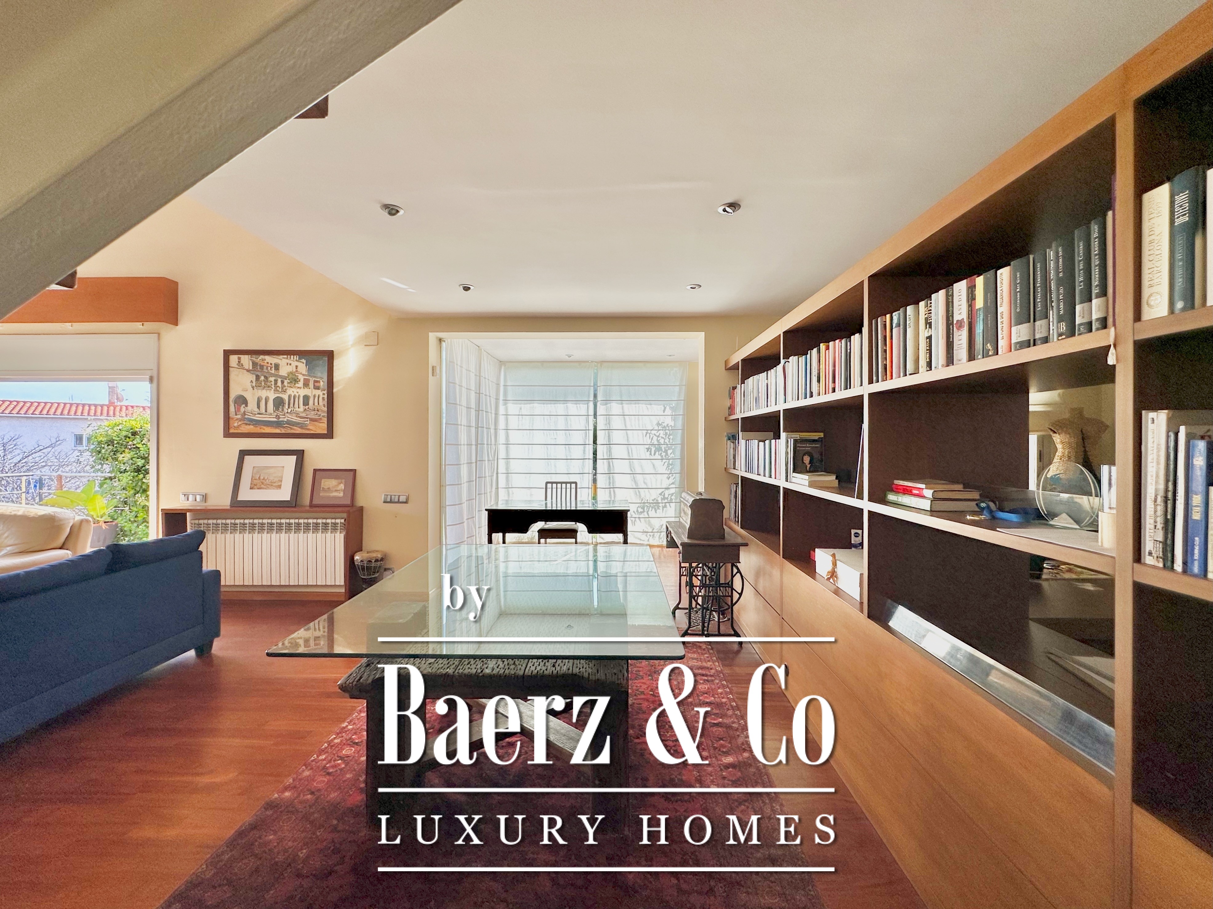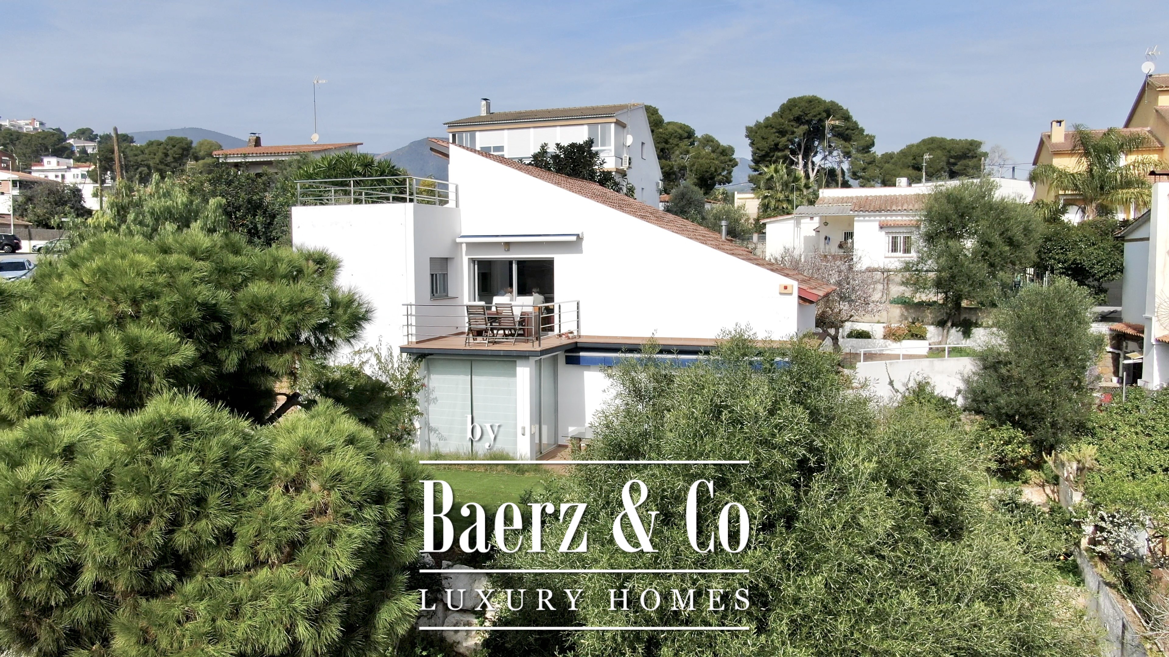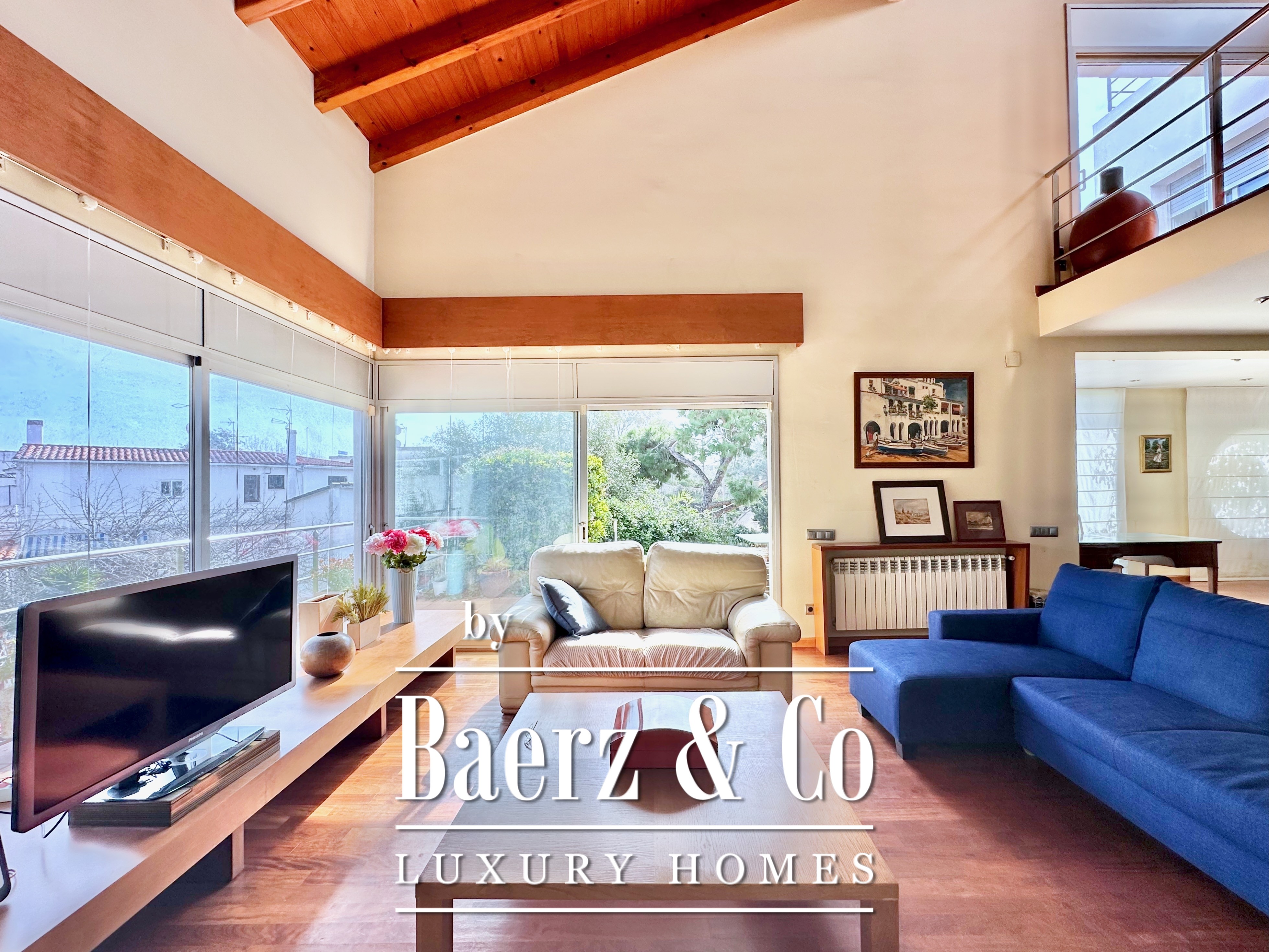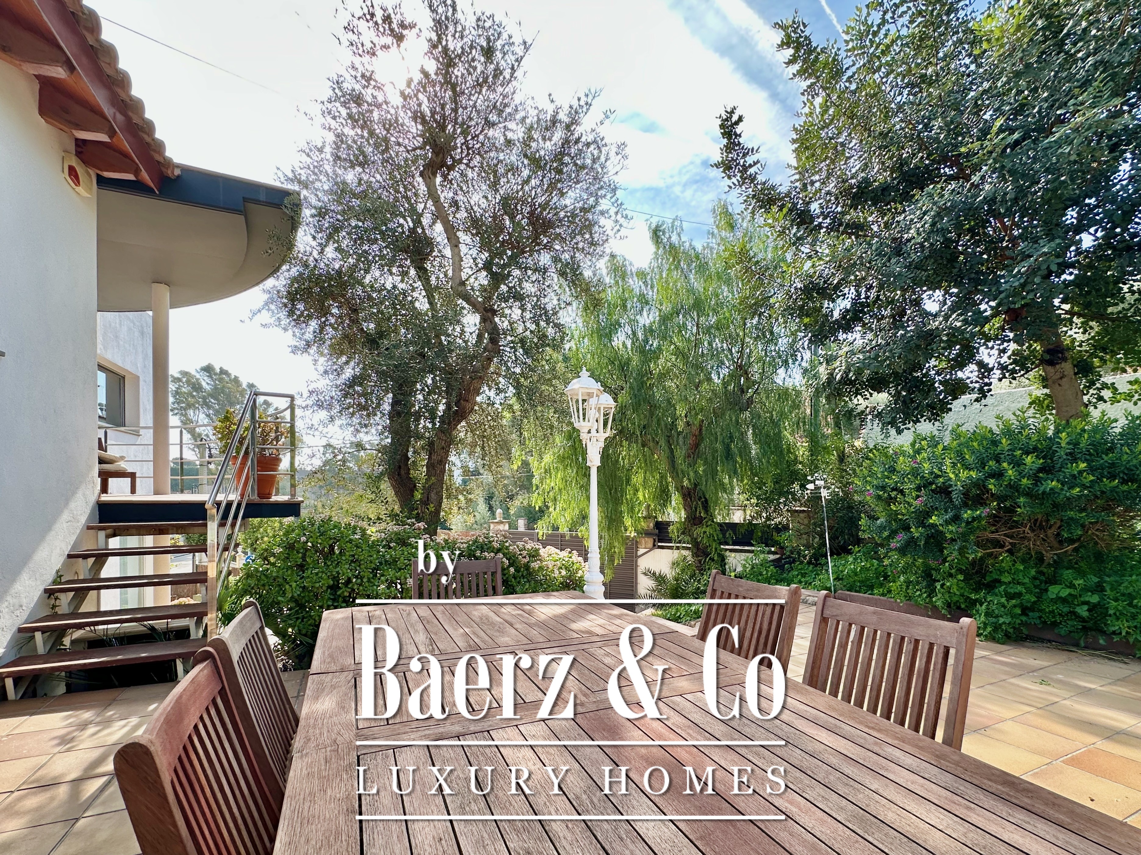 De privévertrekken bestaan uit vijf slaapkamers en twee badkamers. Twee dubbele kamers zijn samengevoegd tot een flexibele suite van meer dan 20 m², maar kunnen desgewenst eenvoudig weer gescheiden worden. Een zolder biedt mogelijkheden voor werk of ontspanning, met directe toegang tot een terras van 20 m² met panoramisch bergzicht. De hoofdsuite beschikt over een kleedruimte en een elegante badkamer met vijf elementen, en combineert comfort met ingetogen klasse. Deze vrijstaande woning te koop in Castelldefels integreert elk detail op doordachte wijze voor een levensstijl van allure in een van Spanje’s meest gewaardeerde kustplaatsen.