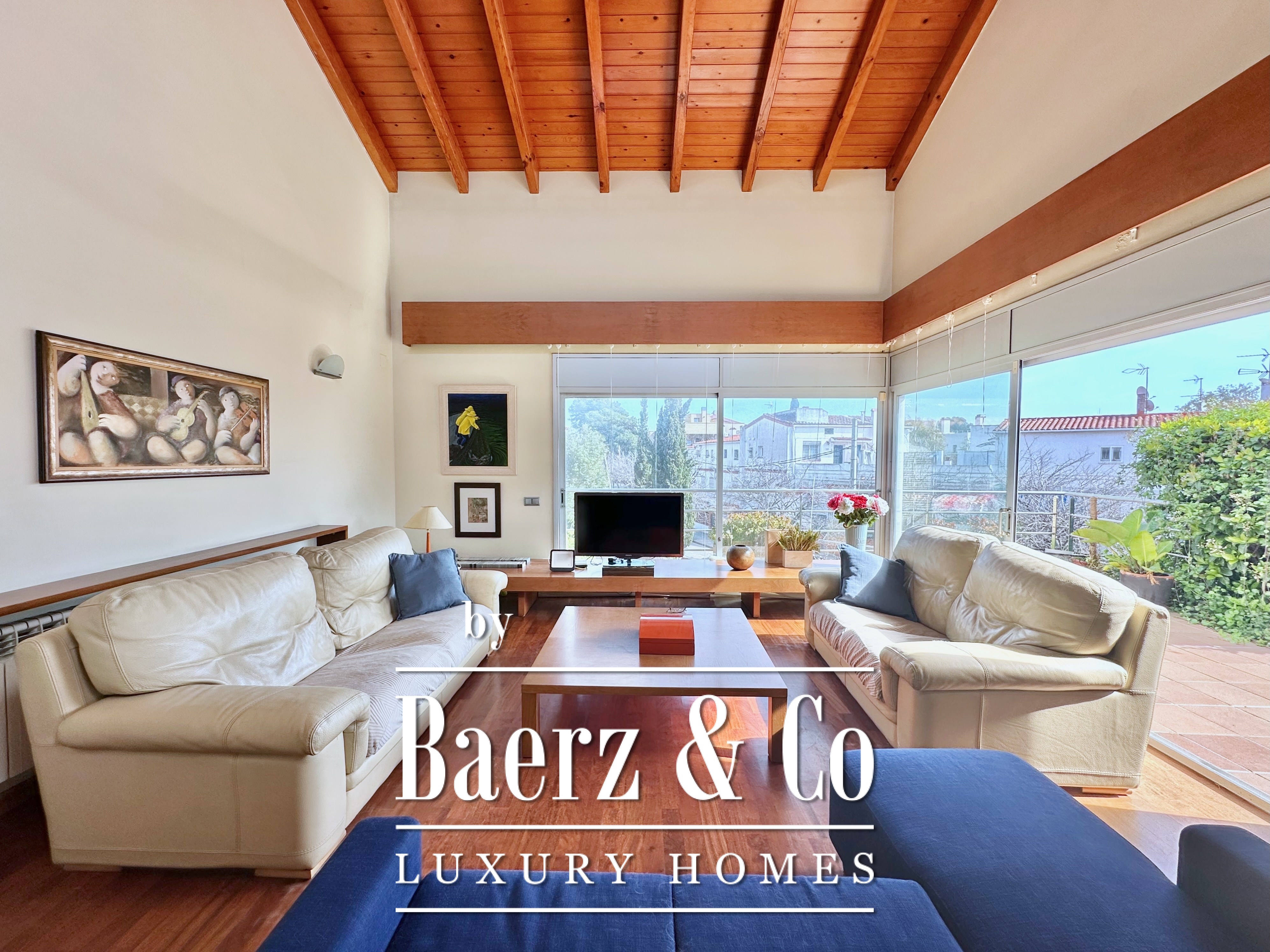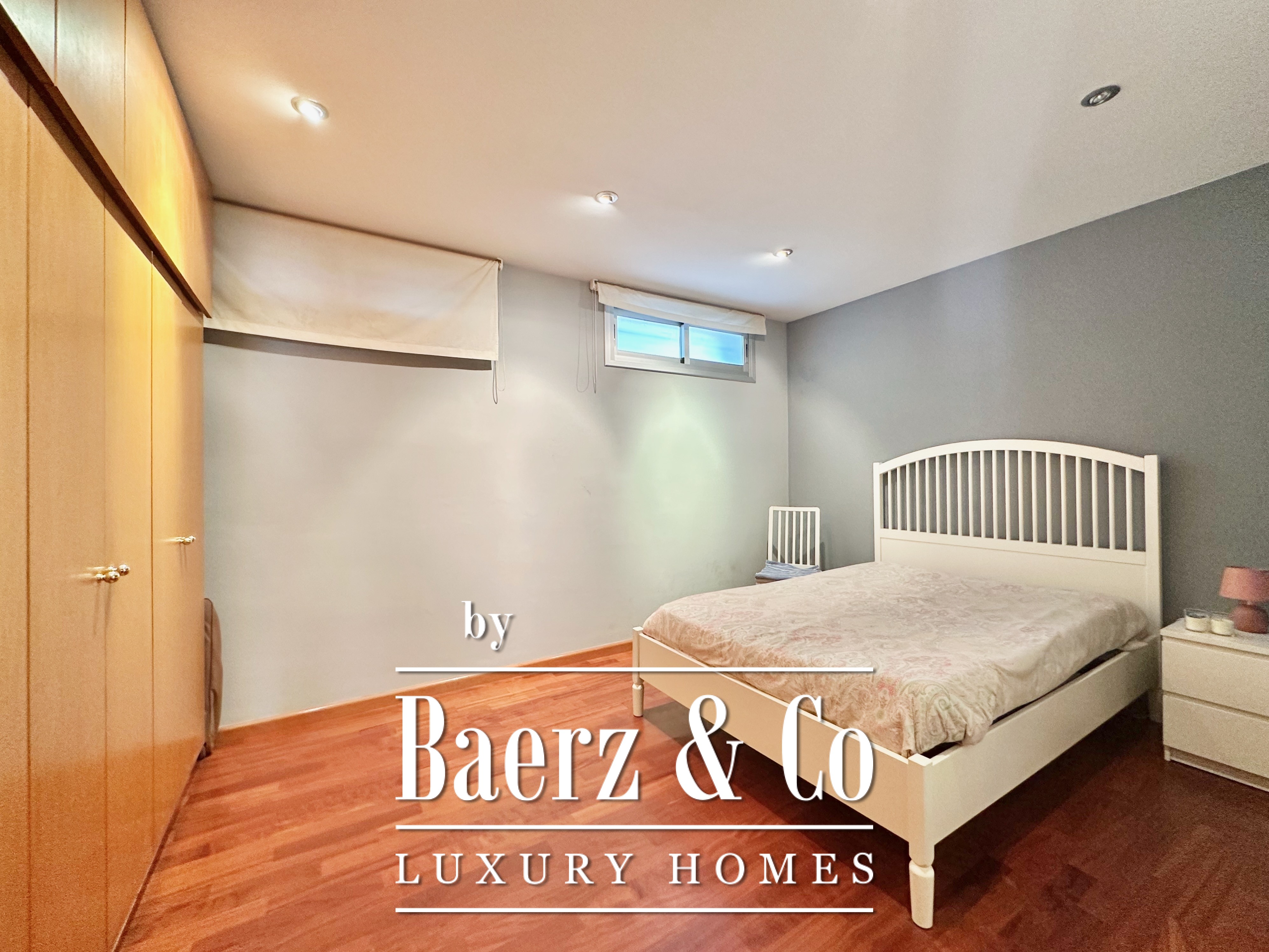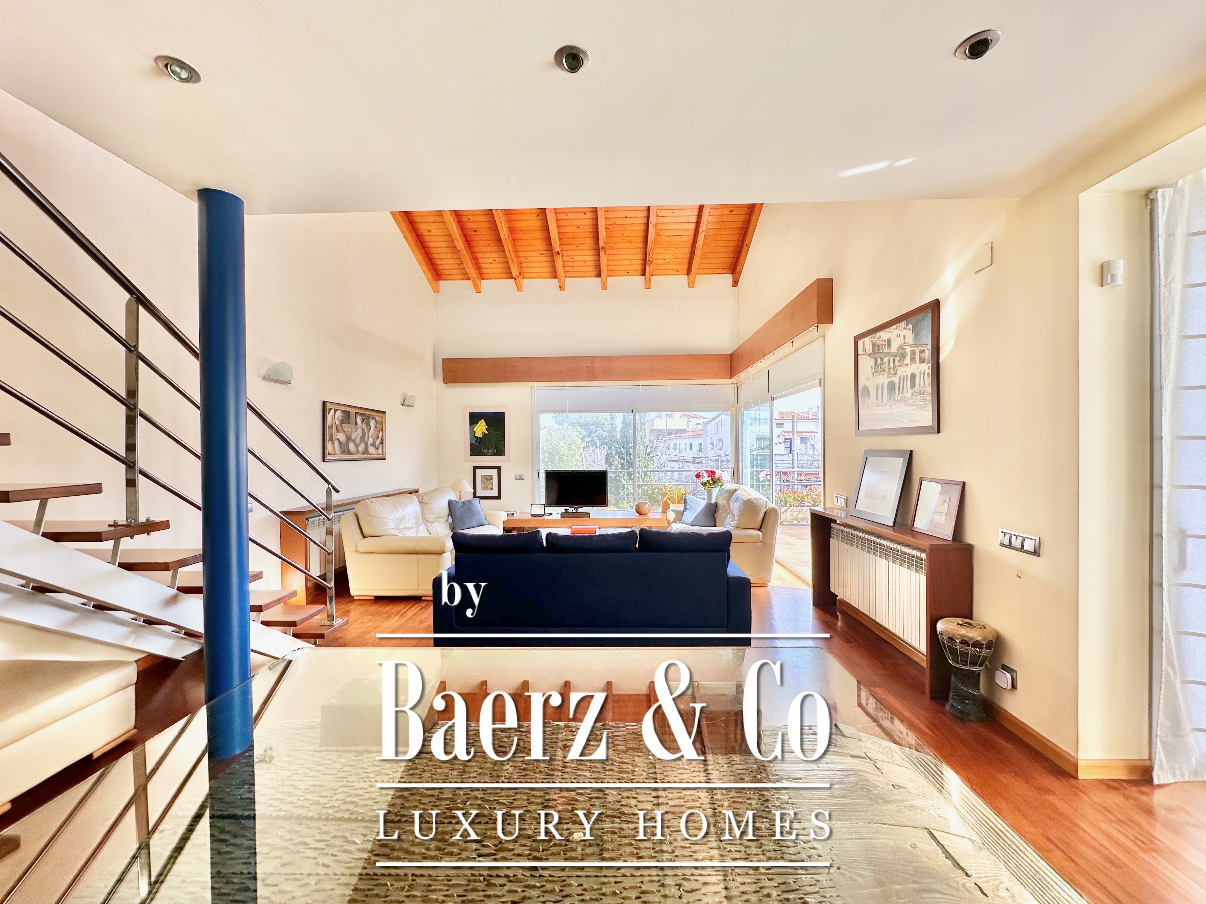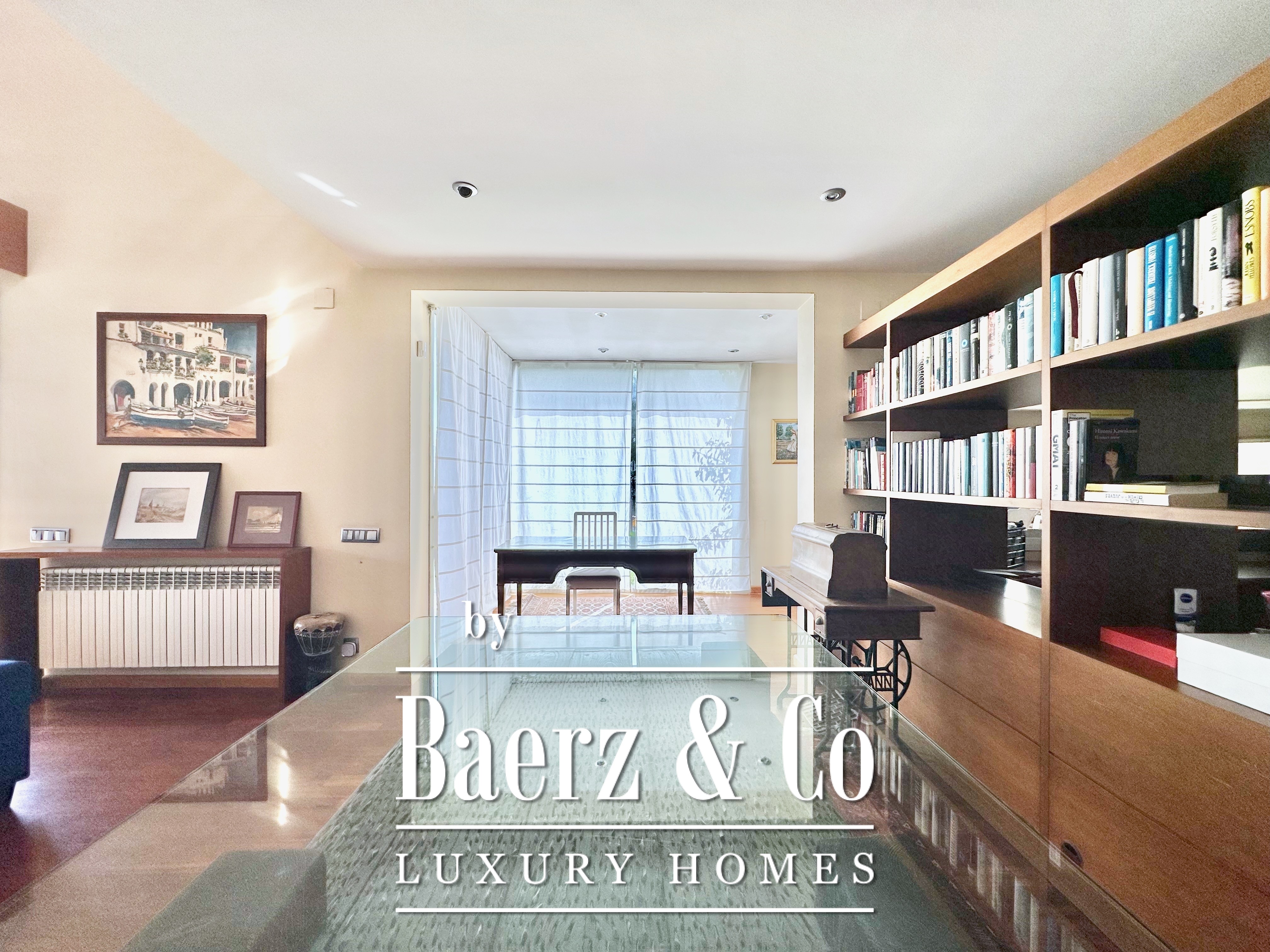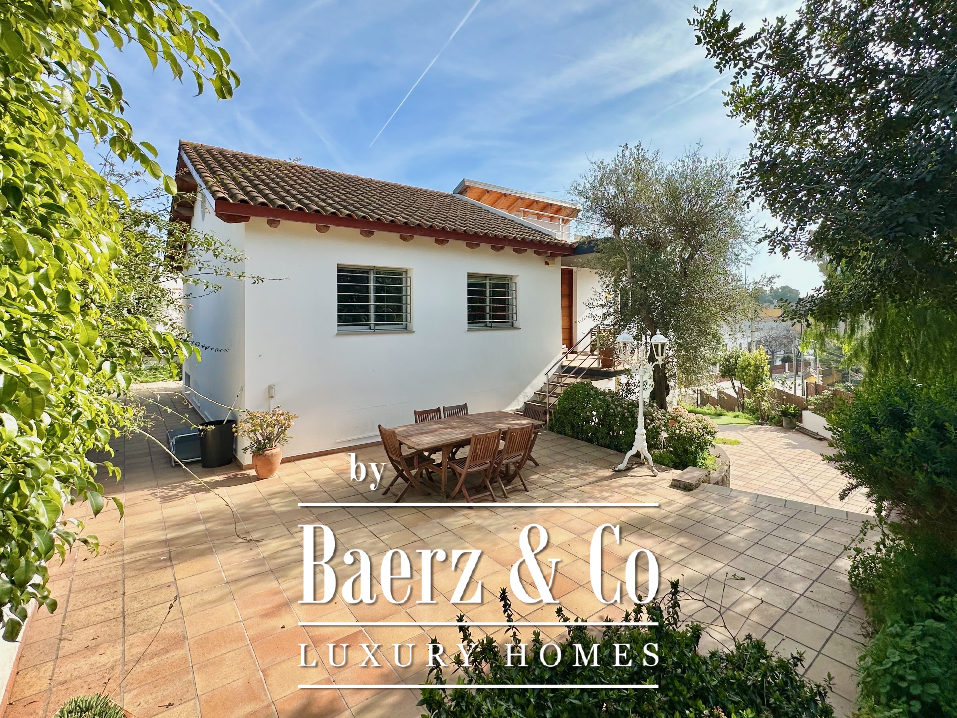 De privévertrekken bestaan uit vijf slaapkamers en twee badkamers. Twee dubbele kamers zijn samengevoegd tot een flexibele suite van meer dan 20 m², maar kunnen desgewenst eenvoudig weer gescheiden worden. Een zolder biedt mogelijkheden voor werk of ontspanning, met directe toegang tot een terras van 20 m² met panoramisch bergzicht. De hoofdsuite beschikt over een kleedruimte en een elegante badkamer met vijf elementen, en combineert comfort met ingetogen klasse. Deze vrijstaande woning te koop in Castelldefels integreert elk detail op doordachte wijze voor een levensstijl van allure in een van Spanje’s meest gewaardeerde kustplaatsen.