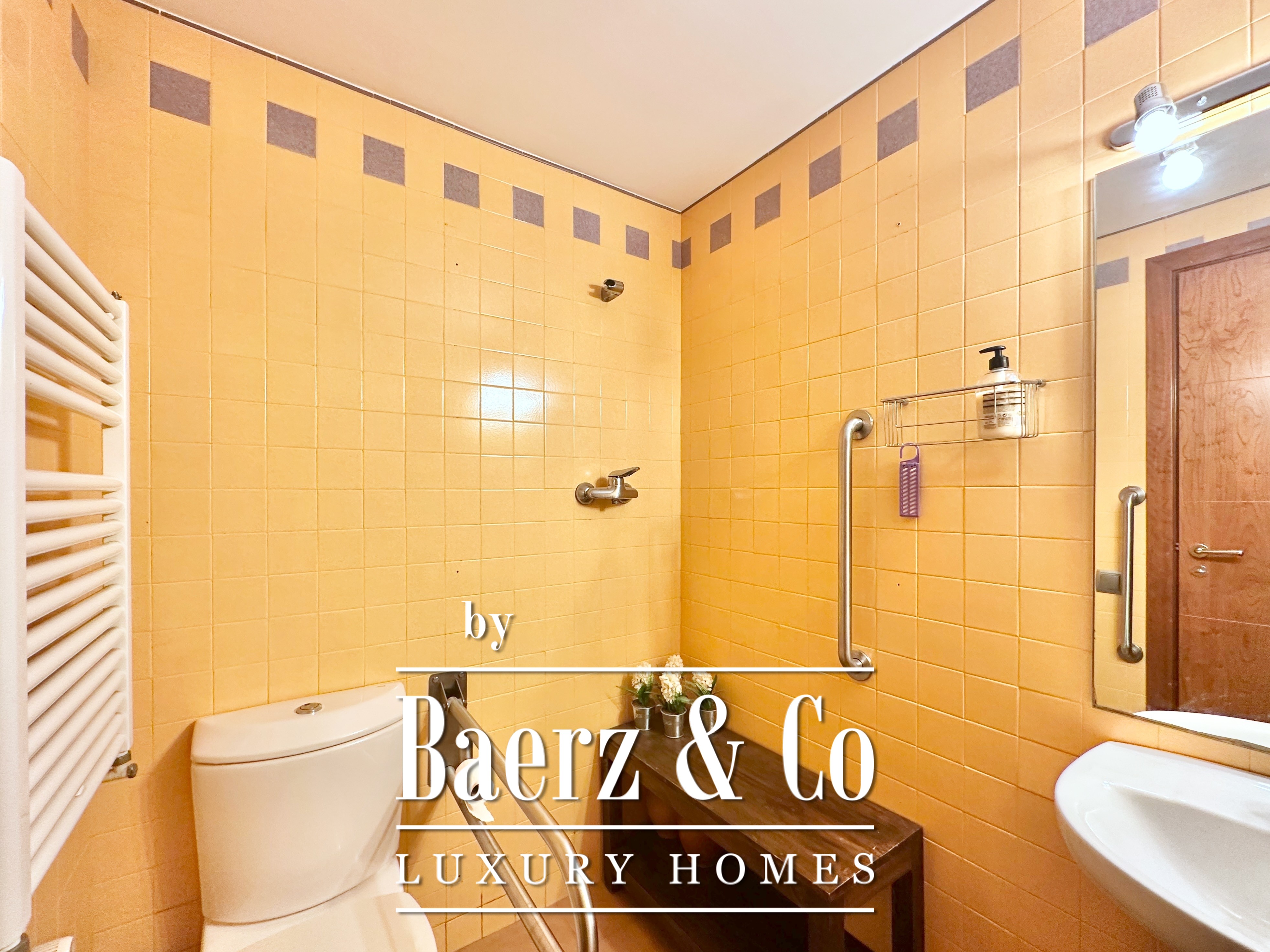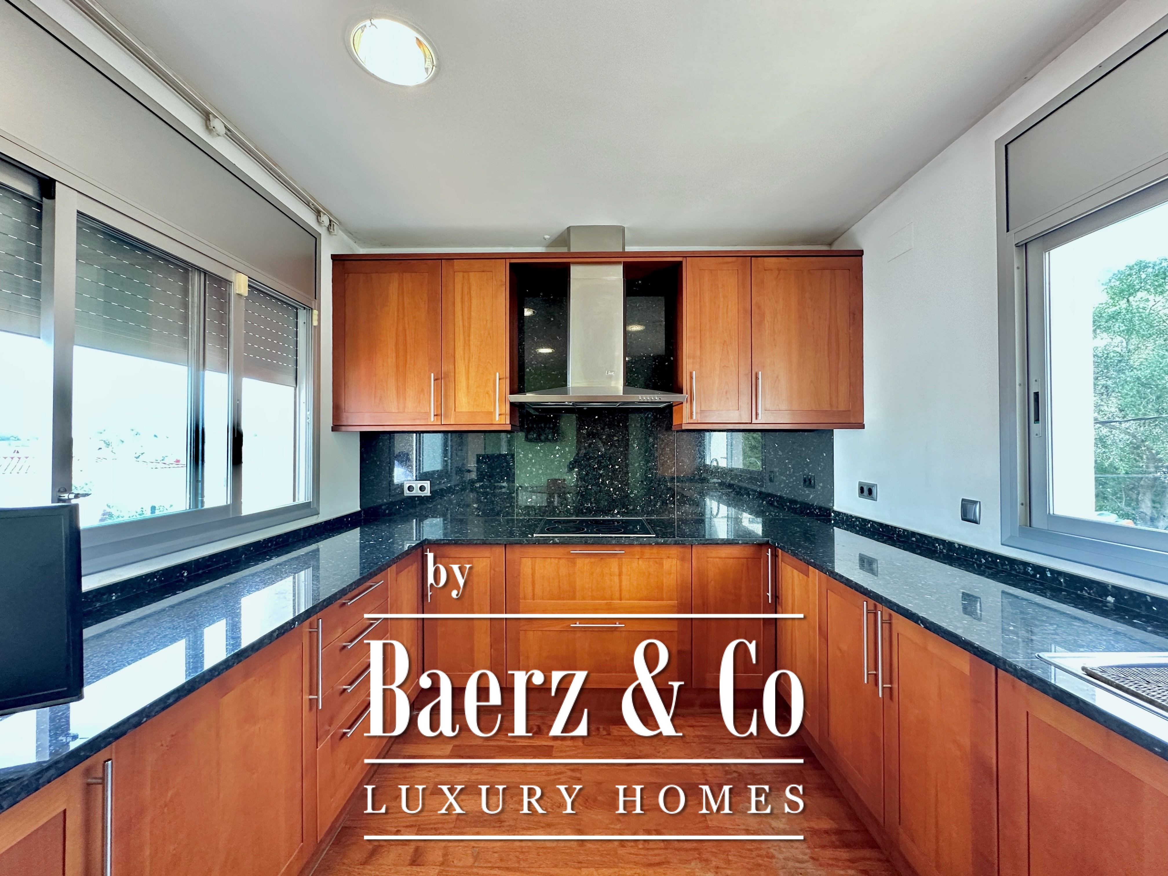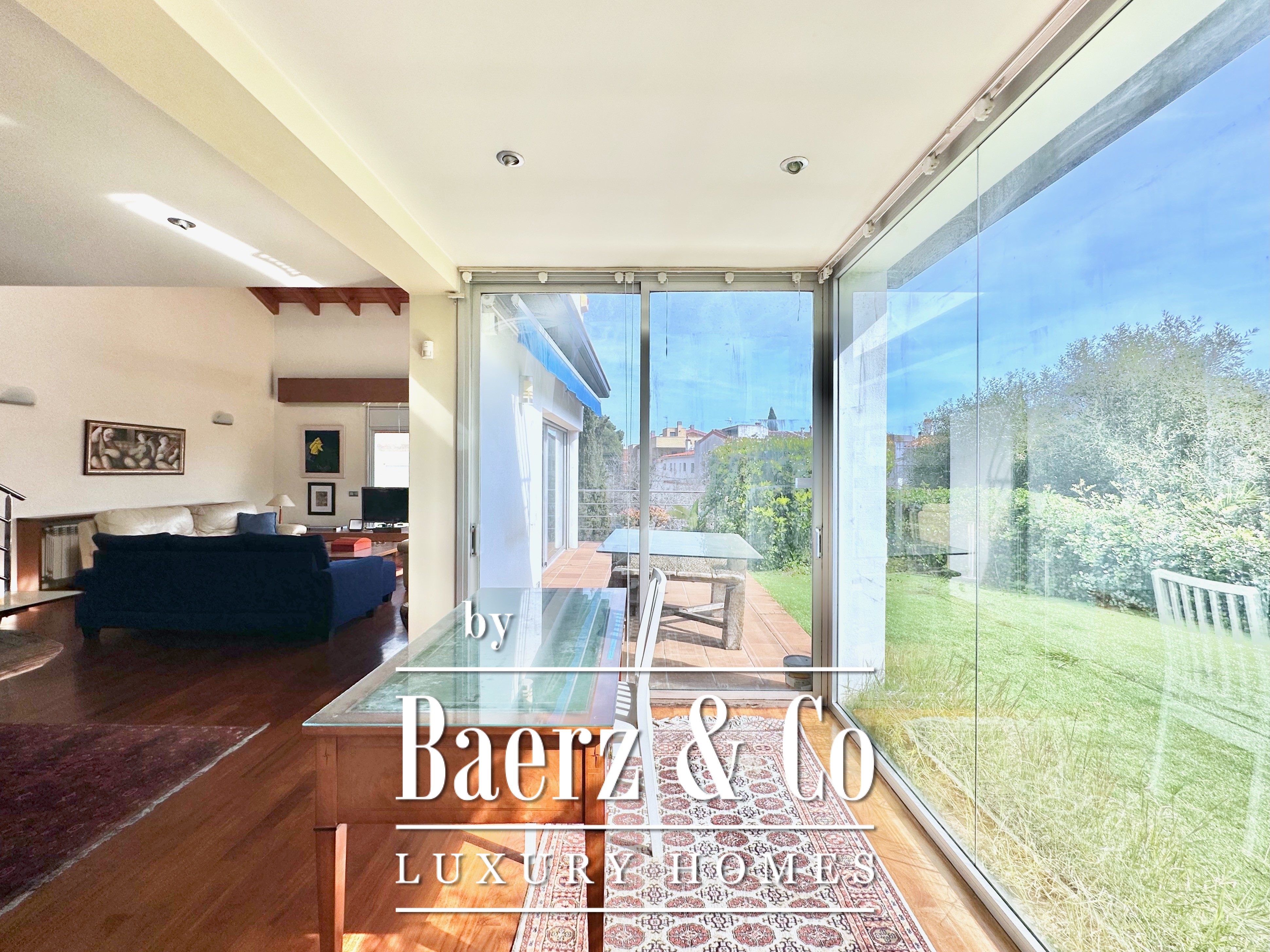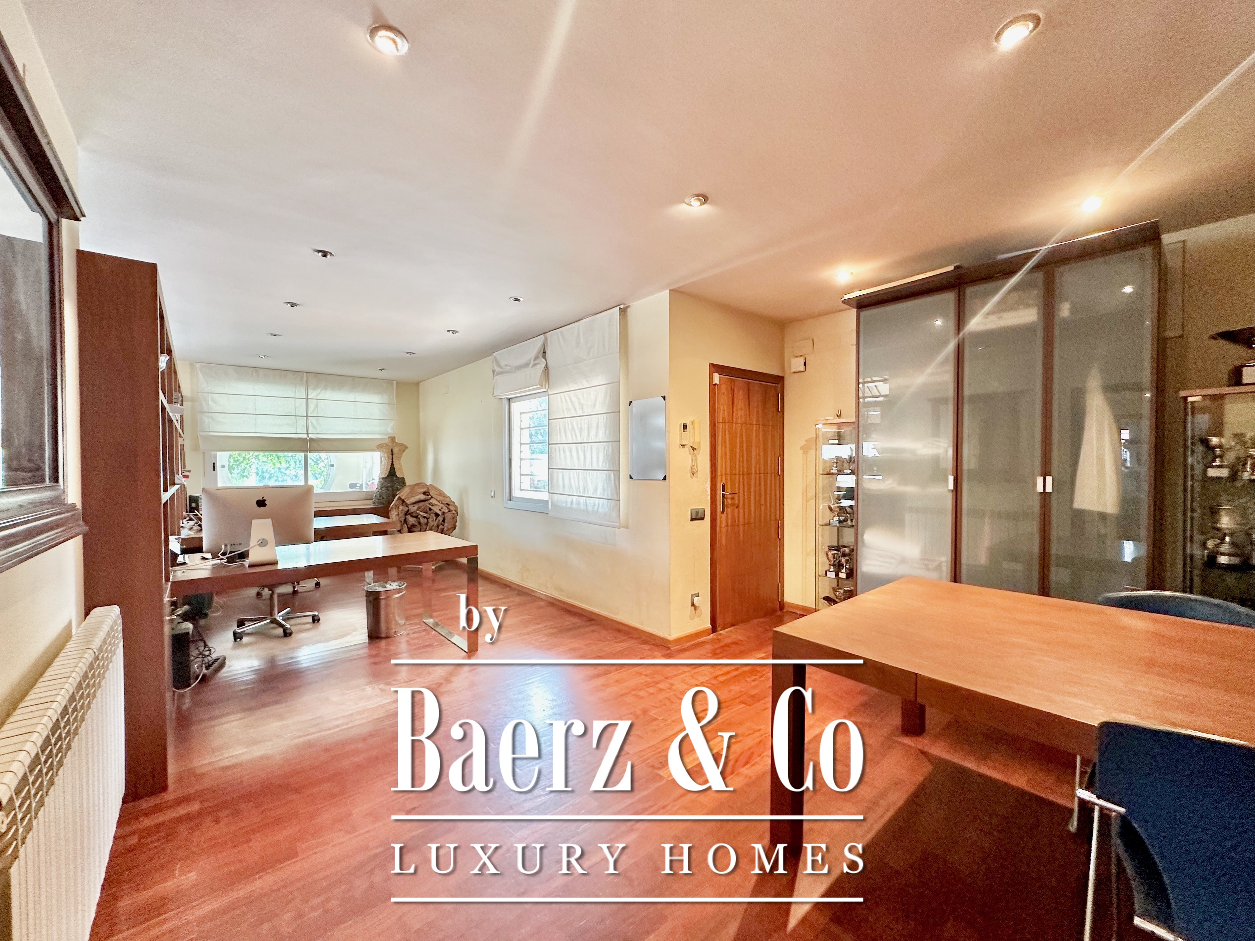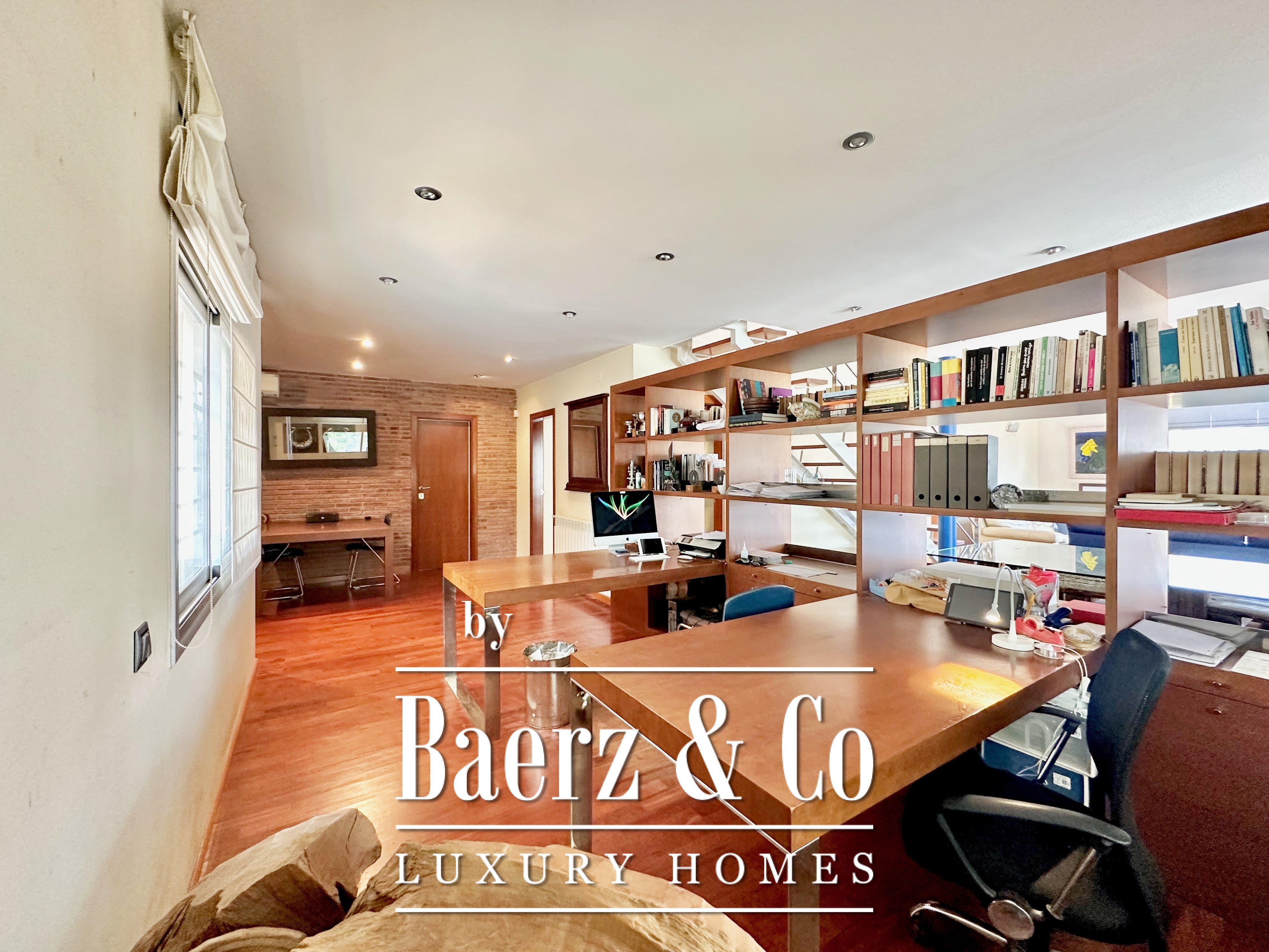 De privévertrekken bestaan uit vijf slaapkamers en twee badkamers. Twee dubbele kamers zijn samengevoegd tot een flexibele suite van meer dan 20 m², maar kunnen desgewenst eenvoudig weer gescheiden worden. Een zolder biedt mogelijkheden voor werk of ontspanning, met directe toegang tot een terras van 20 m² met panoramisch bergzicht. De hoofdsuite beschikt over een kleedruimte en een elegante badkamer met vijf elementen, en combineert comfort met ingetogen klasse. Deze vrijstaande woning te koop in Castelldefels integreert elk detail op doordachte wijze voor een levensstijl van allure in een van Spanje’s meest gewaardeerde kustplaatsen.