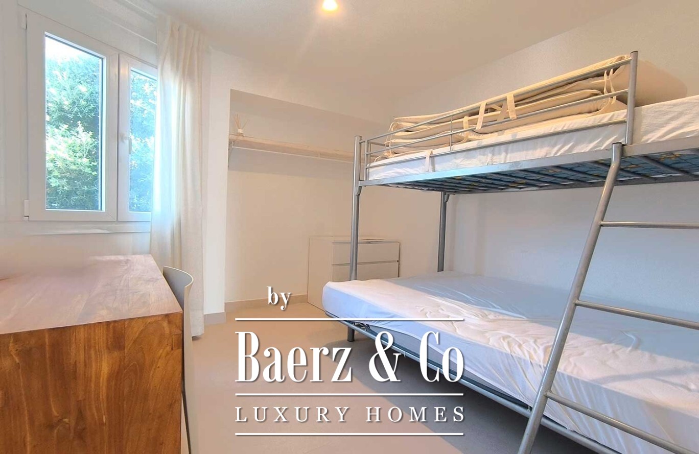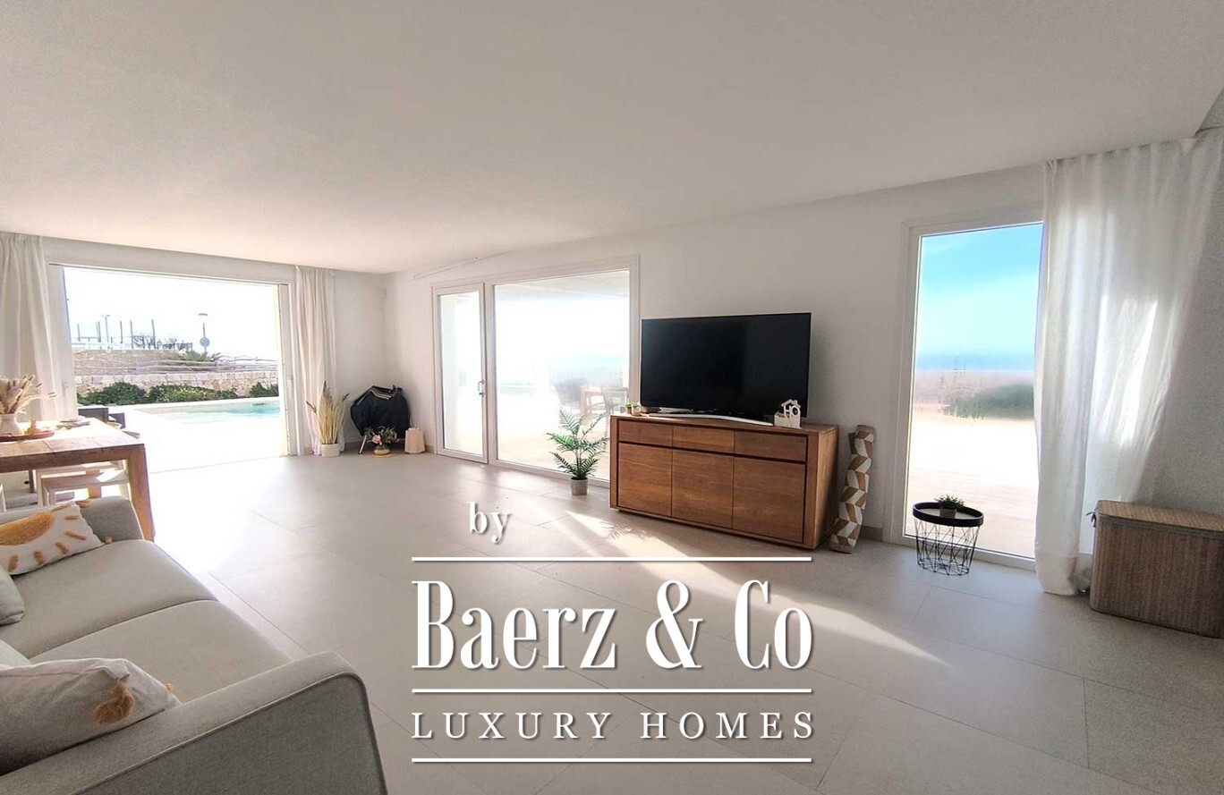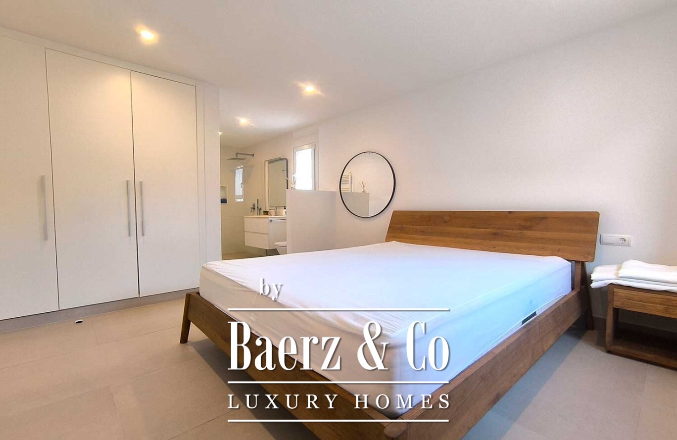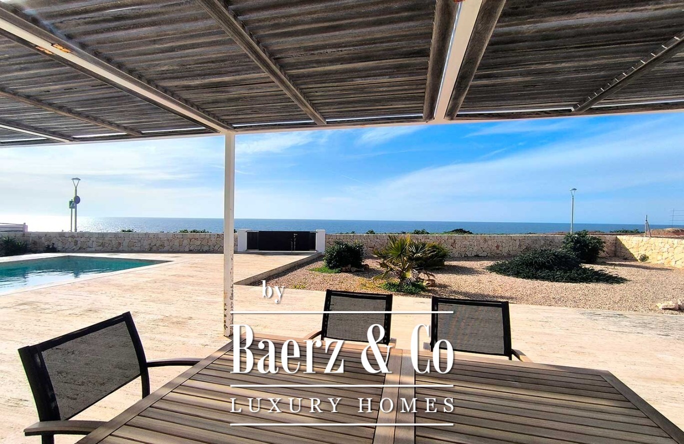 Buiten beschikt de villa over een weelderige tuin en een prachtig zwembad, aangevuld met een ruim terras met pergola, ideaal om te genieten van de mediterrane warmte. Met een woonoppervlakte van 160 m², drie slaapkamers en drie badkamers, belichaamt deze eigentijdse villa in Ciutadella de Menorca een verfijnde en verbonden kustlevensstijl die naadloos aansluit op de uitzonderlijke ligging en het uitzicht.