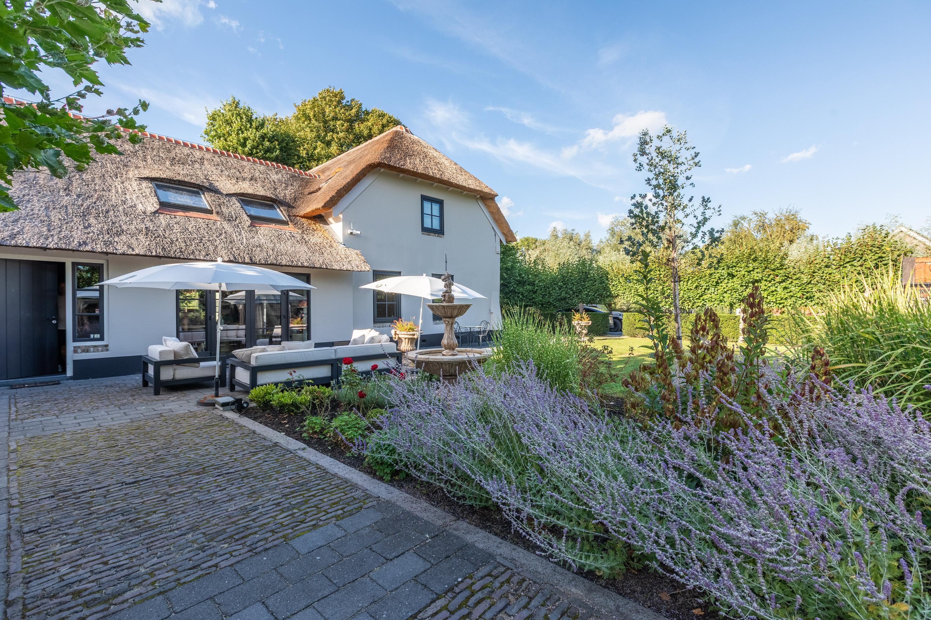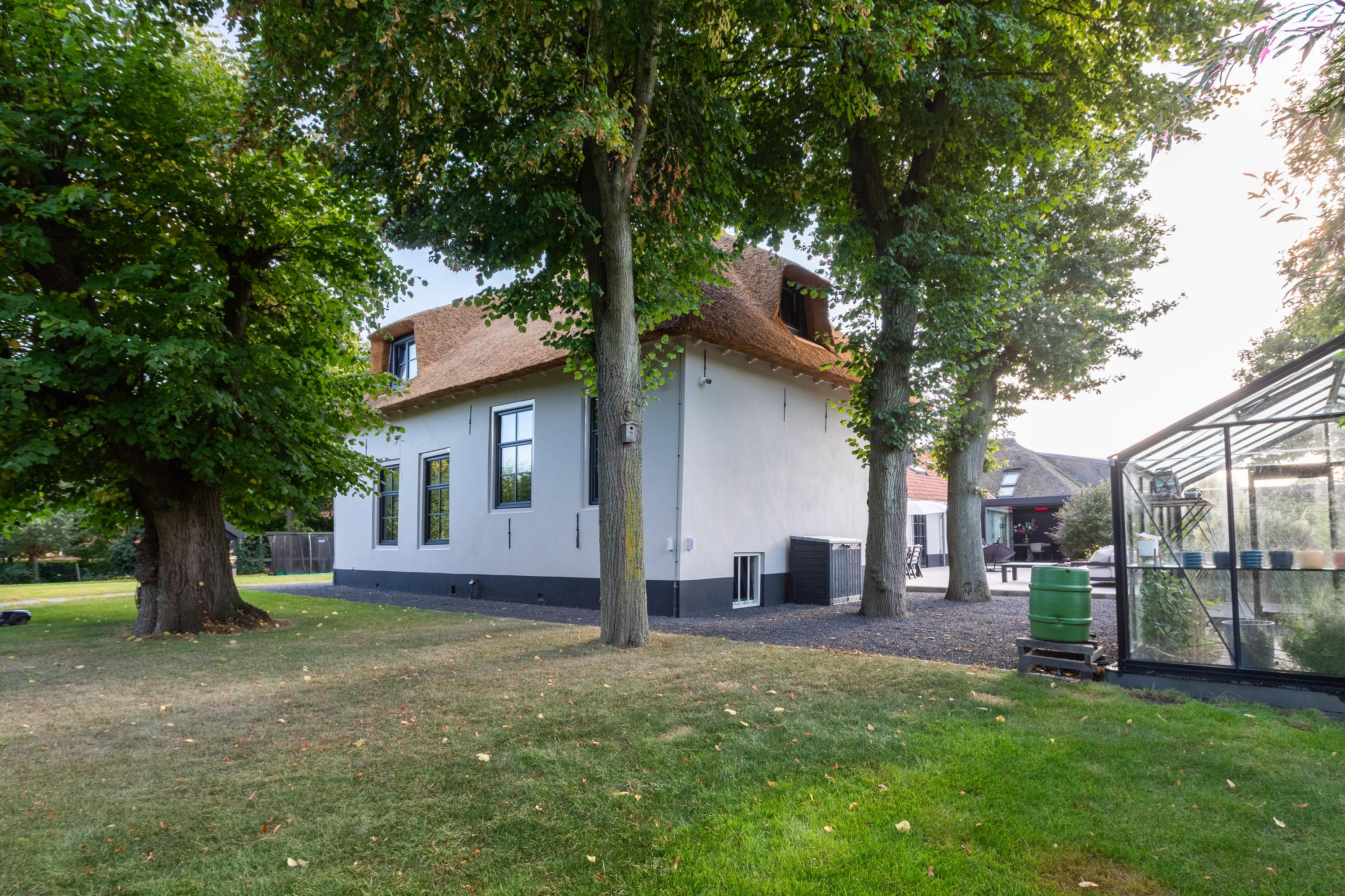 - De voorzijde van de rieten kap is vernieuwd in 2025, de achterzijde in 2017;