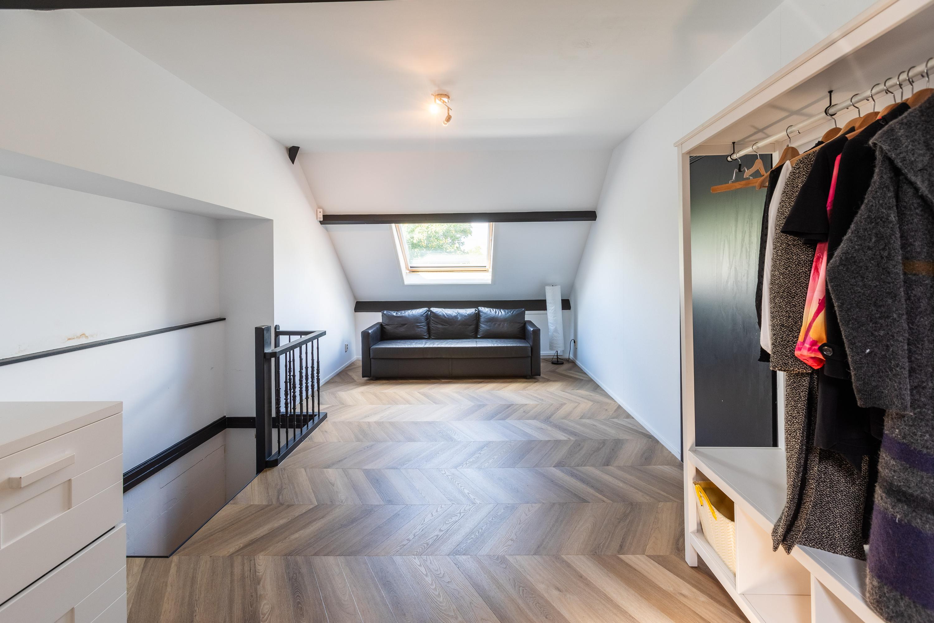 Via de trap vanuit de oude stal, te weten de “feestzaal” bereikt u een royale zolder en een nader in te delen ruimte (ca. 65 m² op de 1,50 m-lijn) boven de garage. Ideaal als extra woonruimte, gastenverblijf of praktijkruimte.