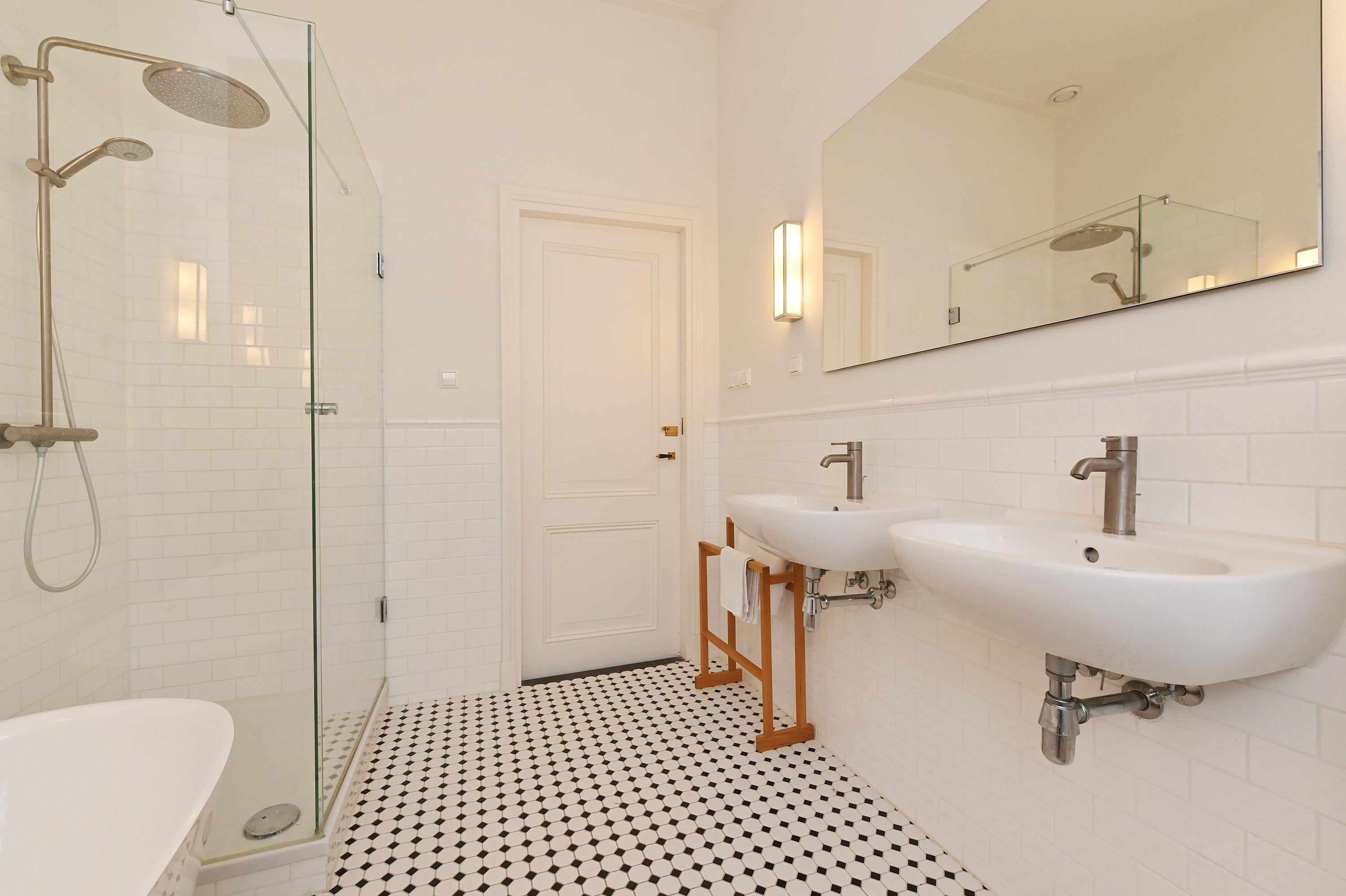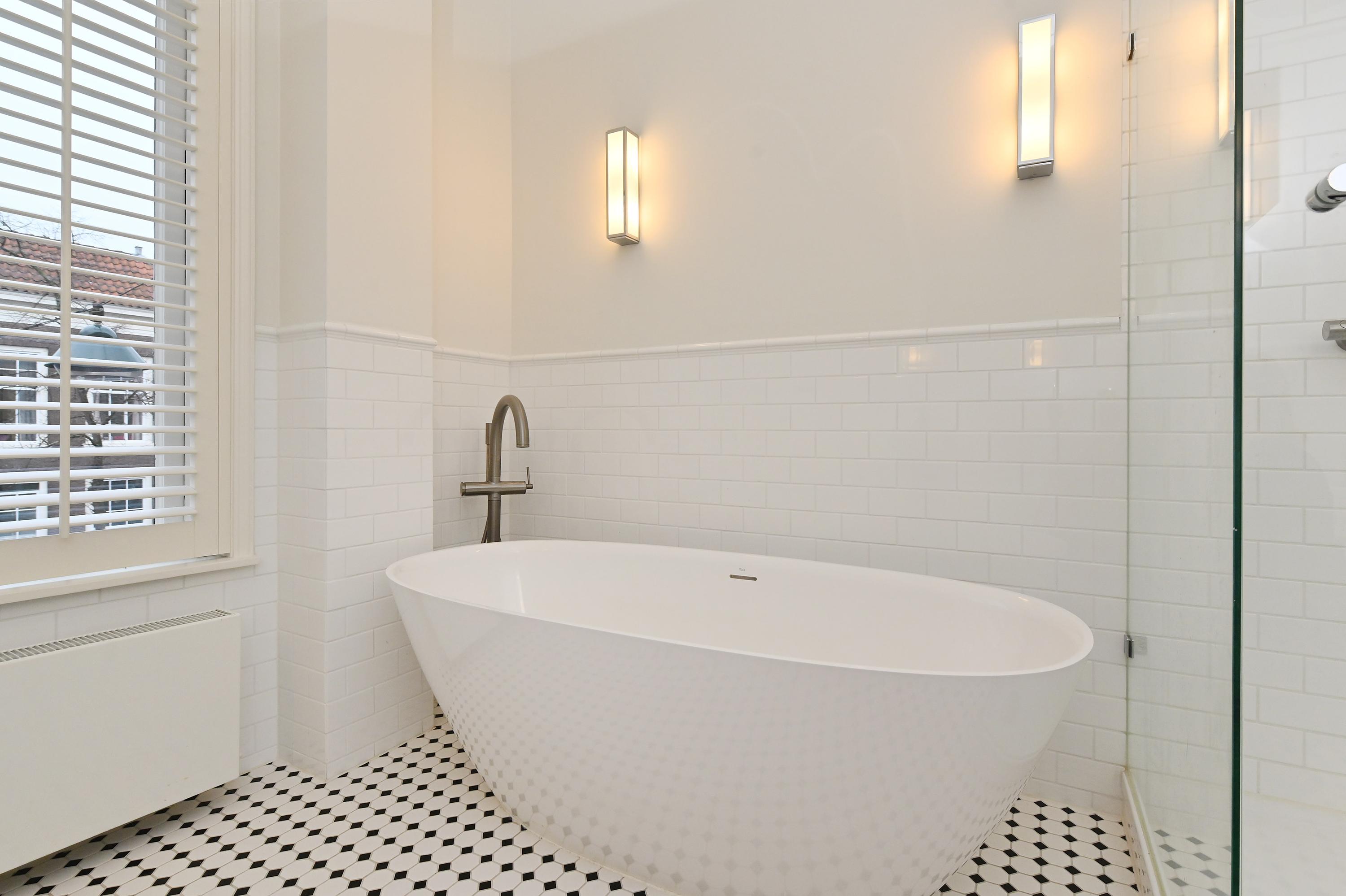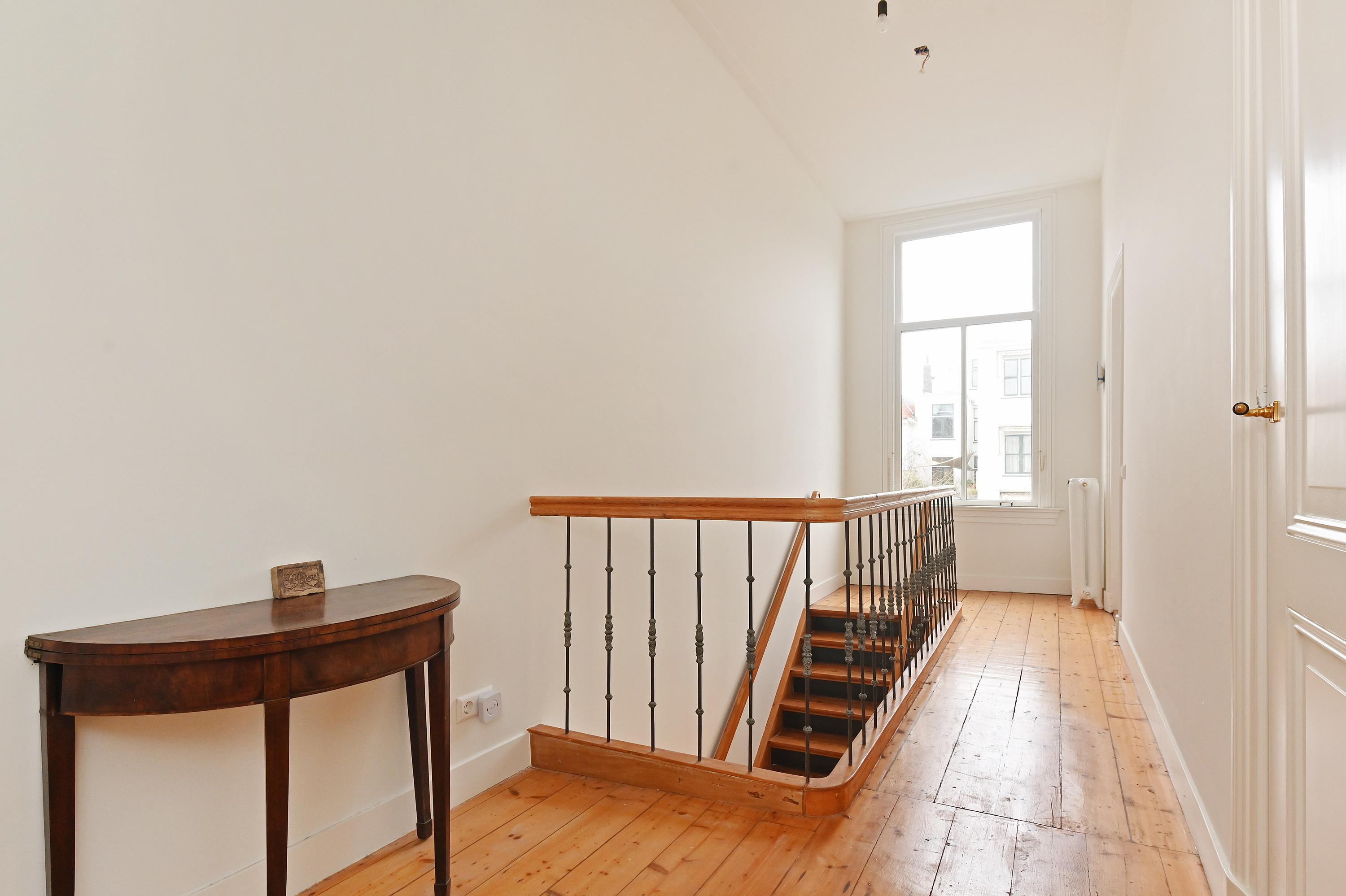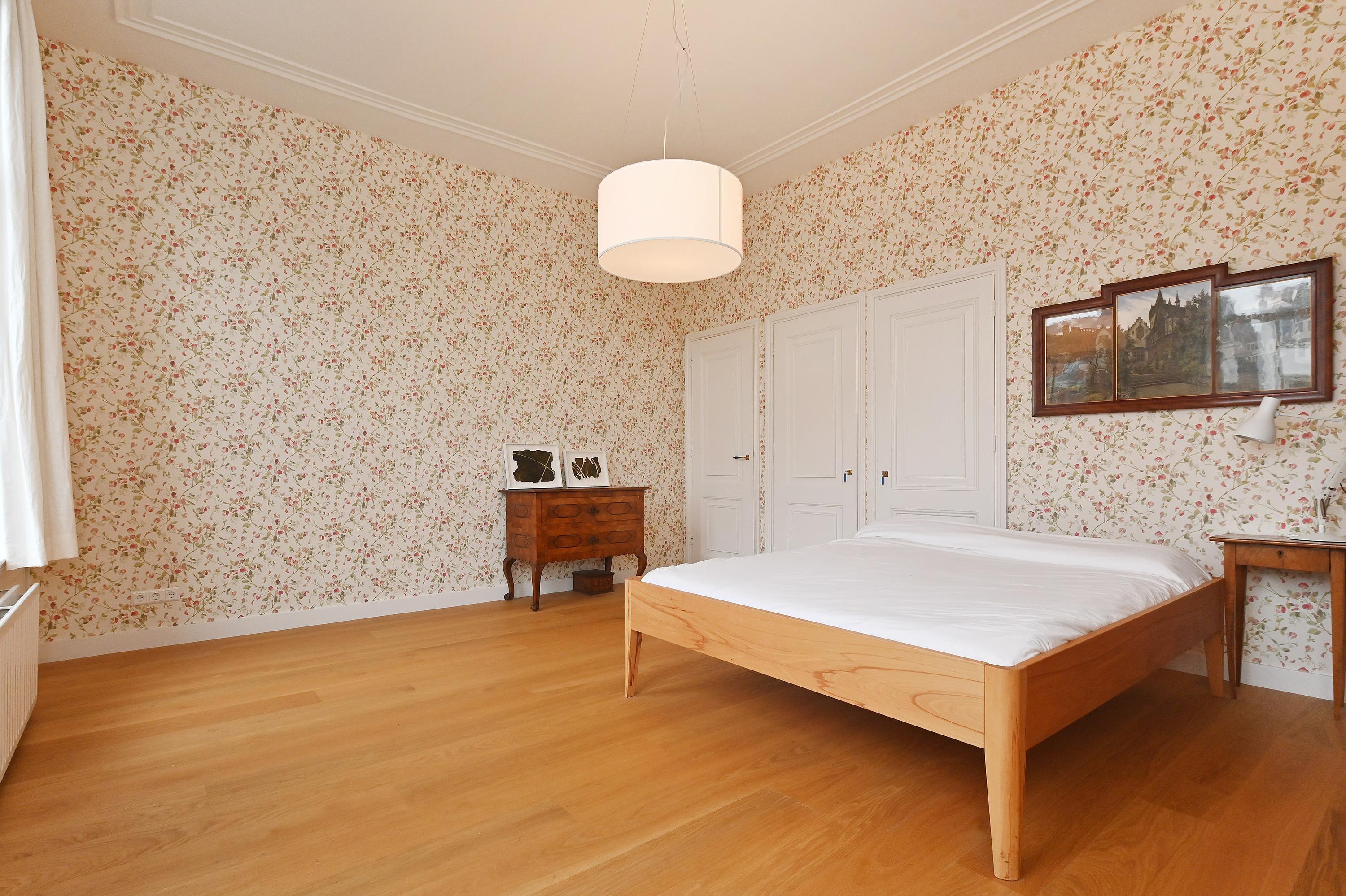 Aan de achterzijde bevindt zich een grote slaapkamer die ideaal is voor ouderslaapkamer. Op deze etage prachtige 3-meter hoge plafonds. Badkamer met douche, ligbad, dubbele wastafel en toilet.