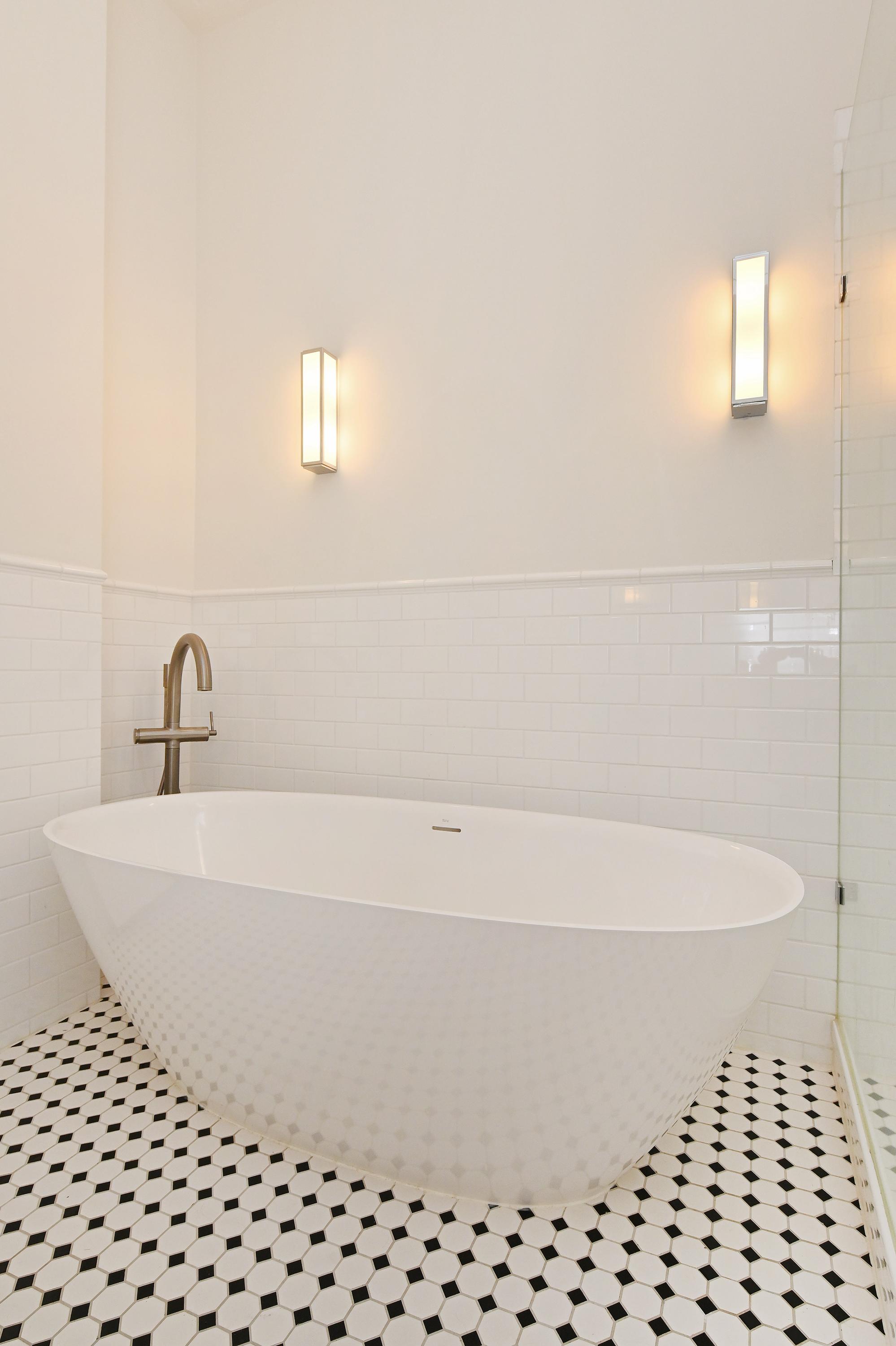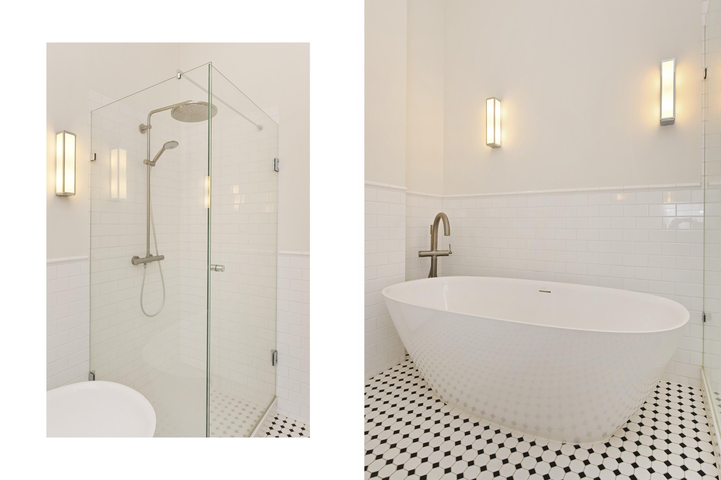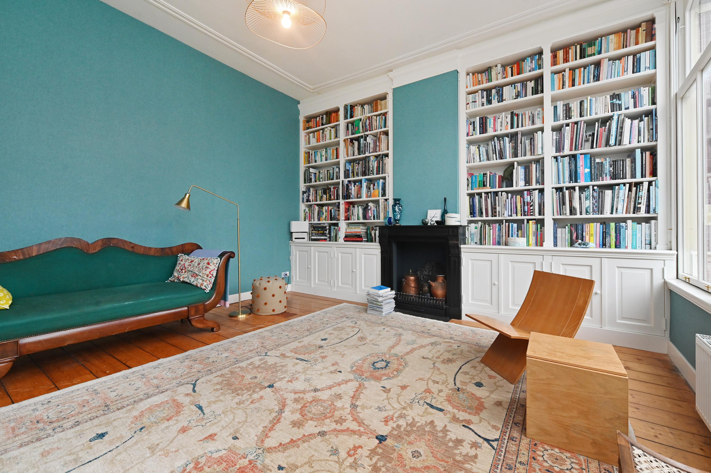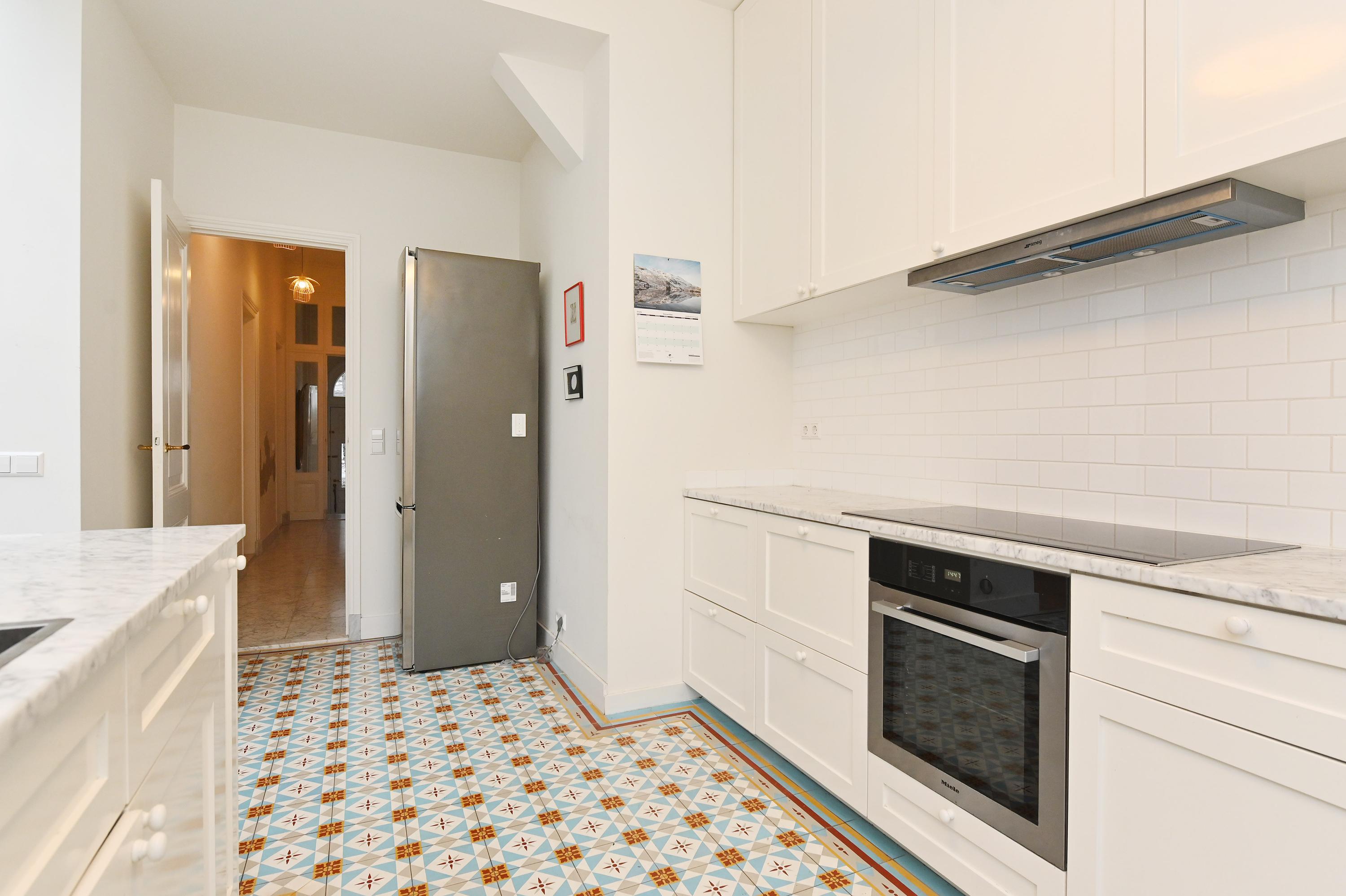 Aan de achterzijde bevindt zich een grote slaapkamer die ideaal is voor ouderslaapkamer. Op deze etage prachtige 3-meter hoge plafonds. Badkamer met douche, ligbad, dubbele wastafel en toilet.