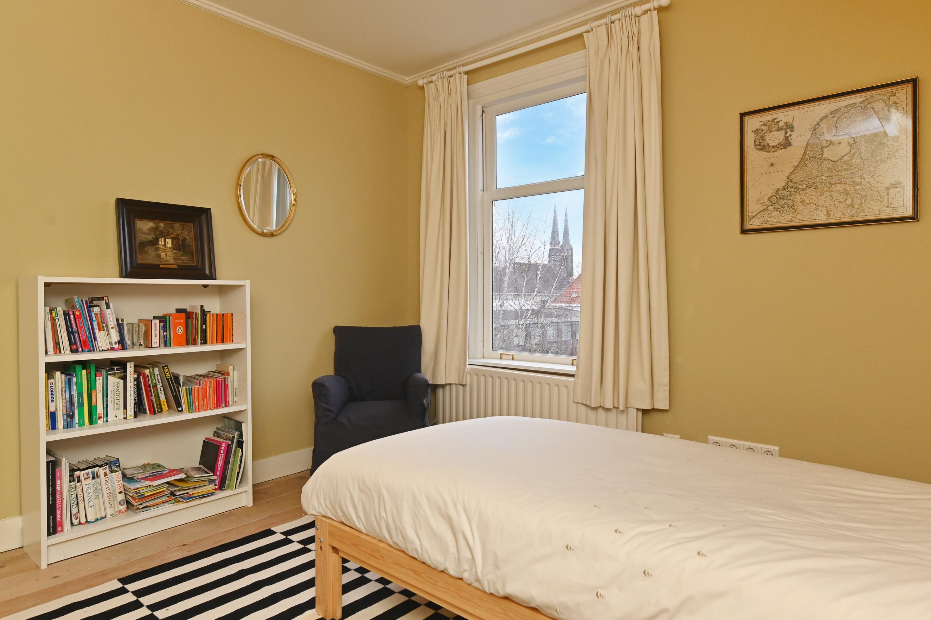 Brede overloop met ingebouwde kast en toegang tot de riante kamer aan de voorzijde met sfeervolle open haard met fraaie schouw en houten vloer. Vanuit de drie hoge ramen heeft u prachtig uitzicht over de Oude Delft. Deze kamer is nu in gebruik als tweede woonkamer, maar kan ook een heerlijke werkkamer, speelkamer of slaapkamer zijn.