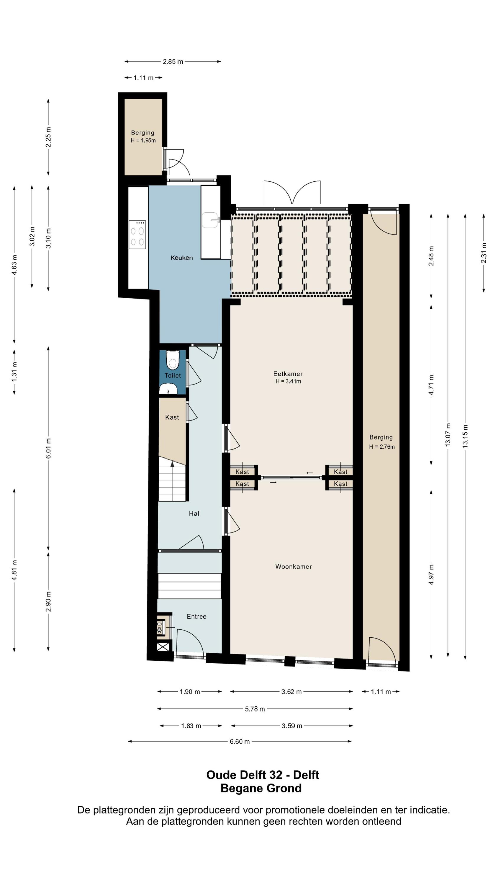 Tuinbergkast en deur naar het overdekte, zeer praktische achterom met een deur aan de Oude Delft.