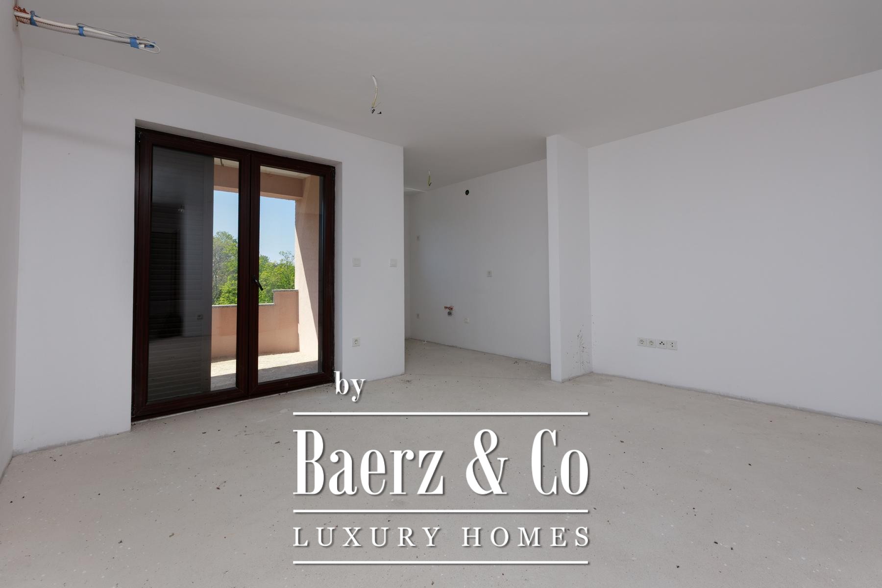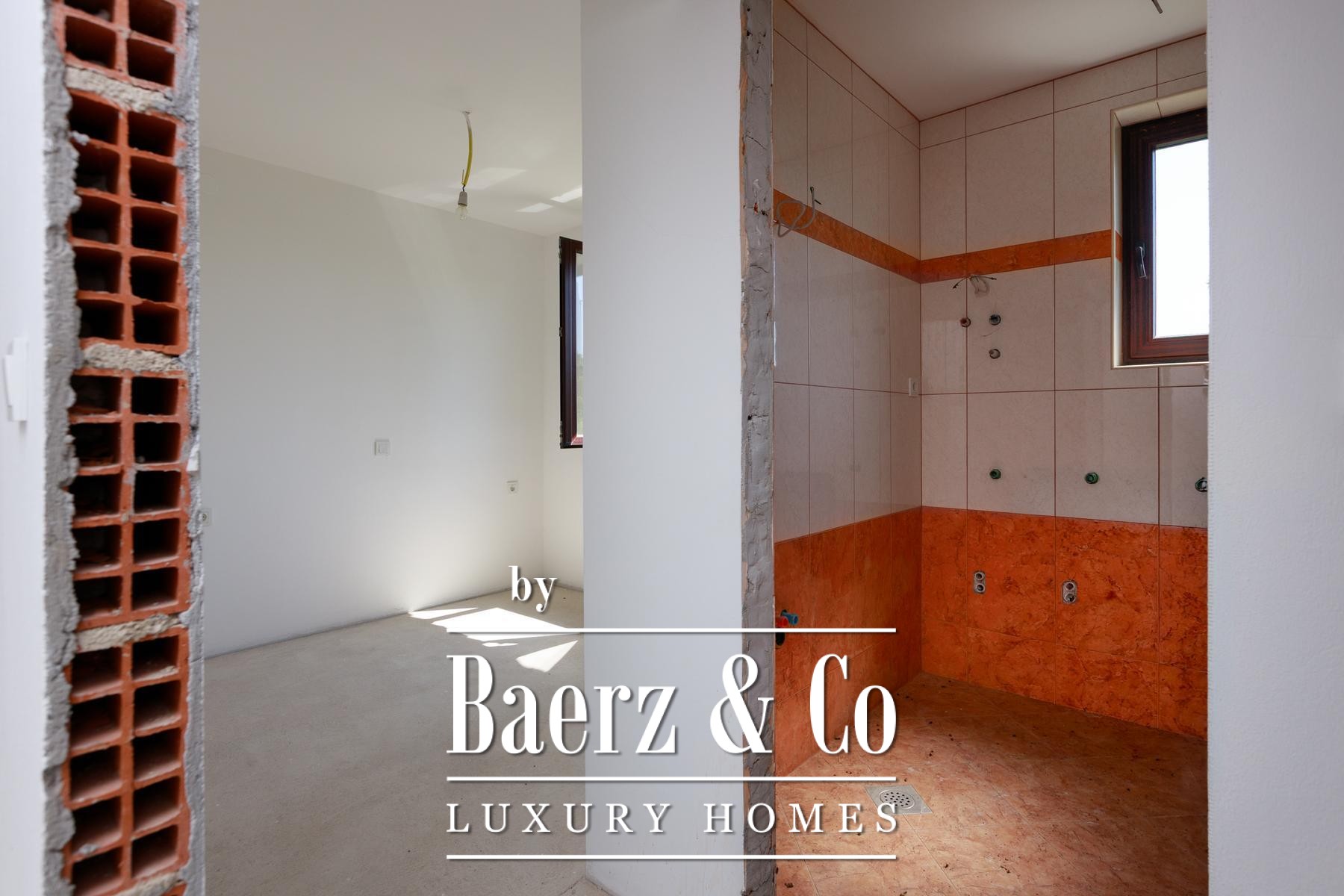 Beide helften van het object beschikken over een eigen tuin, met voldoende ruimte voor individuele zwembaden. Beganegrondappartementen openen naar privéterrassen, terwijl de appartementen op de eerste verdieping over balkons beschikken met uitzicht op het groen. Een aparte eetruimte ligt in de natuurlijke schaduw, ideaal voor buitenverblijven. De rust van Kras, ver van de drukte van de stad en toch op korte rijafstand van zee en voorzieningen, biedt een verfijnd maar ontspannen levensritme.