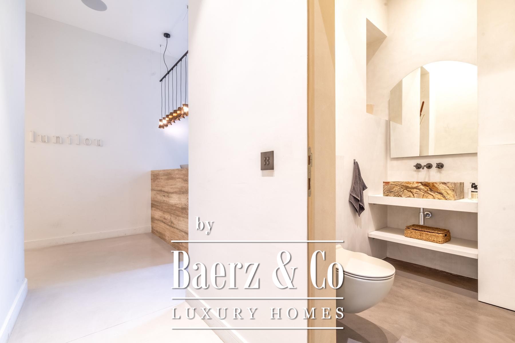 Een volledige renovatie geeft het pand een eigentijdse uitstraling: gewapende betonvloer, epoxyvloeren, vloerverwarming, vernieuwd exterieur- en interieurhoutwerk en volledige airconditioning. De hoge plafonds en overvloedig daglicht creëren een open sfeer, geschikt voor kantoor-, medische of adviesfuncties, maar desgewenst eenvoudig te transformeren tot een ruim en luxueus woonhuis.