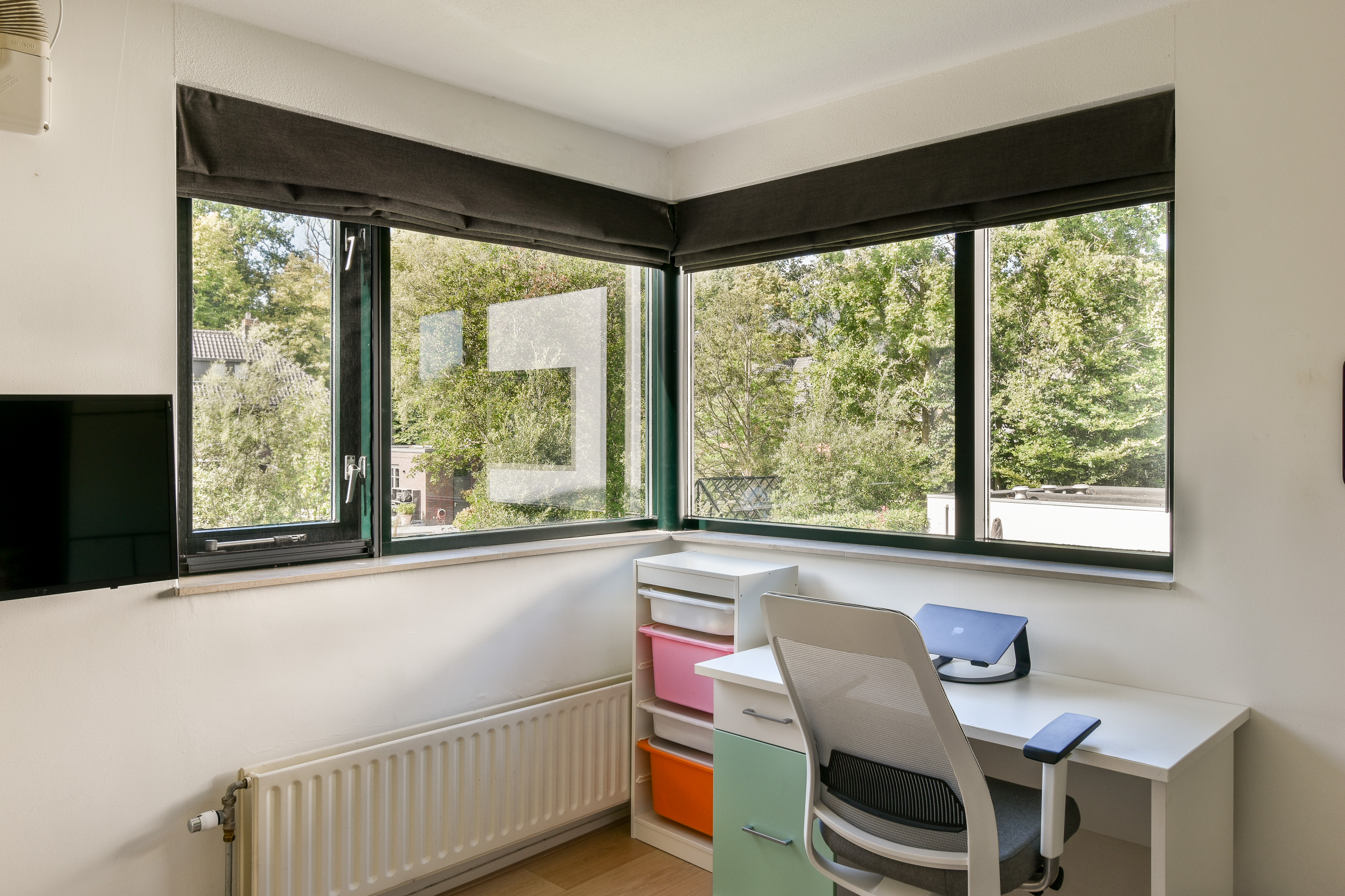 Studio/werkkamer voorzien van openslaande deuren naar het dakterras. De studio is voorzien van airconditioning.