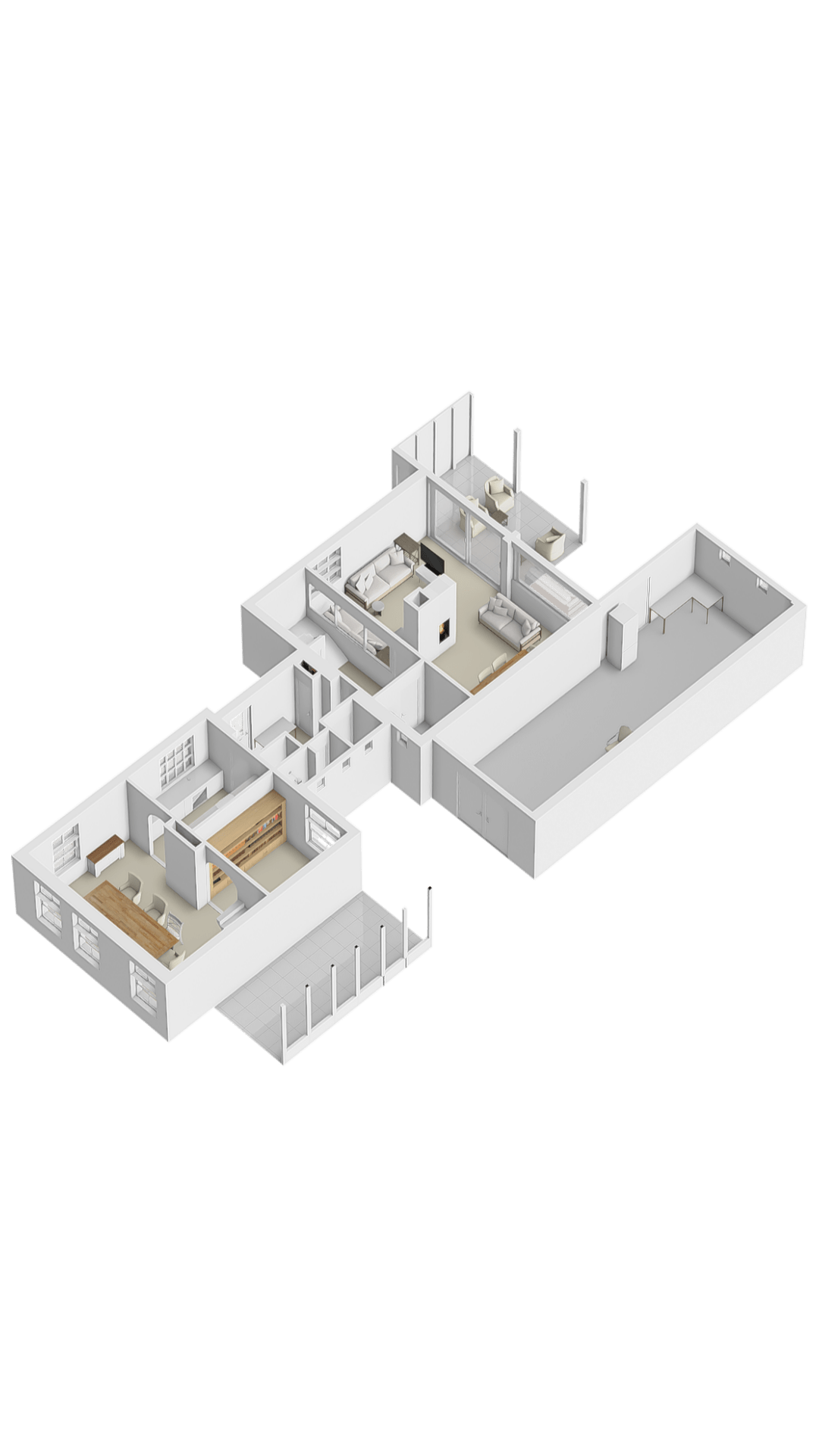 In het achterhuis bevindt zich een indrukwekkende tuingerichte woonkamer, met een sfeervolle gashaard en een grote schuifpui naar de tuin met overkapping. De schuifpui is voorzien van een rolluik, wat extra comfort en privacy biedt. De woonkamer voelt ruim en open aan, met prachtig zicht op de achtertuin. Aansluitend is er een bijkeuken, ideaal voor wasmachine, berging of extra opslag. Tevens is de tussenhal bij de trap perfect te gebruiken als kantoor of werkruimte.