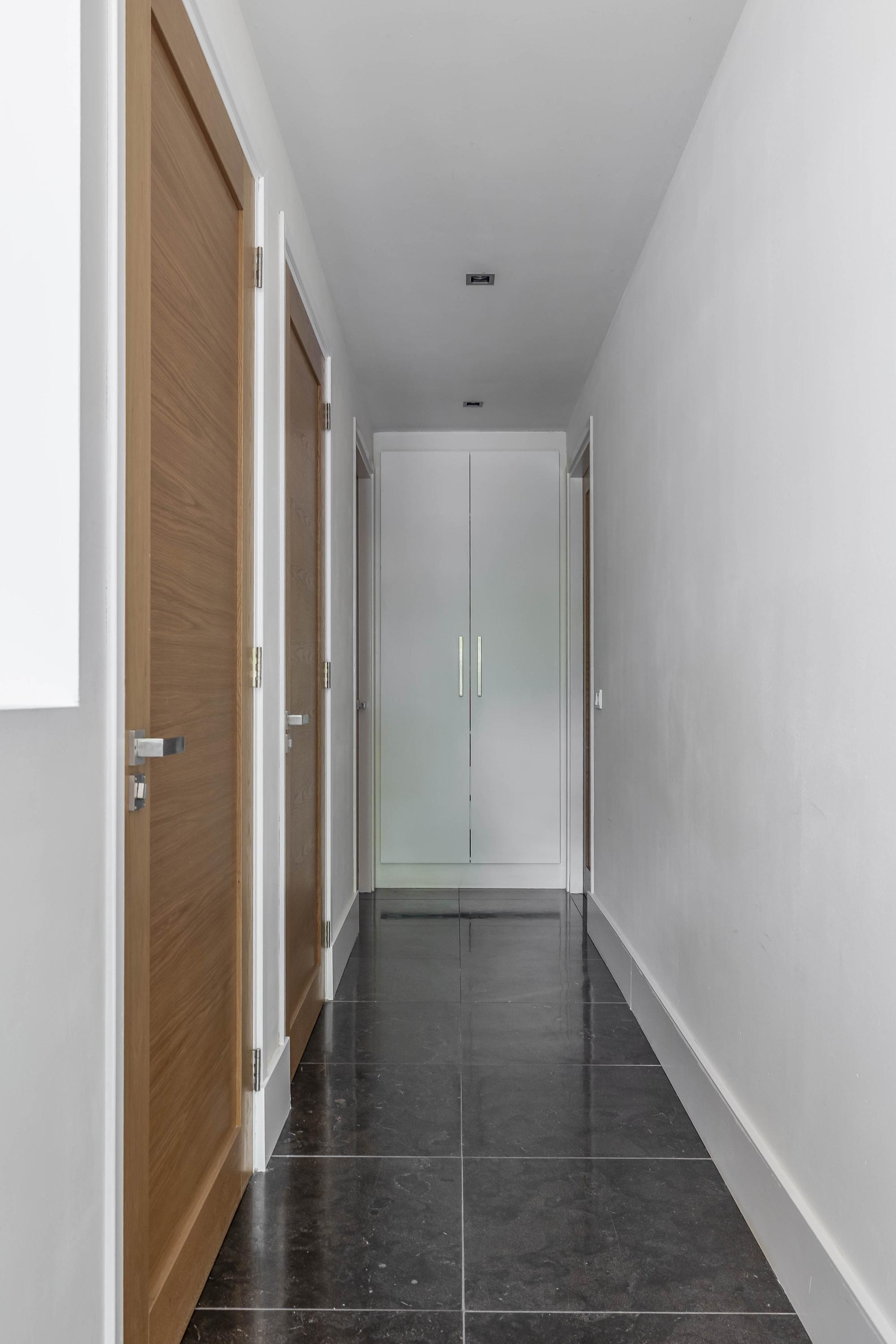 Een afsluitbare deur leidt naar het tweede gedeelte van het souterrain, dat tevens via een vaste trap aan de rechterzijde van de woning bereikbaar is. Dit verrassend ruime en fraai afgewerkte tweede woongedeelte is een volwaardige leefruimte met talloze gebruiksmogelijkheden.