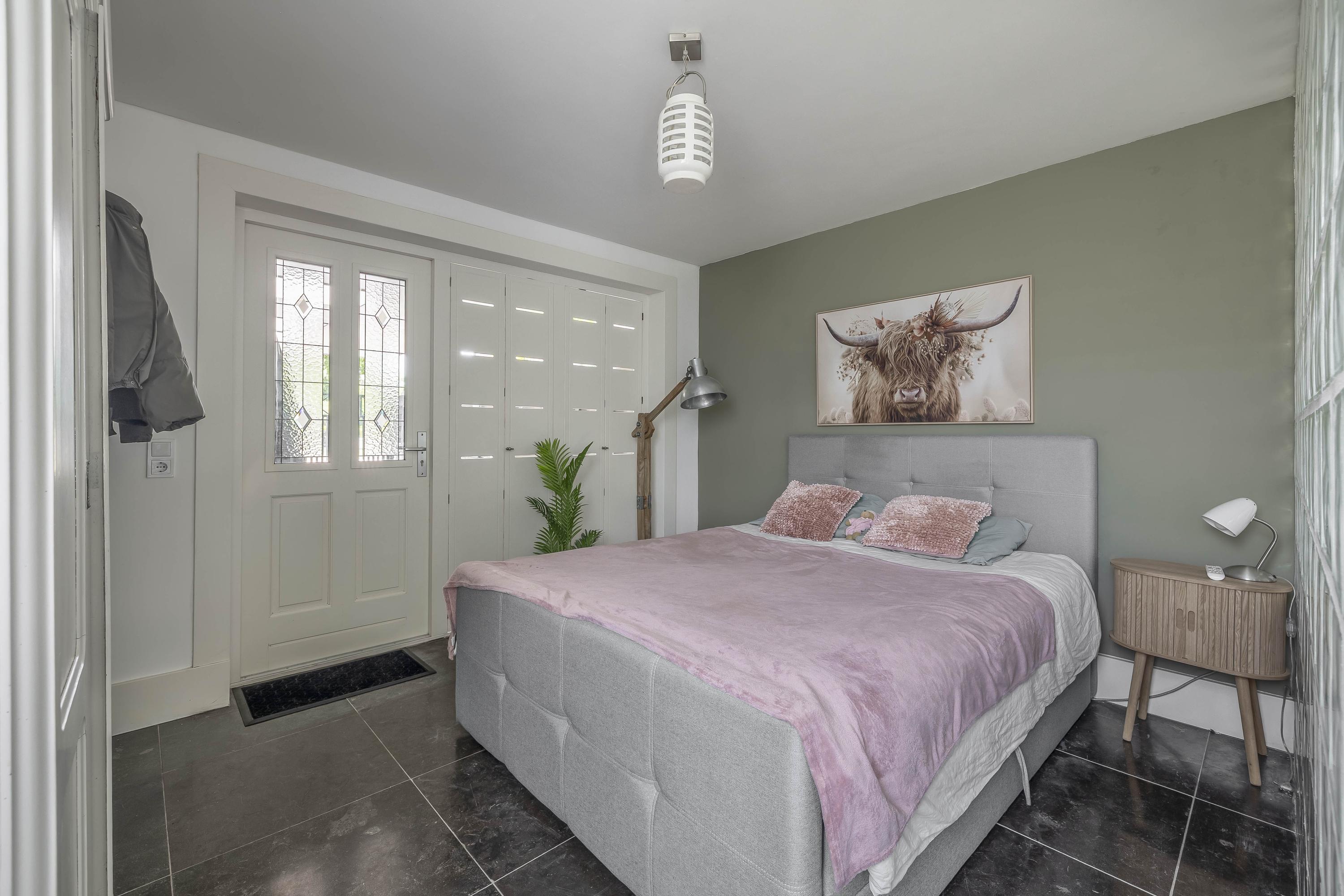 Slaapkamer 1 betreft eenprachtige masterbedroom met badkamer-en-suite en een vaste trapopgang naar de tweede verdieping. Hier ervaar je een gevoel van luxe en ruimte, mede dankzij de hoge nok en smaakvolle afwerking.