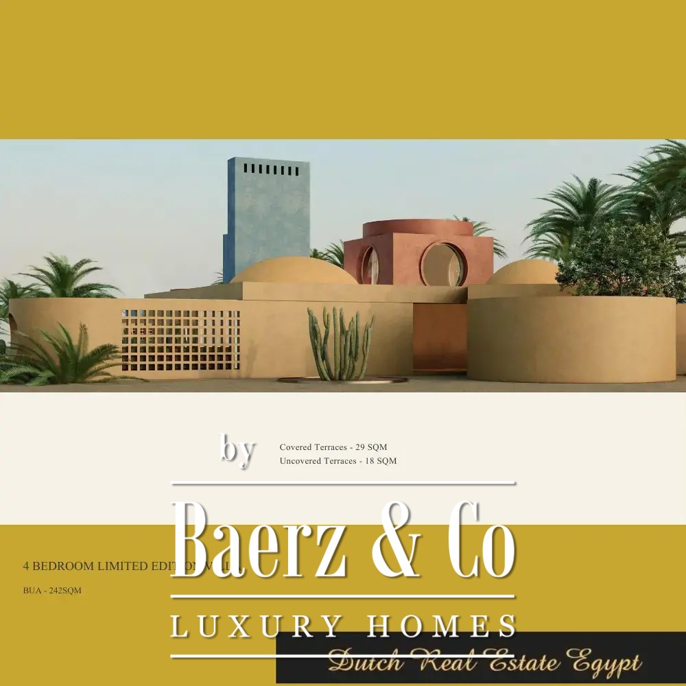 Villa El Gouna is een verfijnde uitdrukking van eigentijds wonen in Egypte, ontworpen voor wie privacy en architectonische harmonie waardeert. Deze villa biedt 242 m² aan hoogwaardige leefruimte, ingericht om optimaal te profiteren van het natuurlijke licht en rustiek binnencomfort. De woning beschikt over 4 slaapkamers en 5 badkamers, wat flexibiliteit en comfort biedt aan familie en gasten.