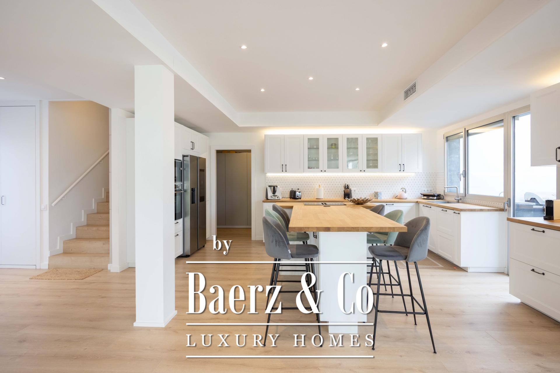 Luxe villa Esplugues de Llobregat vormt een harmonieuze samensmelting van hedendaagse architectuur en het rustige mediterrane leven. Deze in 2025 gerenoveerde residentie beschikt over 314 m², verdeeld over drie stijlvolle verdiepingen, met vier slaapkamers en vier badkamers. Op een perceel van 602 m² is licht hét centrale element; van vloer tot plafond reikende ramen vullen de leefruimtes de hele dag met warmte.