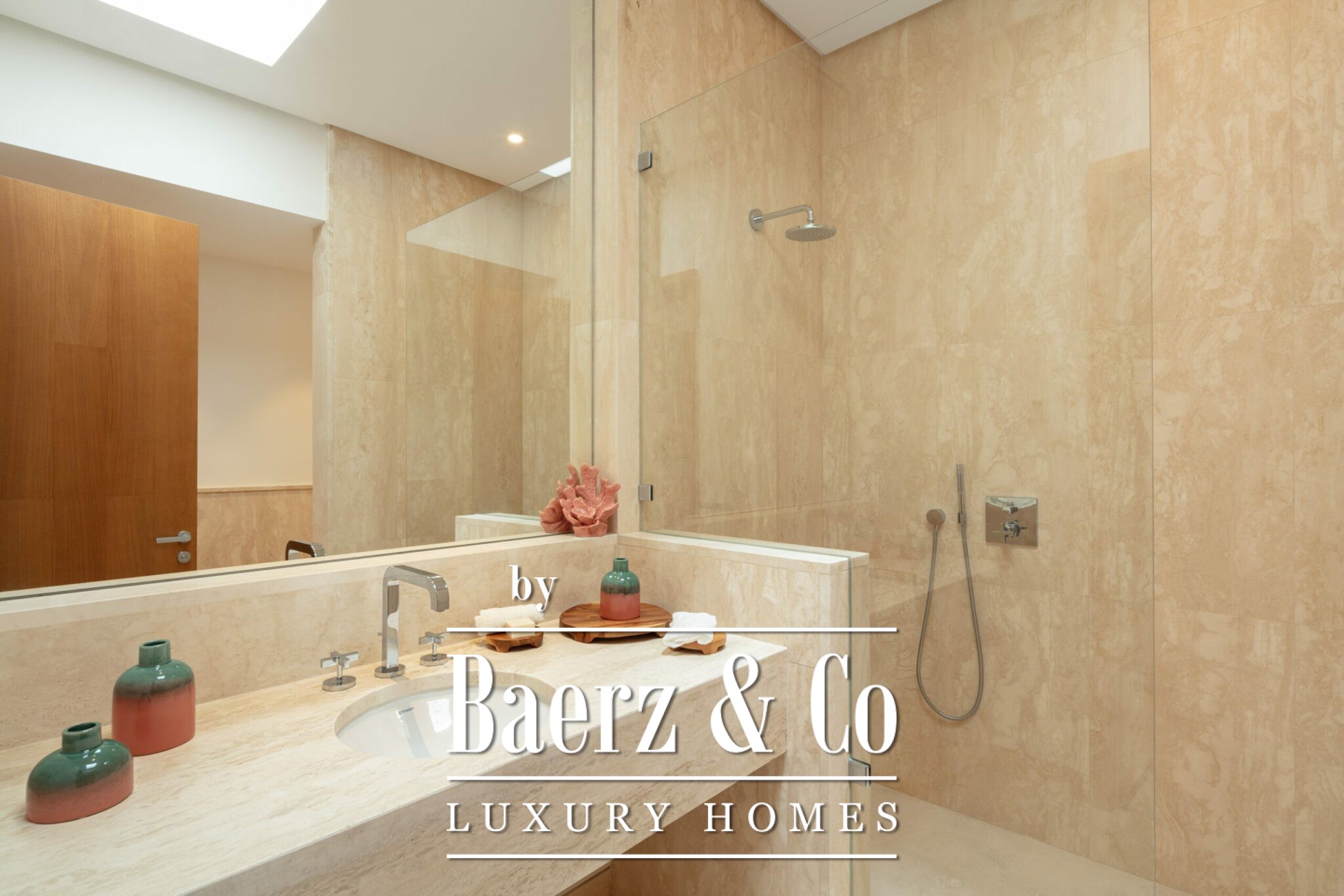 De slaapkamers zijn met zorg gesitueerd: twee op de begane grond met toegang tot de tuin en vier boven, verbonden via een galerij die baadt in daglicht. Elke slaapkamer beschikt over een eigen badkamer en toegang tot de bovenliggende tuin, terwijl de master suite een weids, ononderbroken uitzicht biedt.