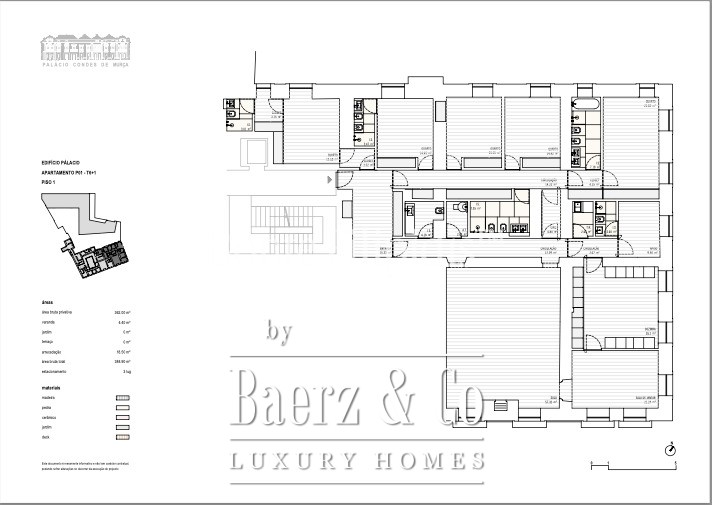 Elk detail is zorgvuldig samengesteld door architecten Aires Mateus en Frederico Valsassina. De royale ontvangstruimtes lopen over in rustige, privégelegen ruimtes, met de mogelijkheid om een thuiswerkkantoor of fitnessruimte in te richten. De leefruimtes zijn gescheiden van de slaapkamers, wat rust en discretie door het hele appartement garandeert. De ruime keuken is volledig uitgerust en voorzien van een wijnkelder, een gefilterd watersysteem en een aparte wasruimte. Comfort is tot in elk detail doorgevoerd, dankzij airconditioning, vloerverwarming, dubbele beglazing en een functionerende open haard.