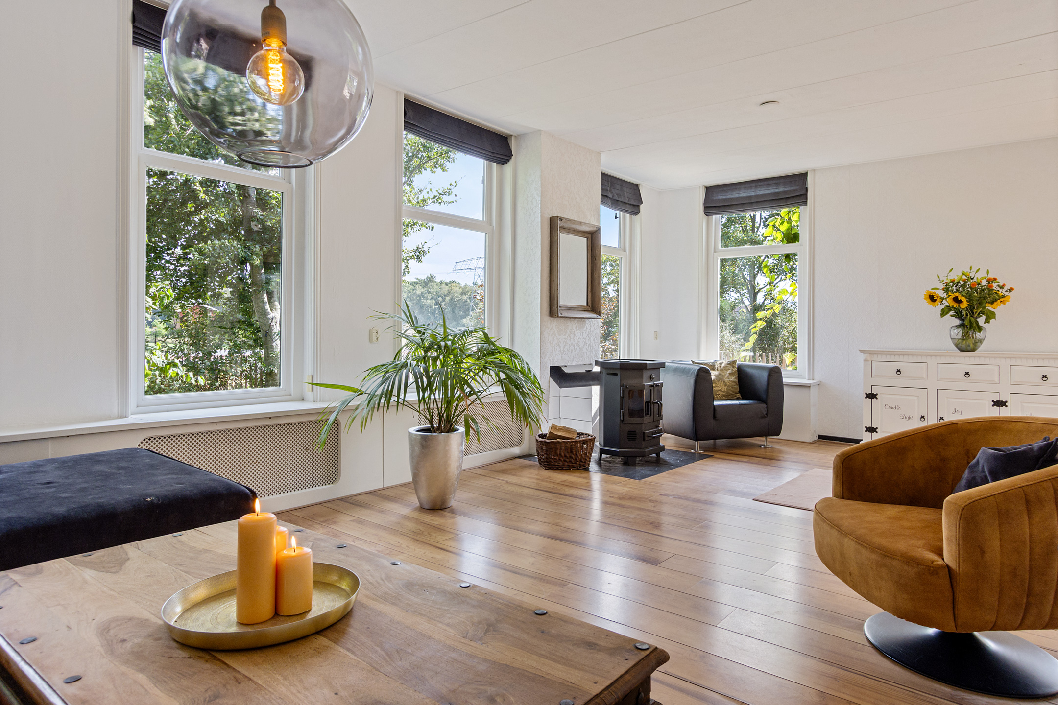 De sfeervolle veranda met buitenkachel heeft een zijentree naar de woning. De hal met garderobe ruimte, nieuwe meterkast en toilet biedt toegang naar de ruime lichte sfeervolle woonkamer. Deze lichte ruimte kijkt uit over de voortuin, is voorzien van vaste kasten en heeft een aangename houtkachel en glazen erker met uitkijk over de paddock paradise.