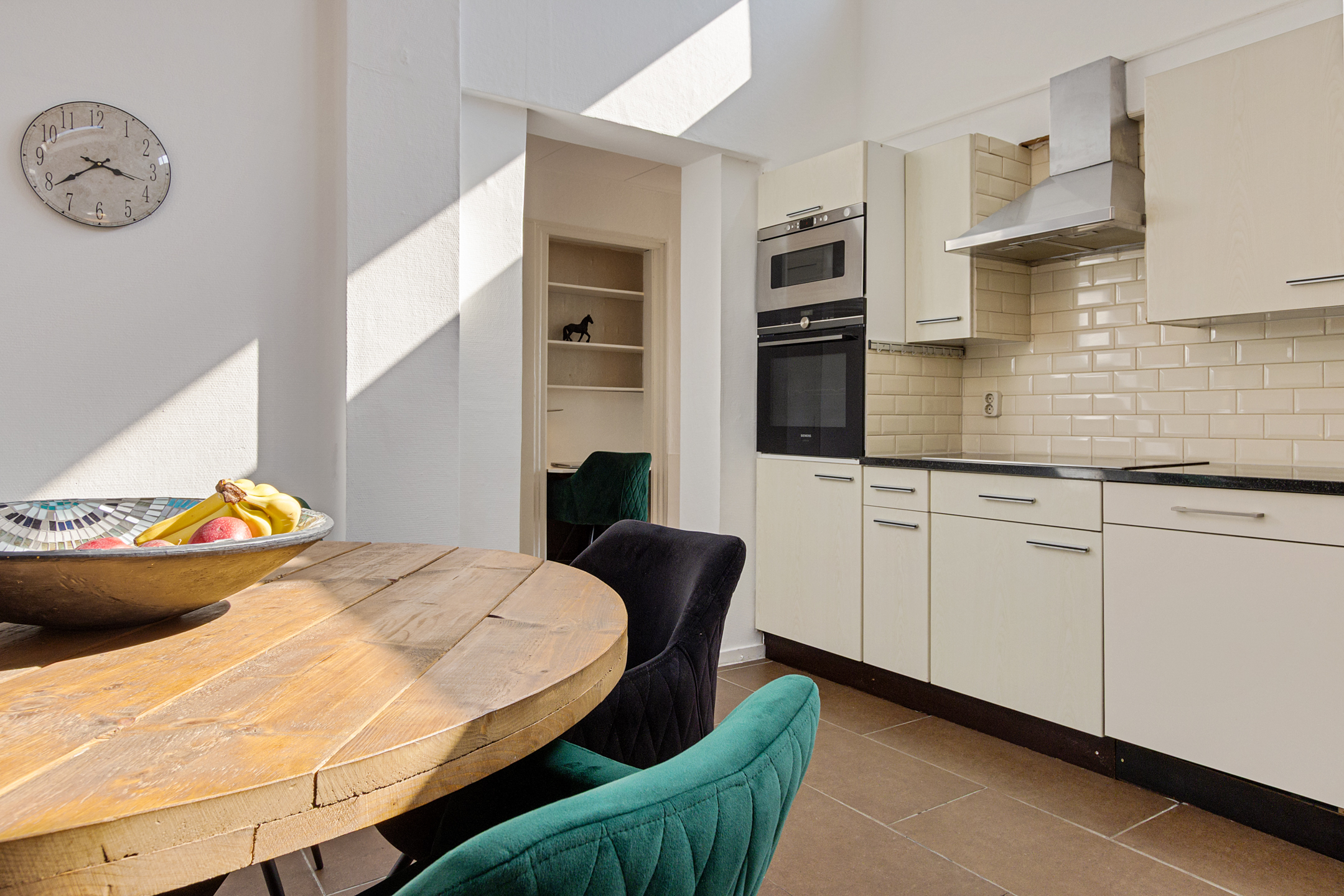 De gezellige woonkeuken is ingericht in lichte kleurstelling en heeft apparatuur uit 2024.