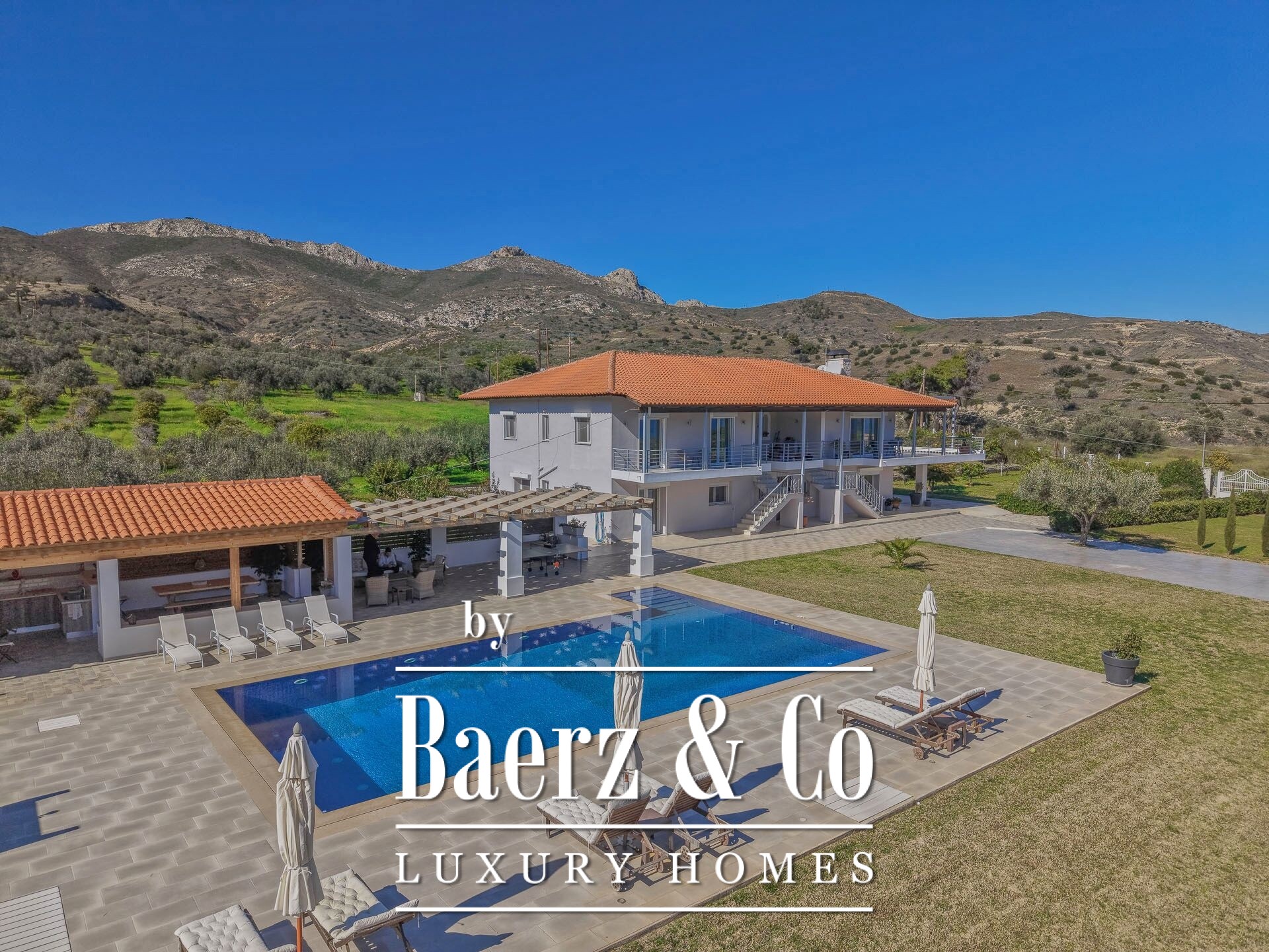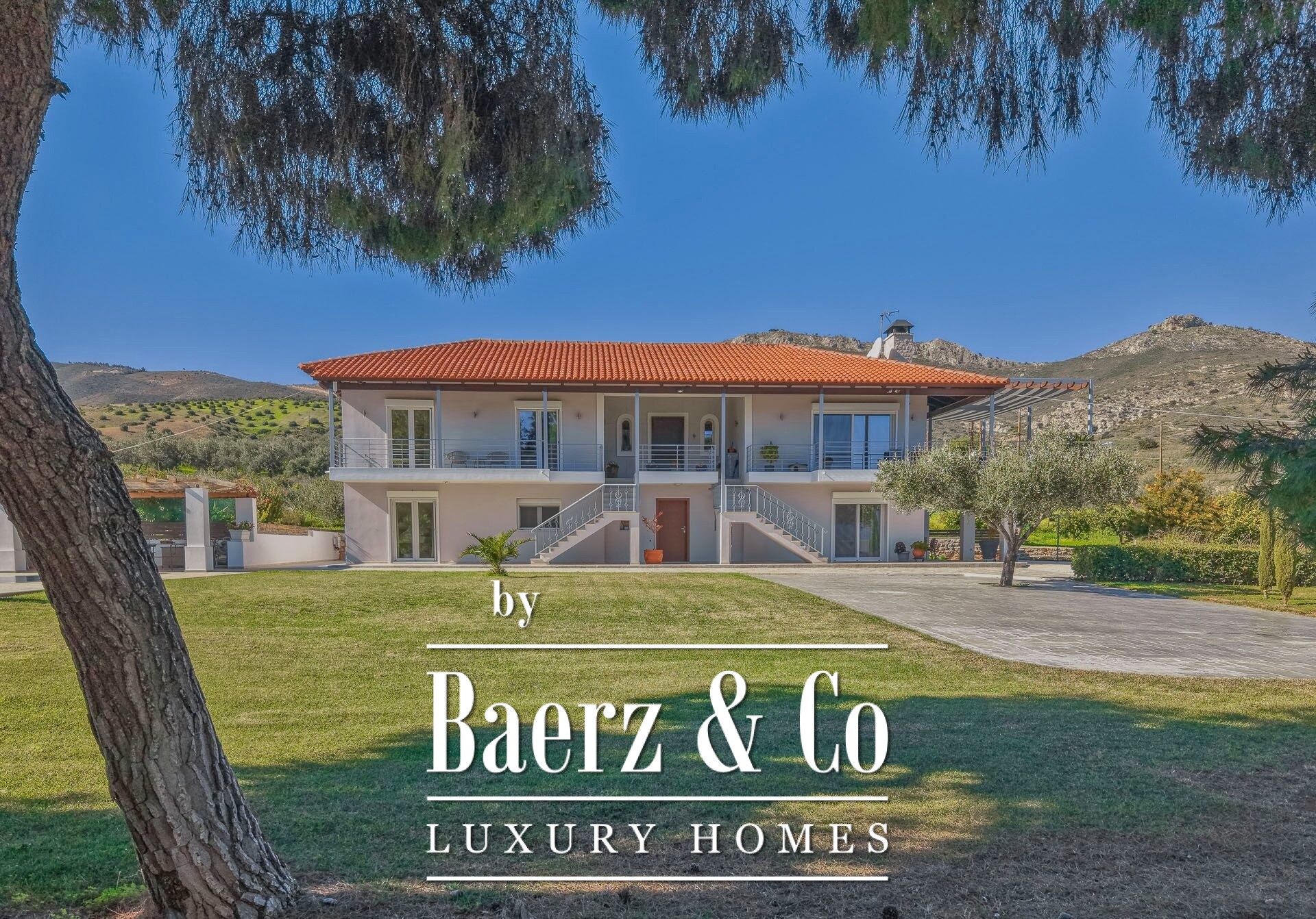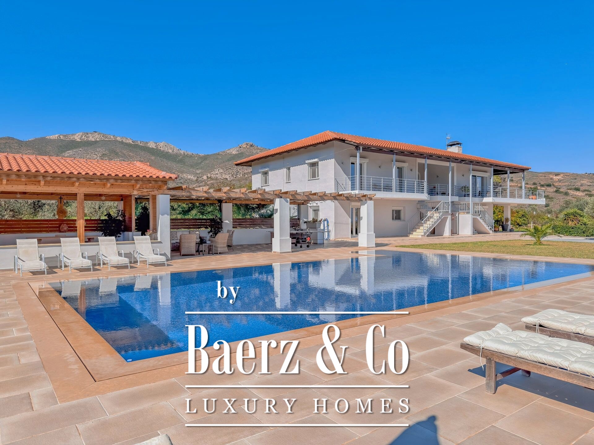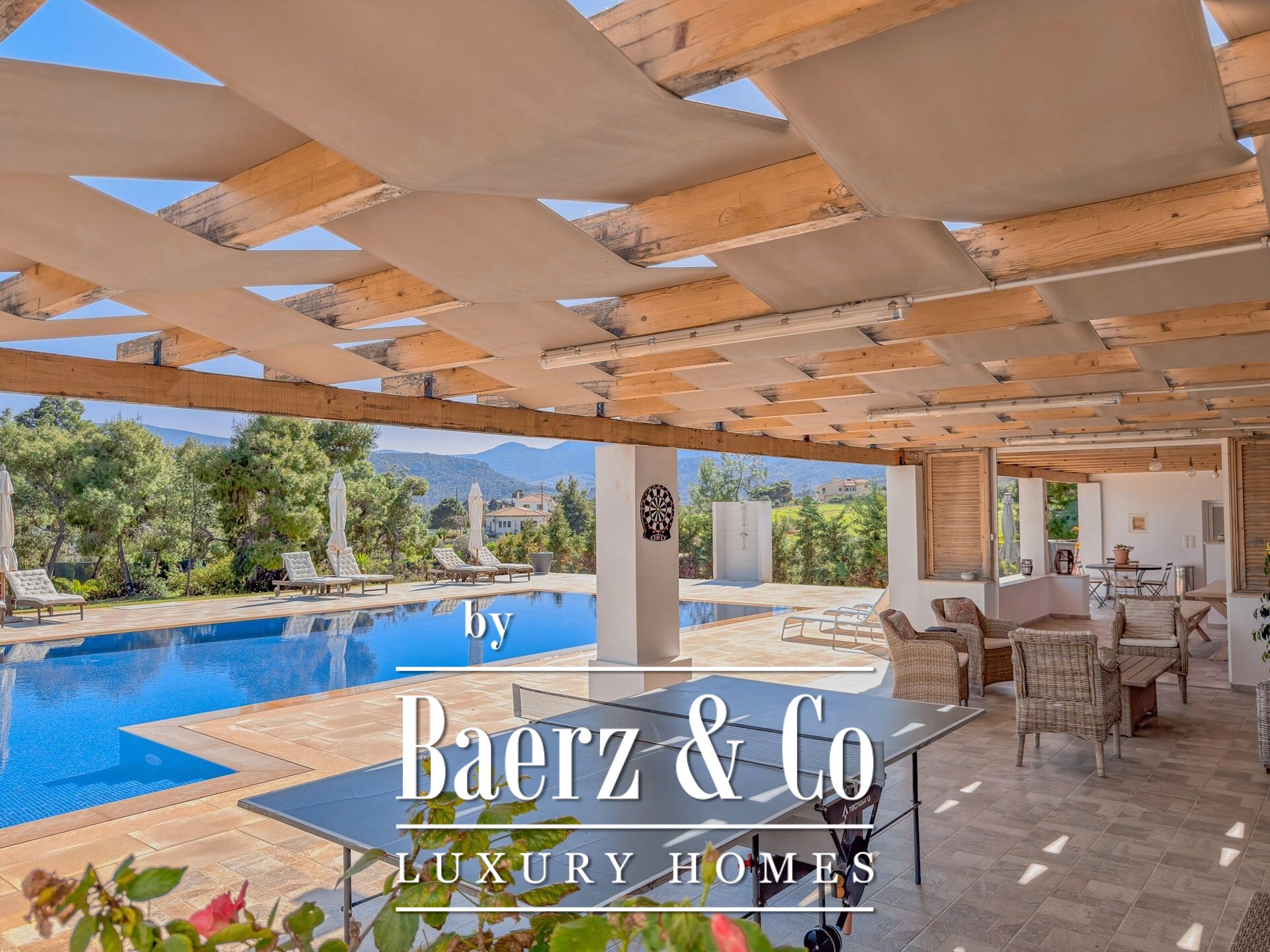 Villa Galataki staat symbool voor verfijnd hedendaags wonen; een volwassen constructie met een vernieuwde elegantie dankzij een volledige renovatie in 2022. Deze villa van 360 m², gesitueerd op een omheind perceel van 10.000 m², biedt volledige privacy en een onbelemmerd uitzicht op de Saronische Golf. De woning is verdeeld over twee zelfstandige, compleet uitgeruste woonlagen en biedt uitzonderlijke flexibiliteit voor meer-generatiewonen of professionele accommodatie.