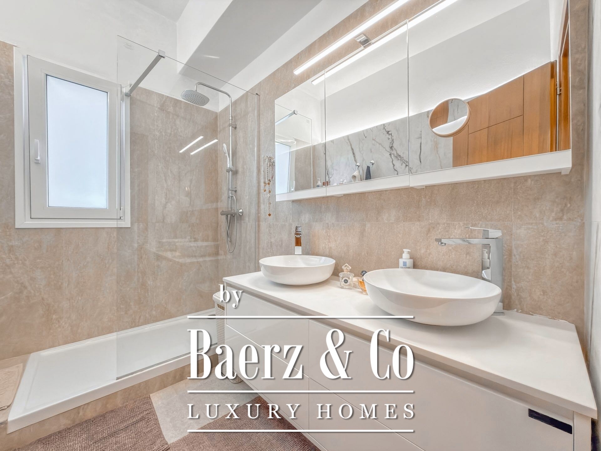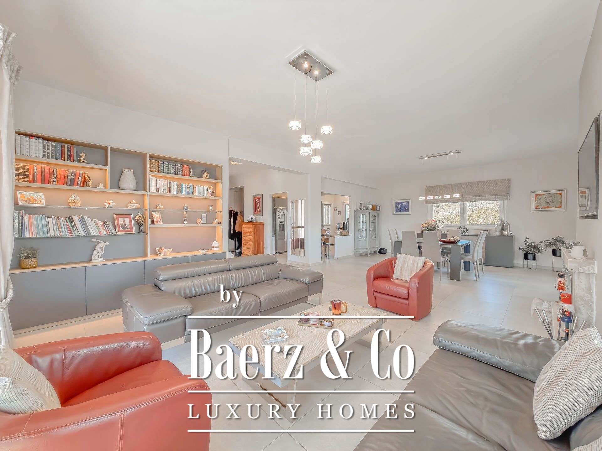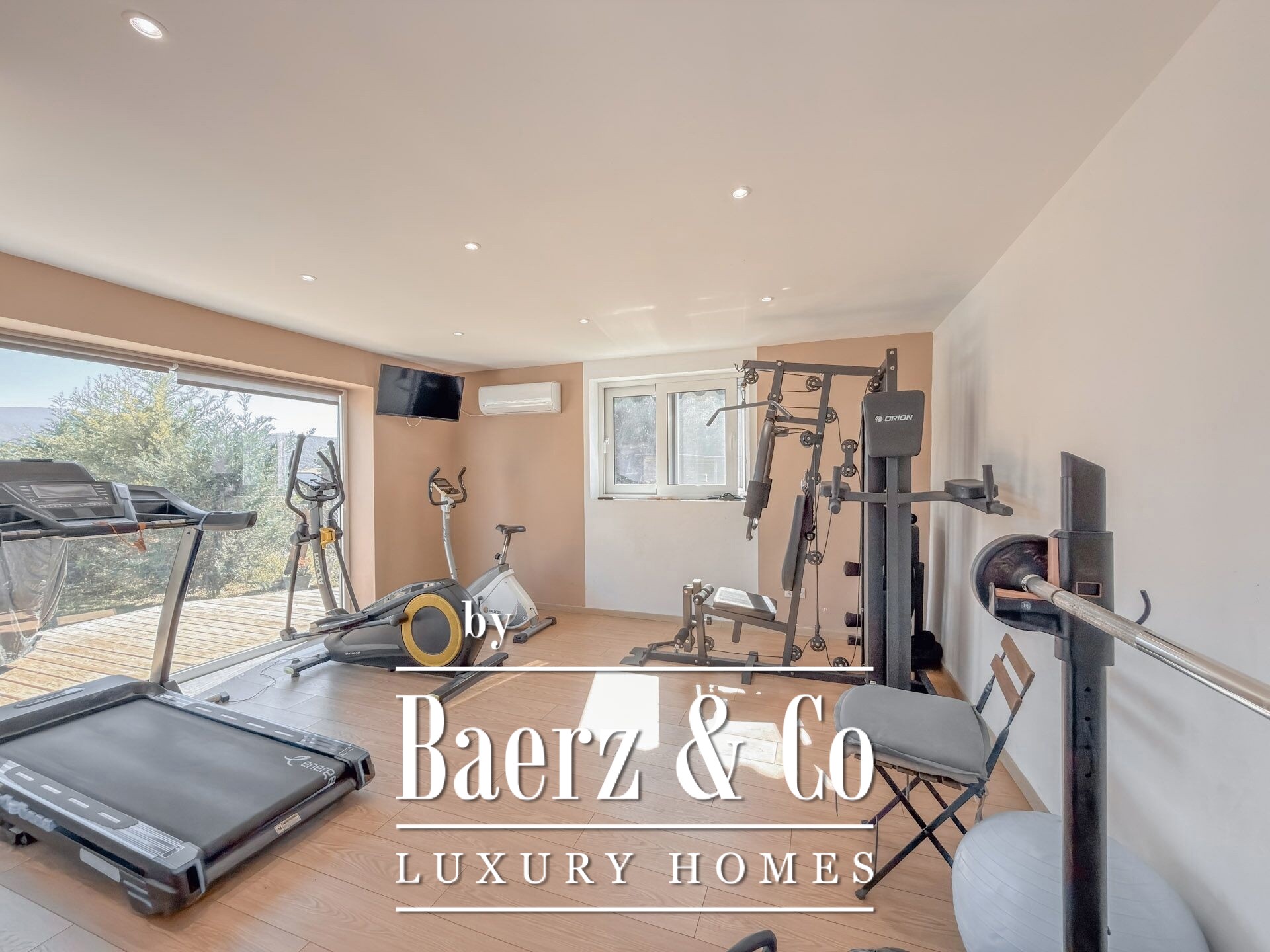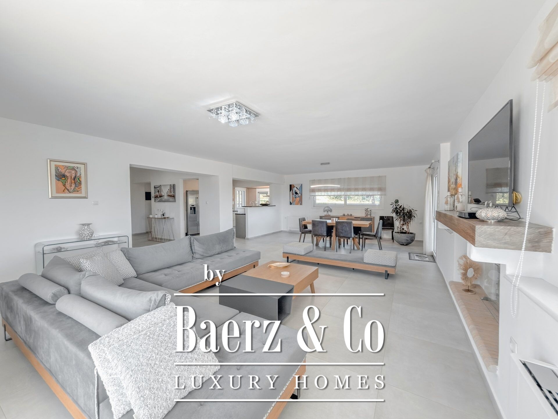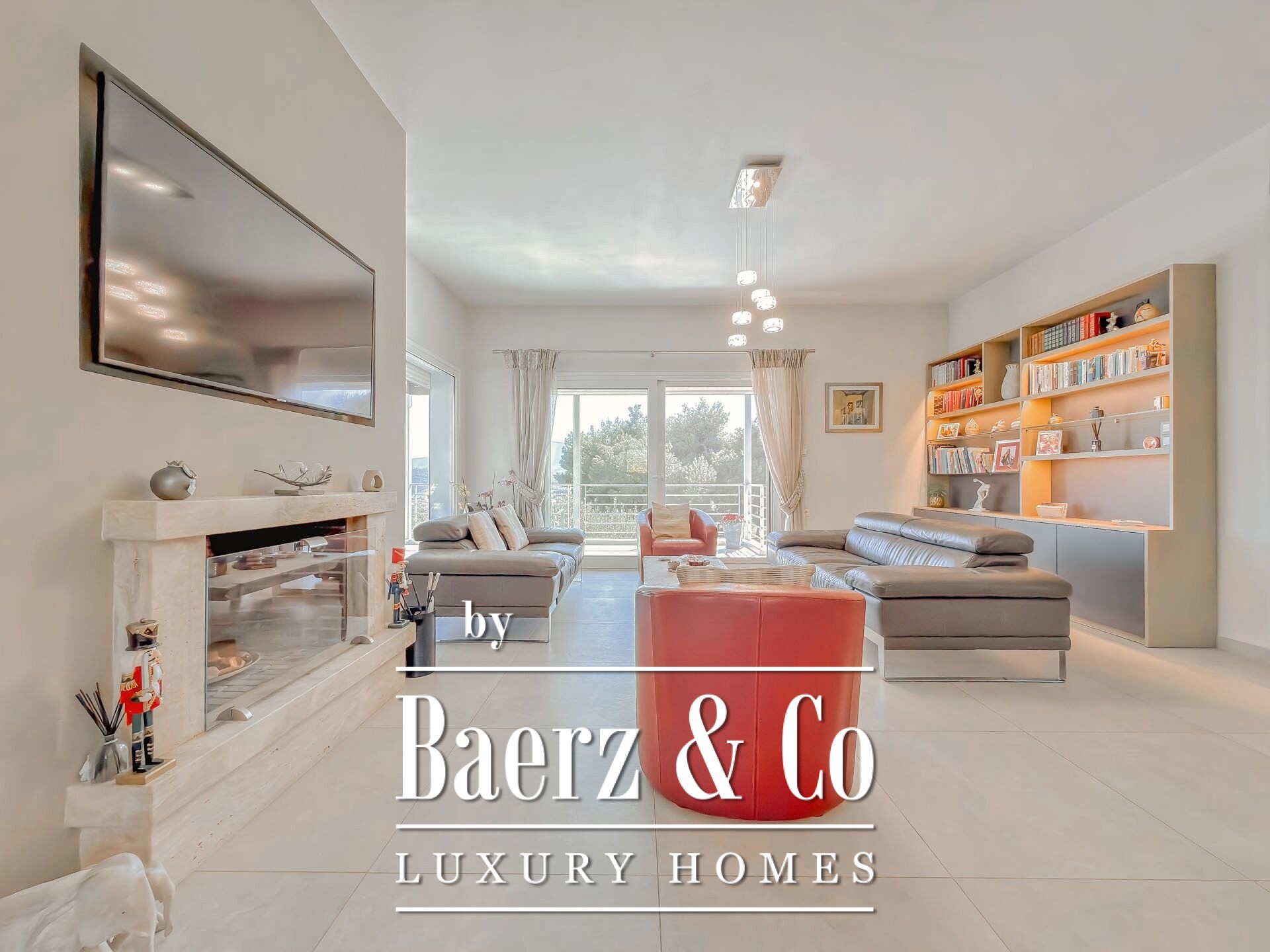 De villa beschikt over acht kamers, vijf badkamers en twee volledig ingerichte keukens, waarbij iedere verdieping wordt gekenmerkt door een eigen woonkamer met haard. Comfort en functionaliteit staan centraal: de begane grond is volledig gemeubileerd, de eerste verdieping deels gemeubileerd met royale balkons voor panoramisch zee- en bergzicht. Het buitenleven wordt verrijkt door een zwembad van 78 m², een overdekte barbecue en buitenkeuken, wellnessruimtes en ruime, beveiligde parkeergelegenheid.
