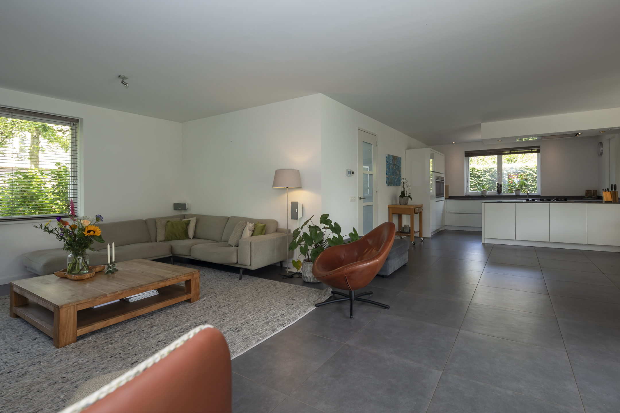 Wanneer u binnenkomt zult u blij verrast zijn van de ruimte die deze mooie woning te bieden heeft. Het is een prachtige, royale woonkamer met eetkamer en moderne woonleefkeuken die met elkaar in open verbinding staan.