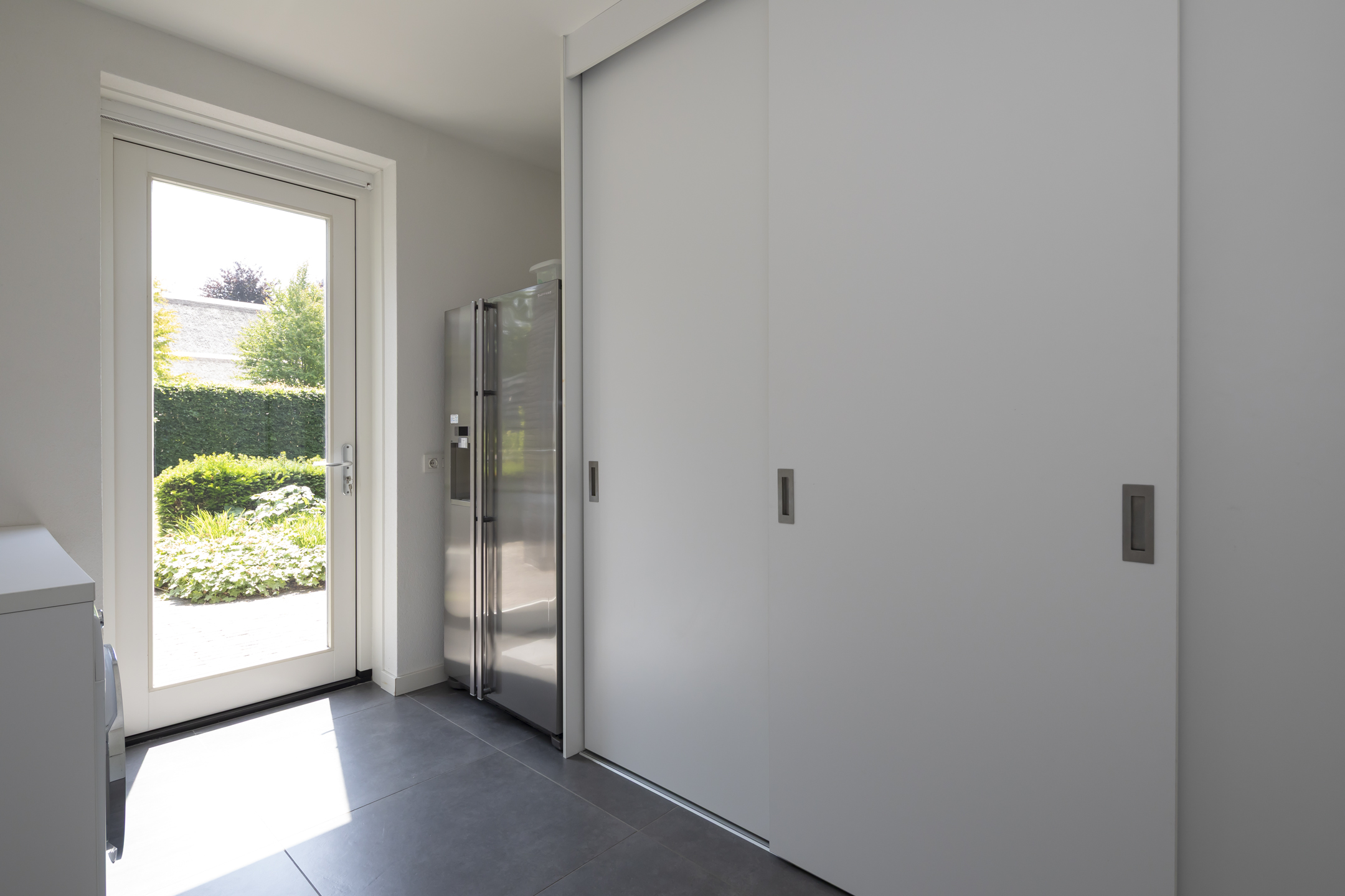 De bijkeuken is een praktische, fijne ruimte waar zich de aansluitingen van de wasapparatuur bevinden voor zowel de wasmachine, de wasdroger en een wateraansluiting voor bijvoorbeeld een Amerikaanse koelkast. Er staat een ruime inbouwkast voorzien van schuifdeuren. De bijkeuken is te bereiken via de keuken. Vanuit de bijkeuken is de garage bereikbaar en tevens de achtertuin.