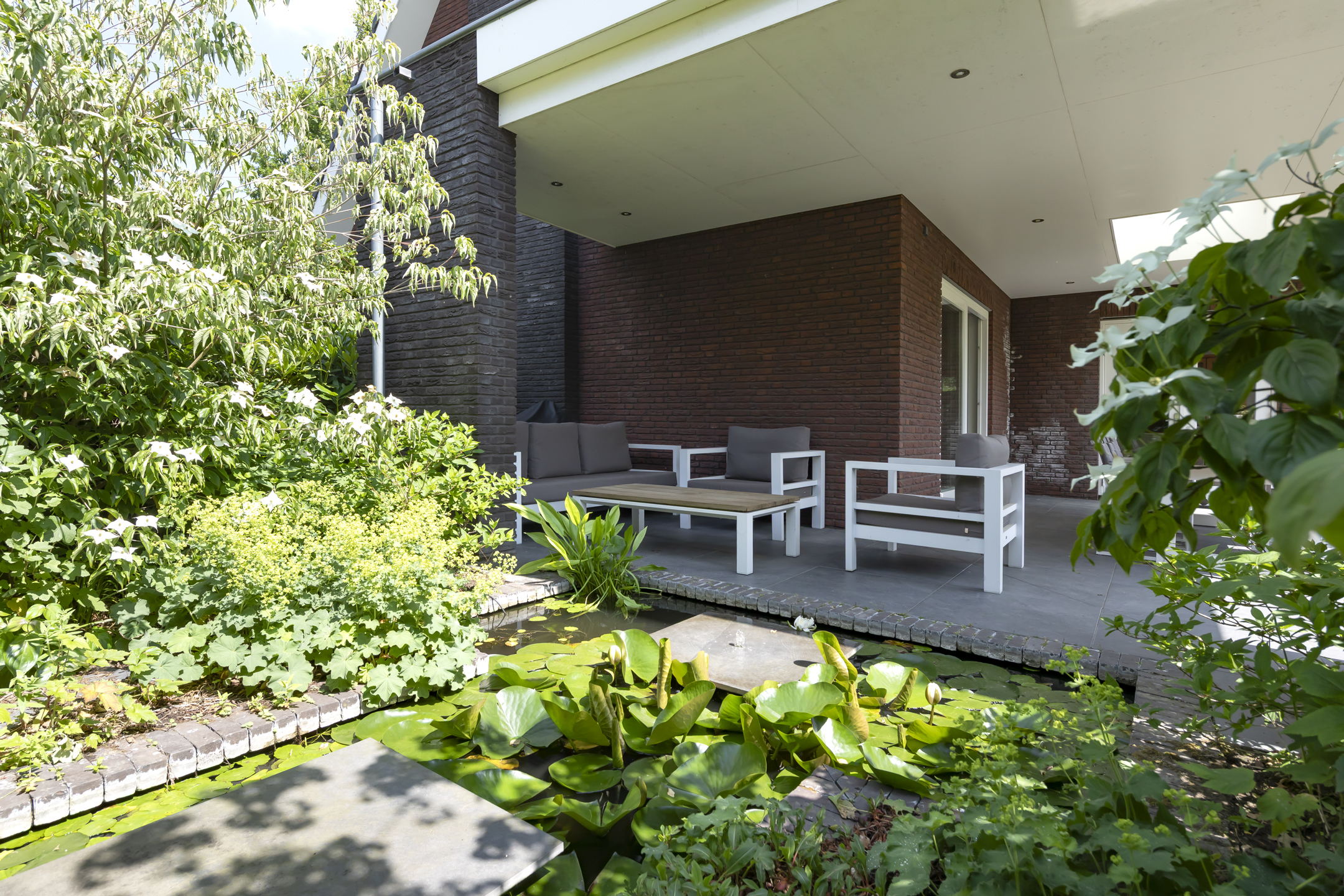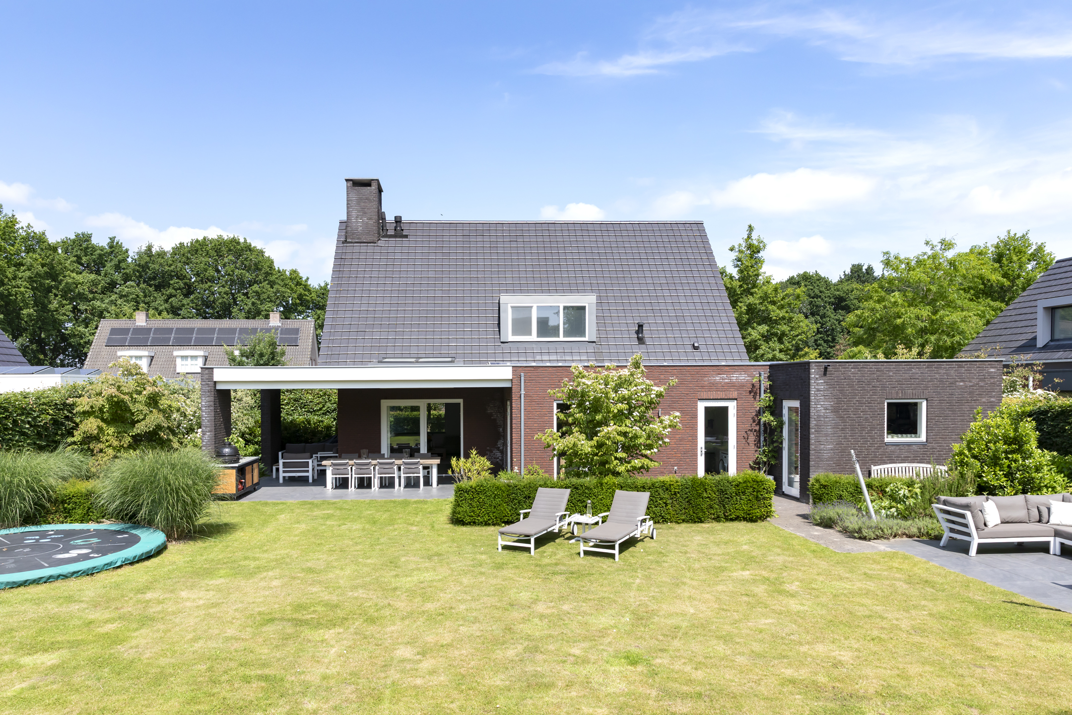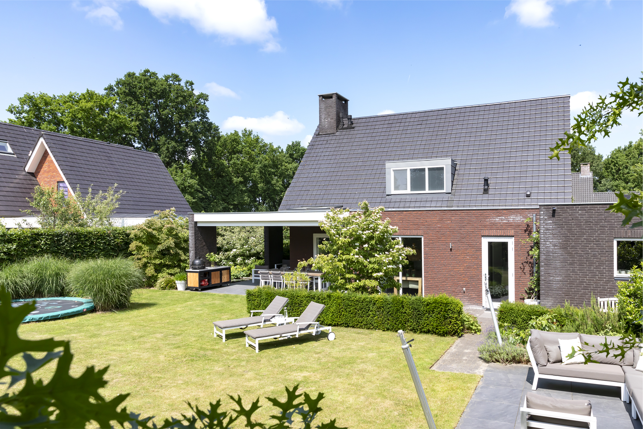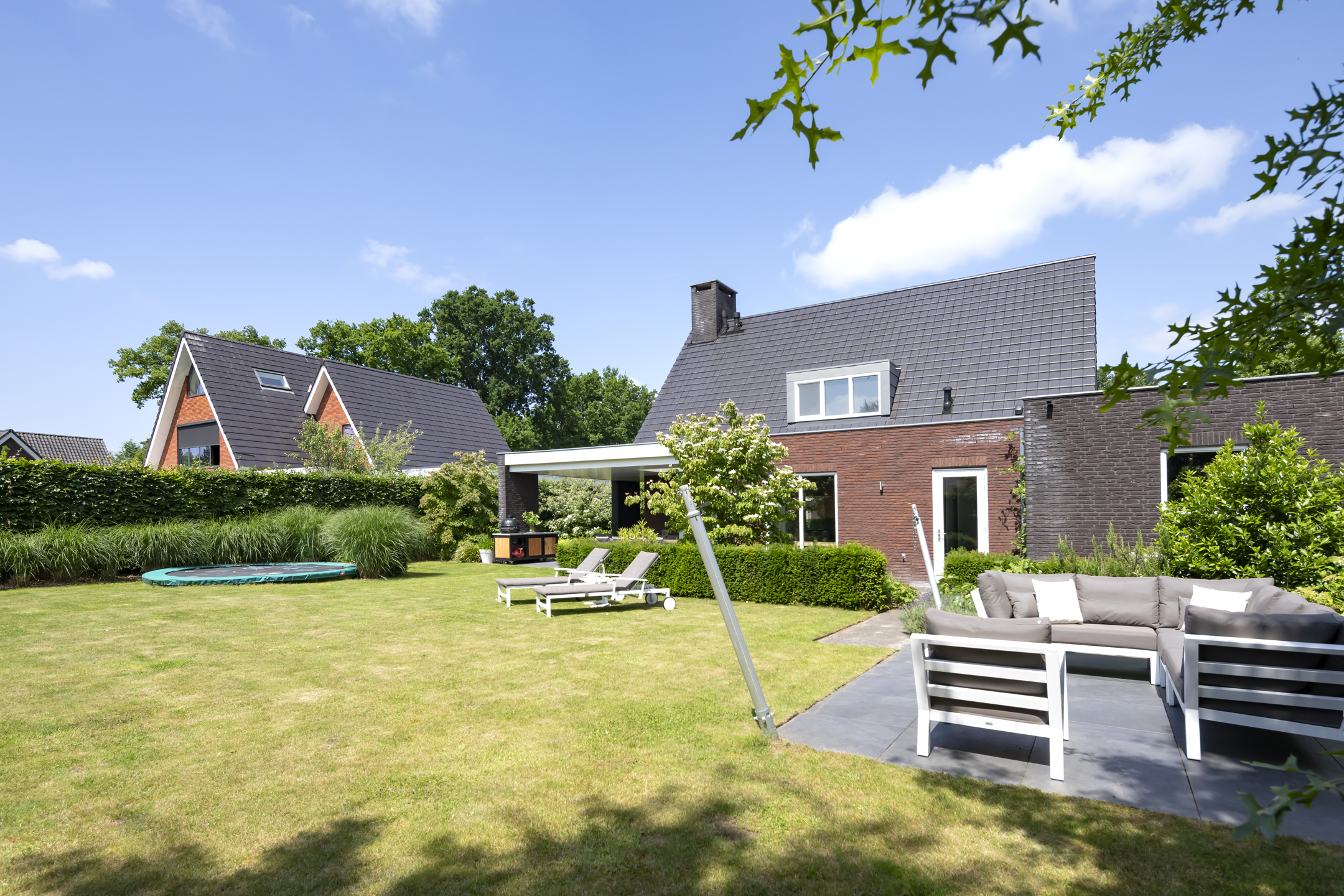 De tuin is fantastisch, u zit heerlijk vrij. De prachtige tuin is voorzien van groene hagen waardoor er weinig inkijk is. Een fijn speelgazon met een ruim zonneterras. Naast het zonneterras is er tevens een fraai, ruim overdekt terras dat grenst aan de achterzijde van de woning. De overkapping heeft een grote lichtkoepel waardoor de daglicht toetreding in de woonkamer optimaal behouden blijft. En dan is er nog de bijzondere sauna in de tuin, waar u heerlijk kunt ontspannen na een dag hard werken. De voortuin is eveneens netjes aangelegd en heeft een royale oprit met een capaciteit van 4 tot 6 auto’s.