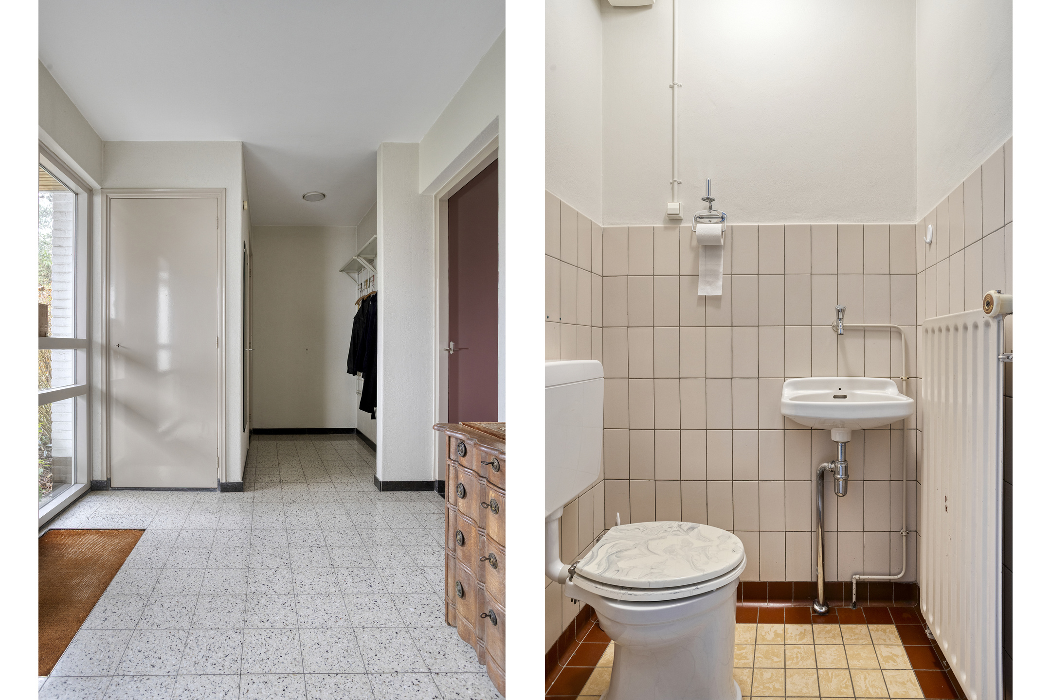 separaat betegeld toilet met stortbak.
