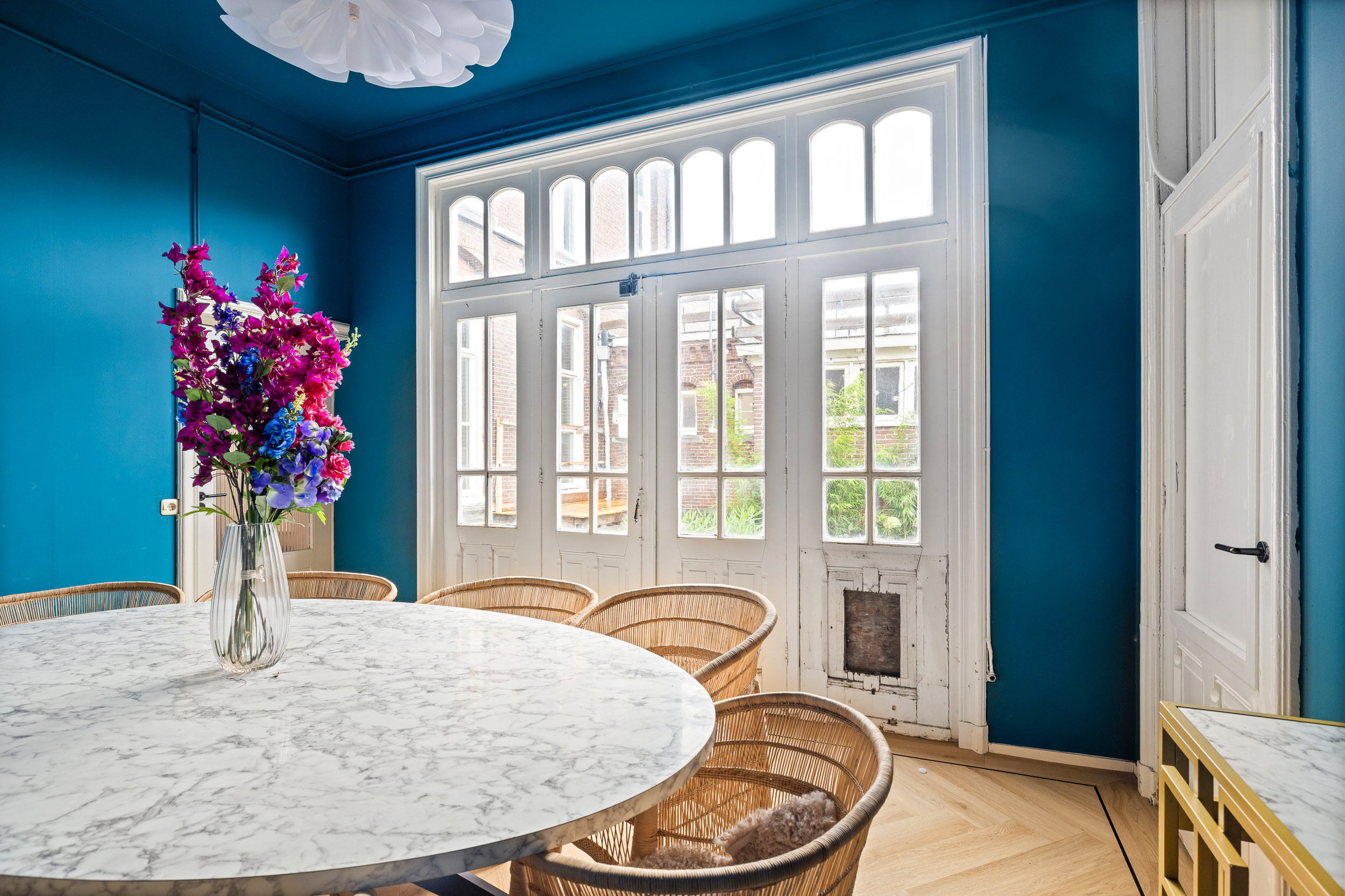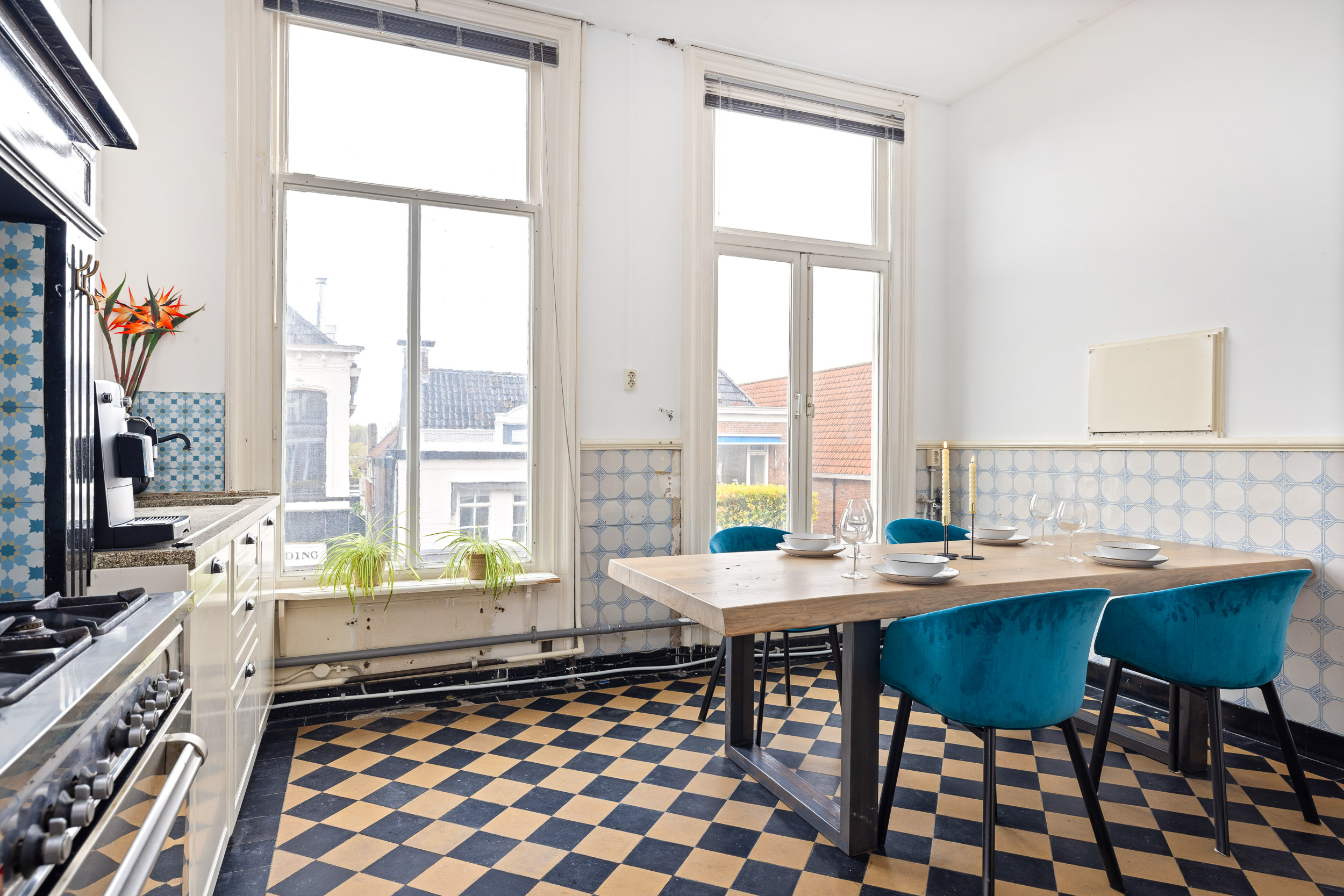 Een multifunctionele Friese stadsvilla met 470m2 woon-, werk- en bergruimte en omsloten tuin, centrumbestemming, 2 huisnummers, geschikt om te wonen en/of ondernemen. Uitstekende bereikbaarheid Randstad (1 uur) dankzij de snelle verbinding met de A6 en A7.