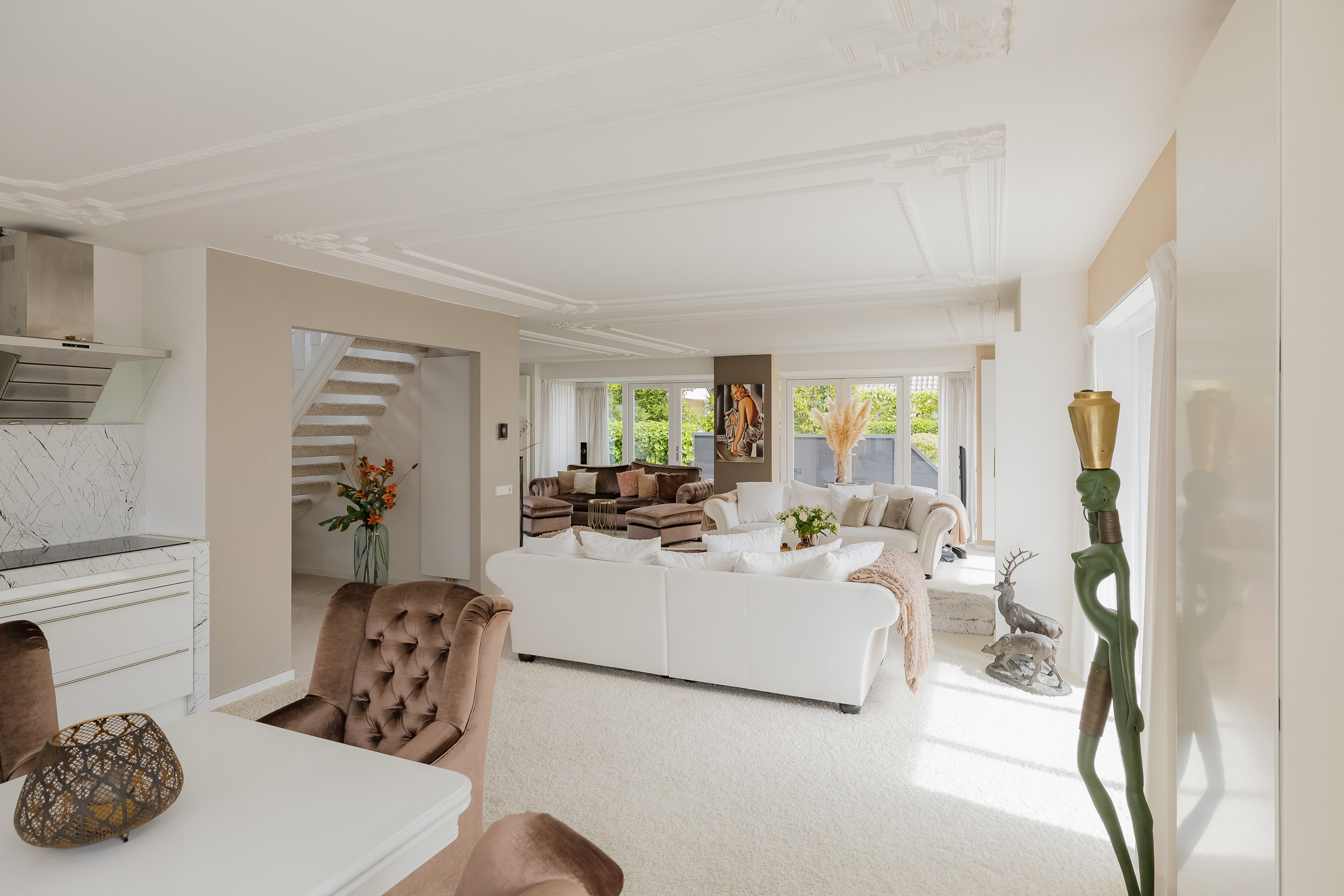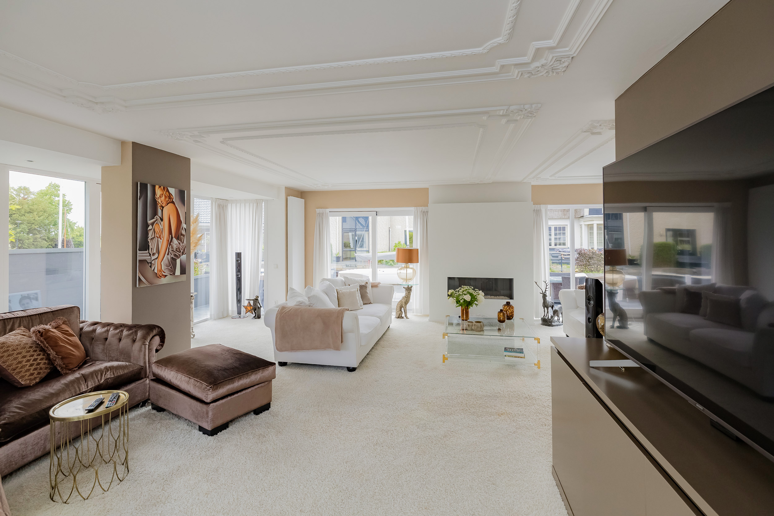 • Royale lichte woonkamer met gashaard
