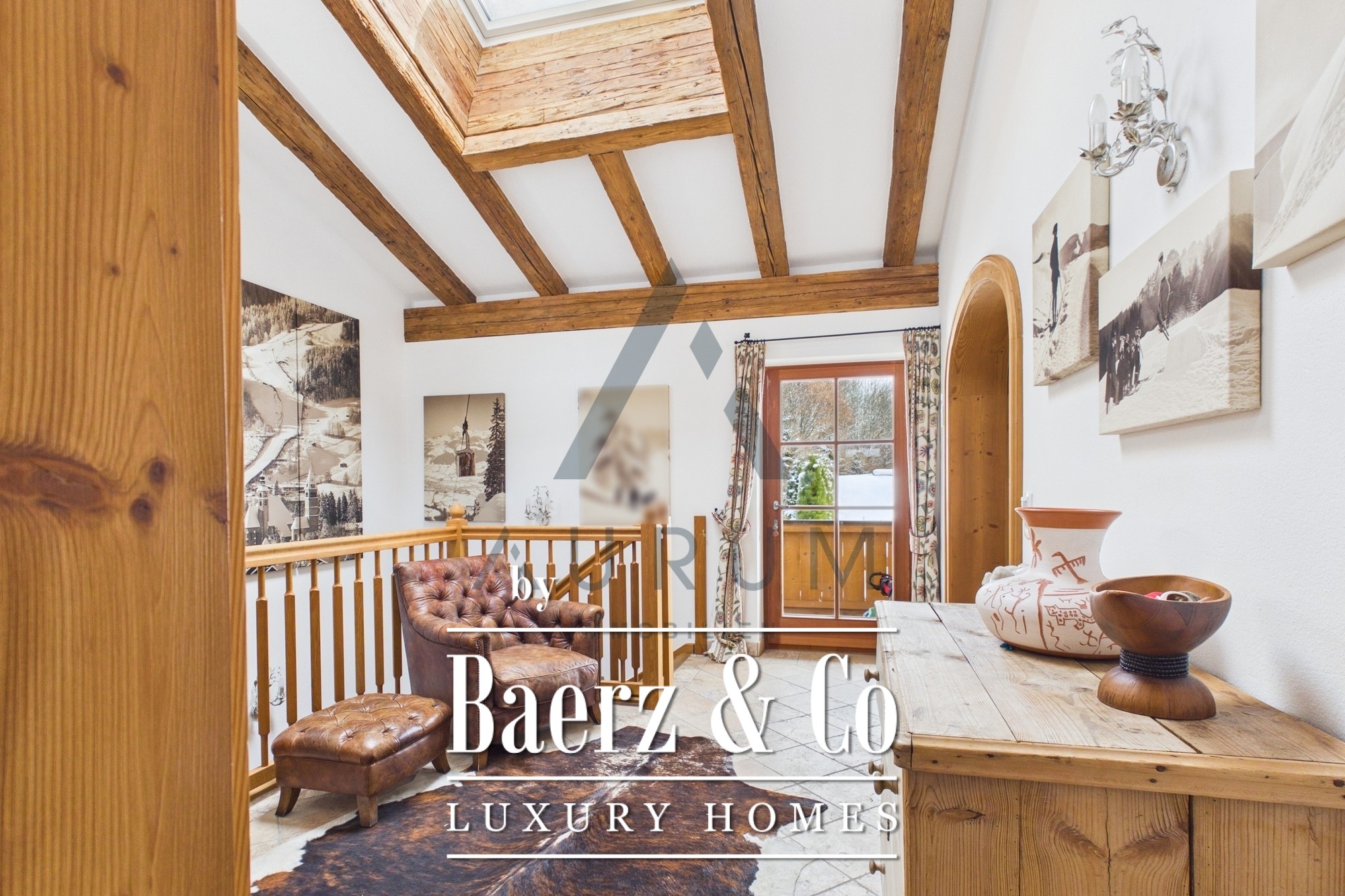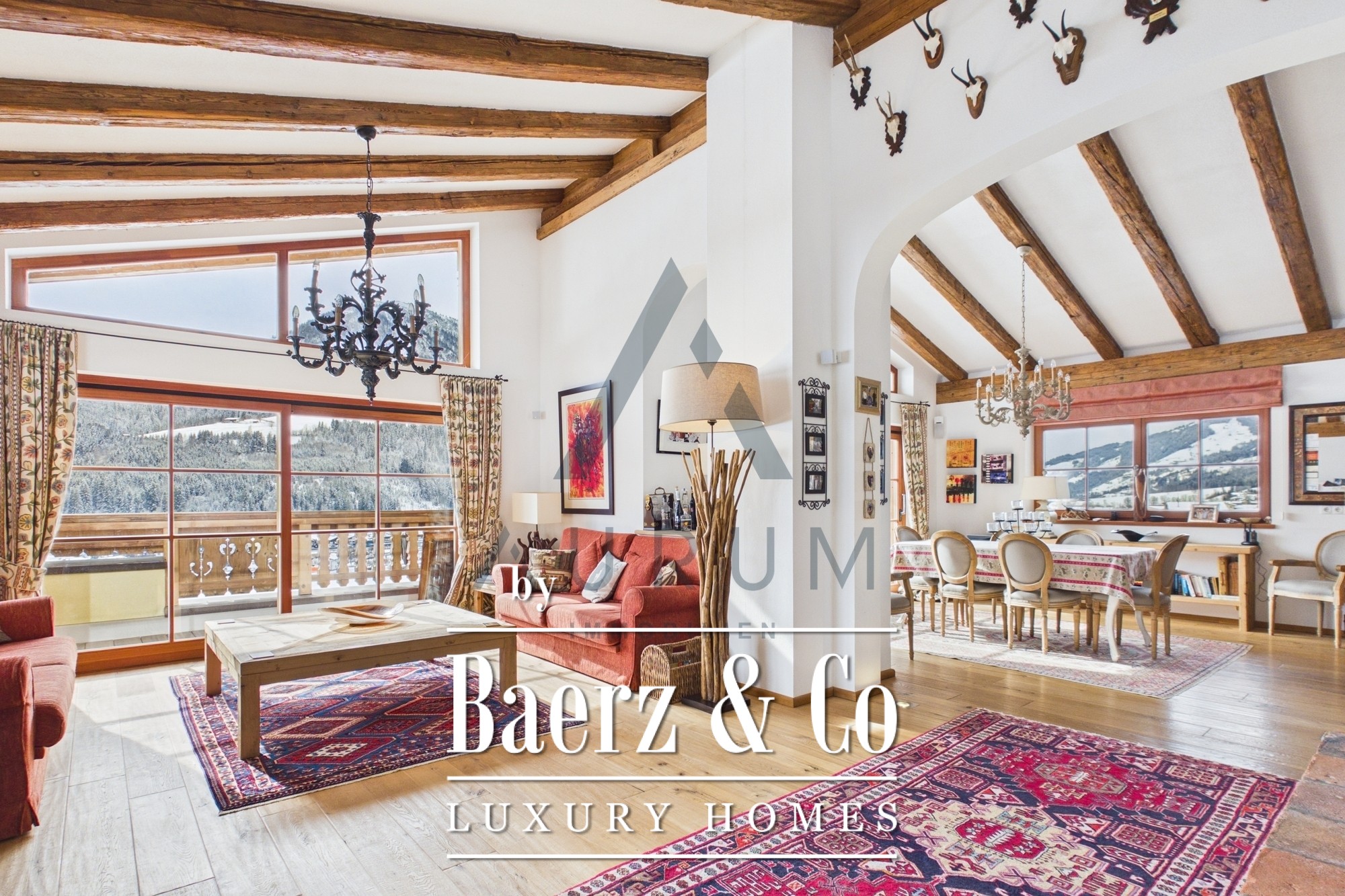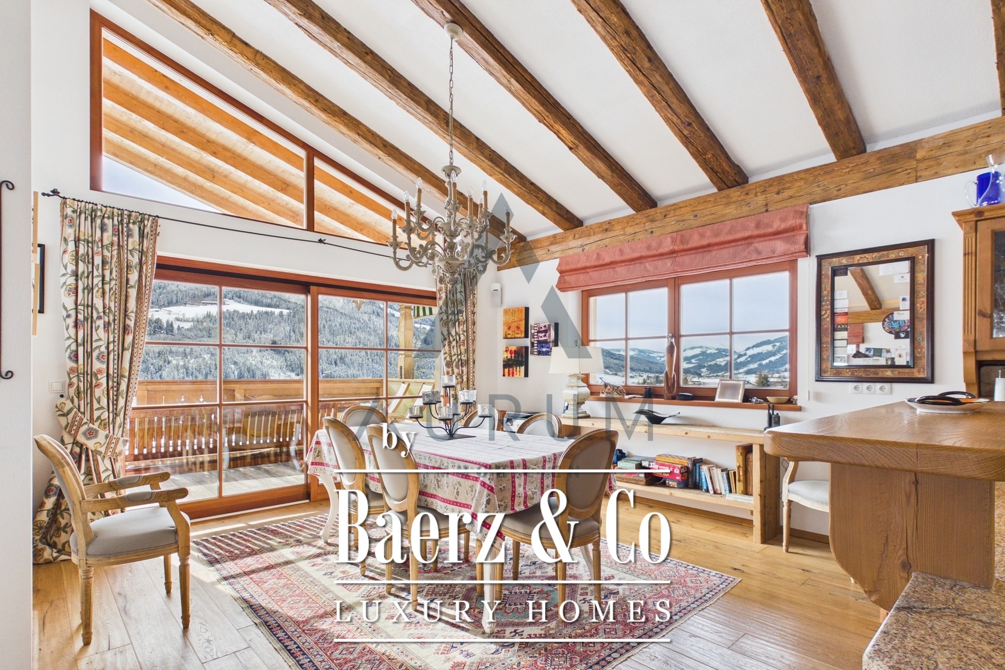 Penthouse maisonette in Kirchberg in Tirol is een zeldzaam alpine woonhuis, met 197 m² zorgvuldig ingedeelde leefruimte verdeeld over drie verdiepingen, discreet gelegen op een zonrijke plek net boven het dorpscentrum. Deze penthouse maisonette verwelkomt u met een traditioneel geïnspireerd, lichtovergoten bovenverdieping. De woon- en eetkamer, geaccentueerd door antieke houten balken en een open haard, loopt over in een landelijke keuken en een balkon dat een panoramisch uitzicht biedt op de Großer Rettenstein en het Brixental. Vloer-tot-plafond ramen laten het alpenlicht centraal staan, terwijl vloerverwarming en massief houten vloeren zorgen voor een sfeer van duurzame warmte.