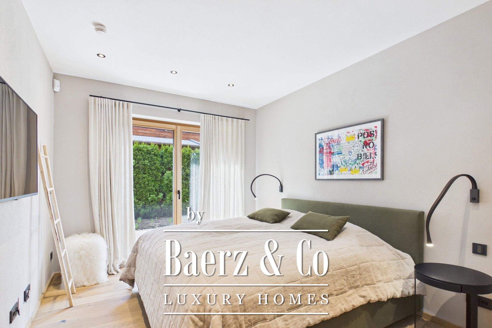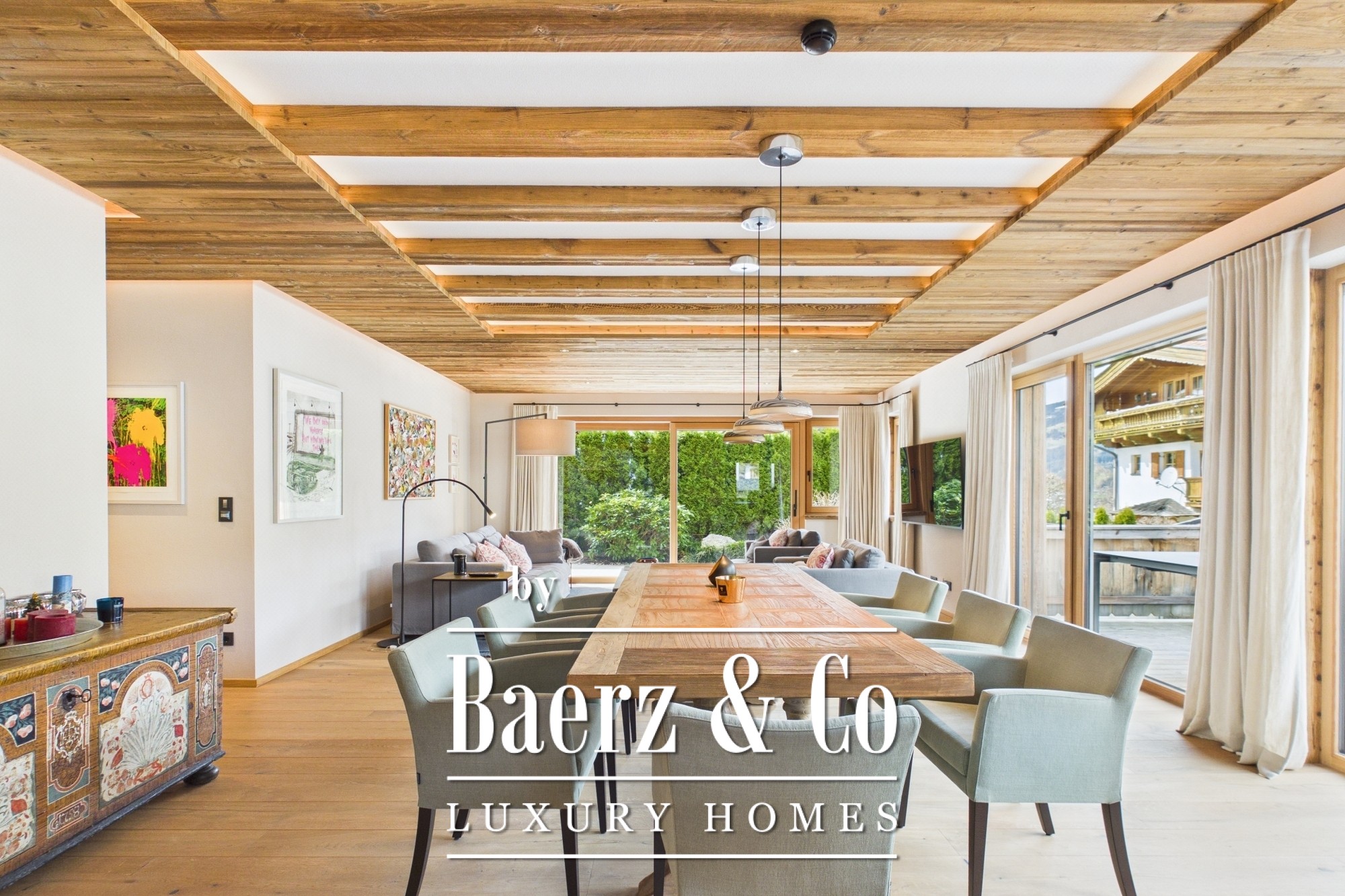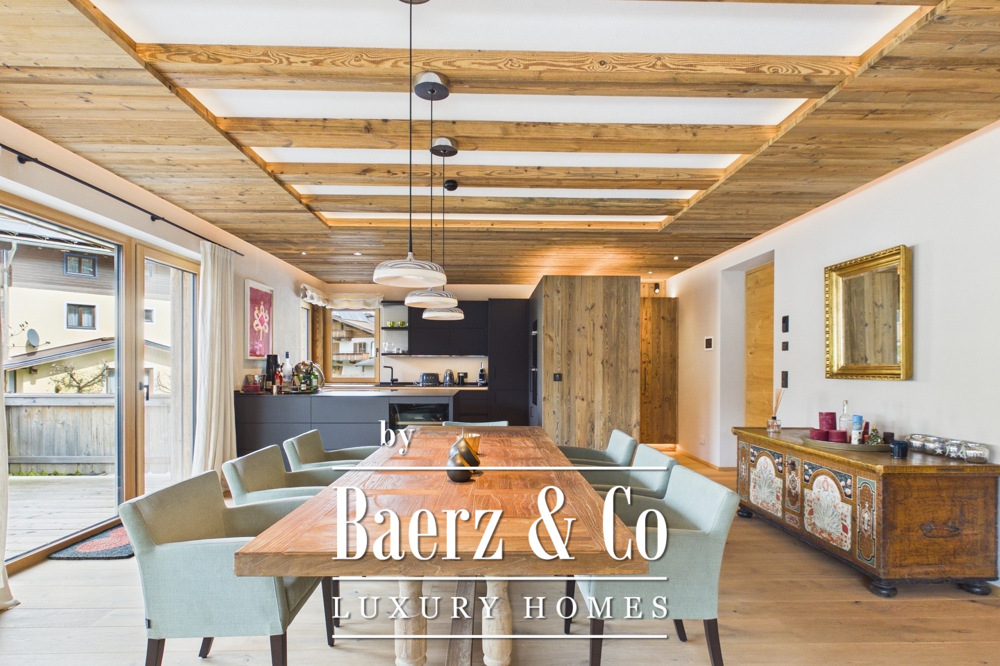 Apartment Kirchberg in Tirol biedt een verfijnde woonbeleving aan het einde van een rustige doodlopende straat, iets hoger gelegen met directe nabijheid van de skipistes en het dorpscentrum. Deze woning beschikt over een royale woonoppervlakte van 135 m², met drie kamers elk voorzien van een en-suite badkamer, waarvan twee ingericht als slaapkamer en een grote wellnessruimte compleet met sauna. De open leef-, eet- en keukenruimte vormt het sociale hart van het appartement en kenmerkt zich door plafonds van gerecycled hout en een op maat gemaakte keuken uitgerust met Miele-apparatuur.