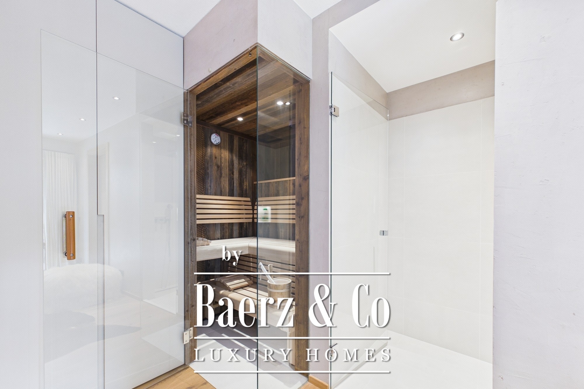 Ruim opgezette buitenruimtes maken integraal deel uit van het ontwerp, met circa 95 m² aan terrassen, balkons en aangelegde zones die uitnodigen tot rust en reflectie. De leefomgeving wordt verhoogd door doordachte voorzieningen zoals een open haard, vloerverwarming, smart home-systeem, elektrische zonwering en een geïntegreerd alarmsysteem. Bovendien beschikt het appartement over een overdekte parkeerplaats met oplaadmogelijkheid voor elektrische voertuigen, een buitenparkeerplaats en een berging van 8,5 m² die is ingericht voor wintersportrusting en wasfaciliteiten.