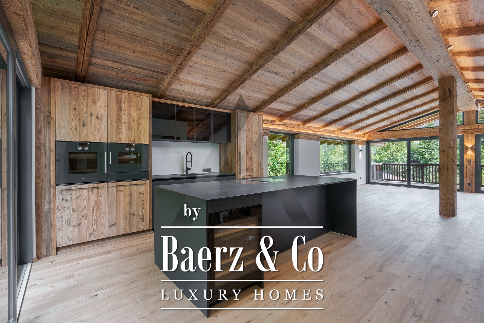 Chalet Kitzbühel met panoramisch bergzicht biedt een moderne interpretatie van het klassieke alpiene ontwerp, gelegen tegen het indrukwekkende decor van de Kitzbüheler Alpen. Deze woning creëert een persoonlijk toevluchtsoord met veel privacy, verdeeld over circa 230 m² woonoppervlak en aangevuld met een royaal terras van 135 m² en een onderhoudsvriendelijke tuin. De woning beschikt over drie slaapkamers, drie badkamers en een gastentoilet; elk vertrek wordt gekenmerkt door traditionele materialen zoals oud hout, natuursteen en massief houten deuren.