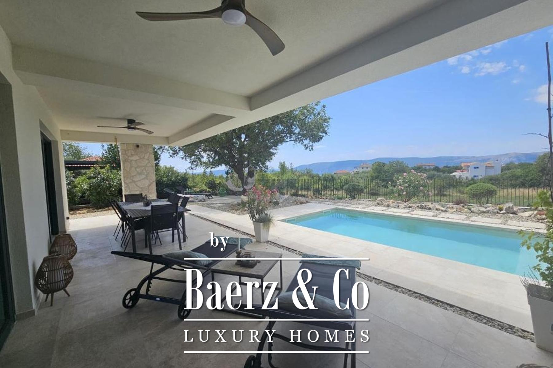 Luxe villa Krk bevindt zich in het rustige dorp Linardići en biedt 200 m² eigentijds, licht overgoten wooncomfort op een perceel van 444 m². Deze nieuw gebouwde woning met twee verdiepingen is georiënteerd op het zuiden en westen, waardoor het natuurlijke licht rijkelijk binnenvalt en binnen- en buitenleven moeiteloos in elkaar overgaan. Vier royale slaapkamers en vier smaakvol afgewerkte badkamers staan garant voor comfort en privacy, waarbij elk vertrek wordt gekenmerkt door doordacht ontwerp en hoogwaardige materialen.