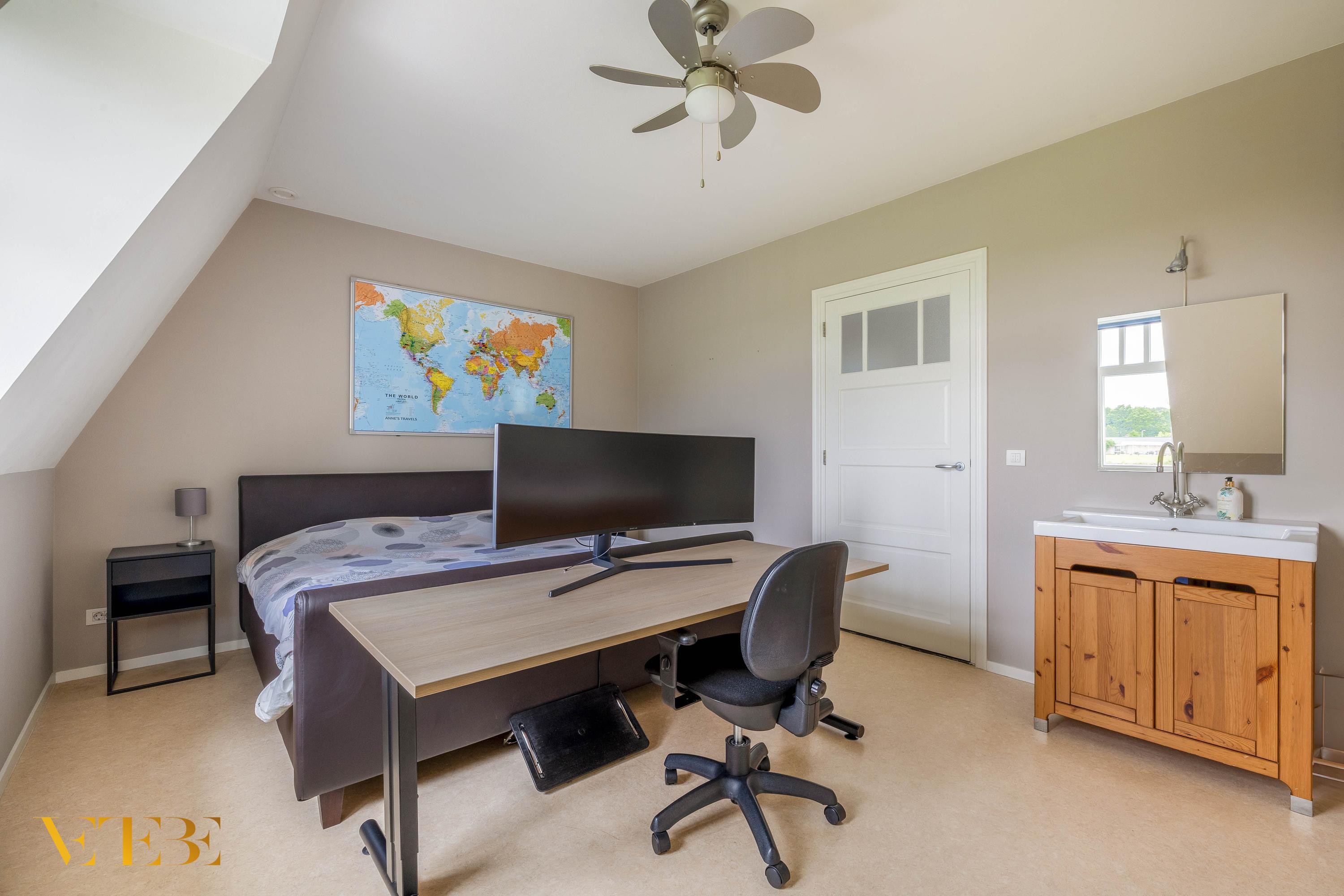 Verder vind je in de woning een en-suite woonkamer, een open keuken, drie slaapkamers, een royale badkamer, een ruime inpandige garage en een kantoor en aparte wasruimte op de begane grond. De woning is volledig voorzien van domotica en elektrische screens, uitgerust met 24 zonnepanelen en airco in de woonkamer, het kantoor en een van de slaapkamers. Op de begane grond (m.u.v. de garage) en de badkamer ligt vloerverwarming.